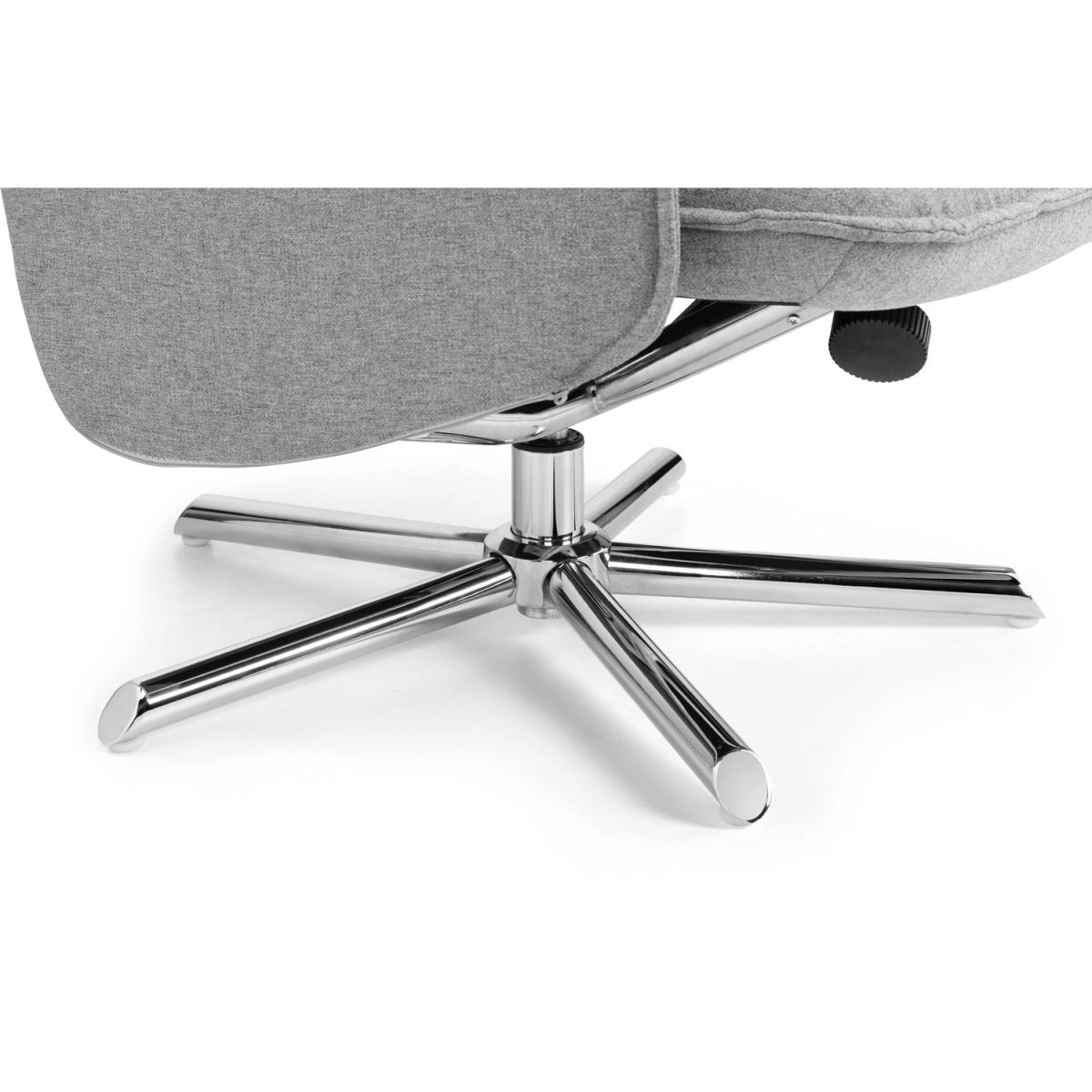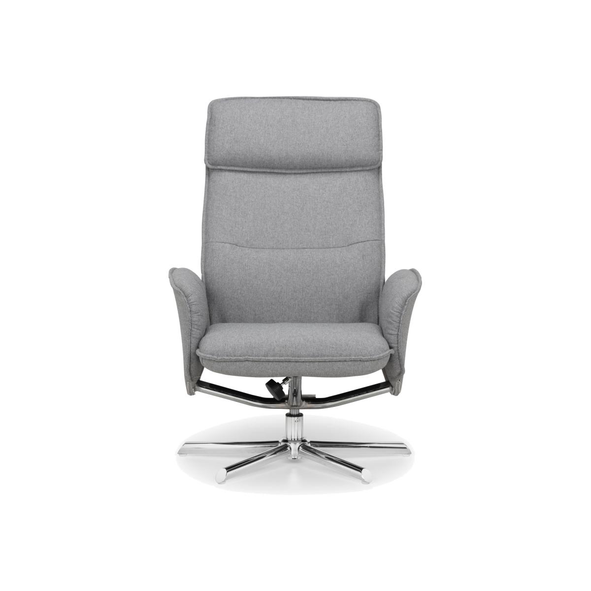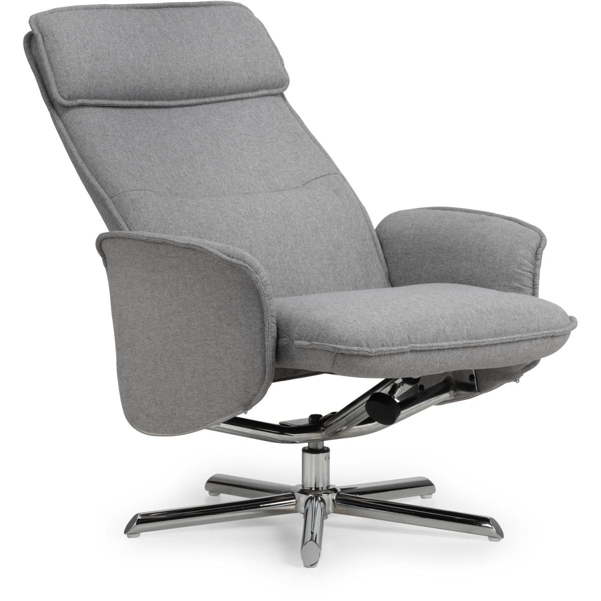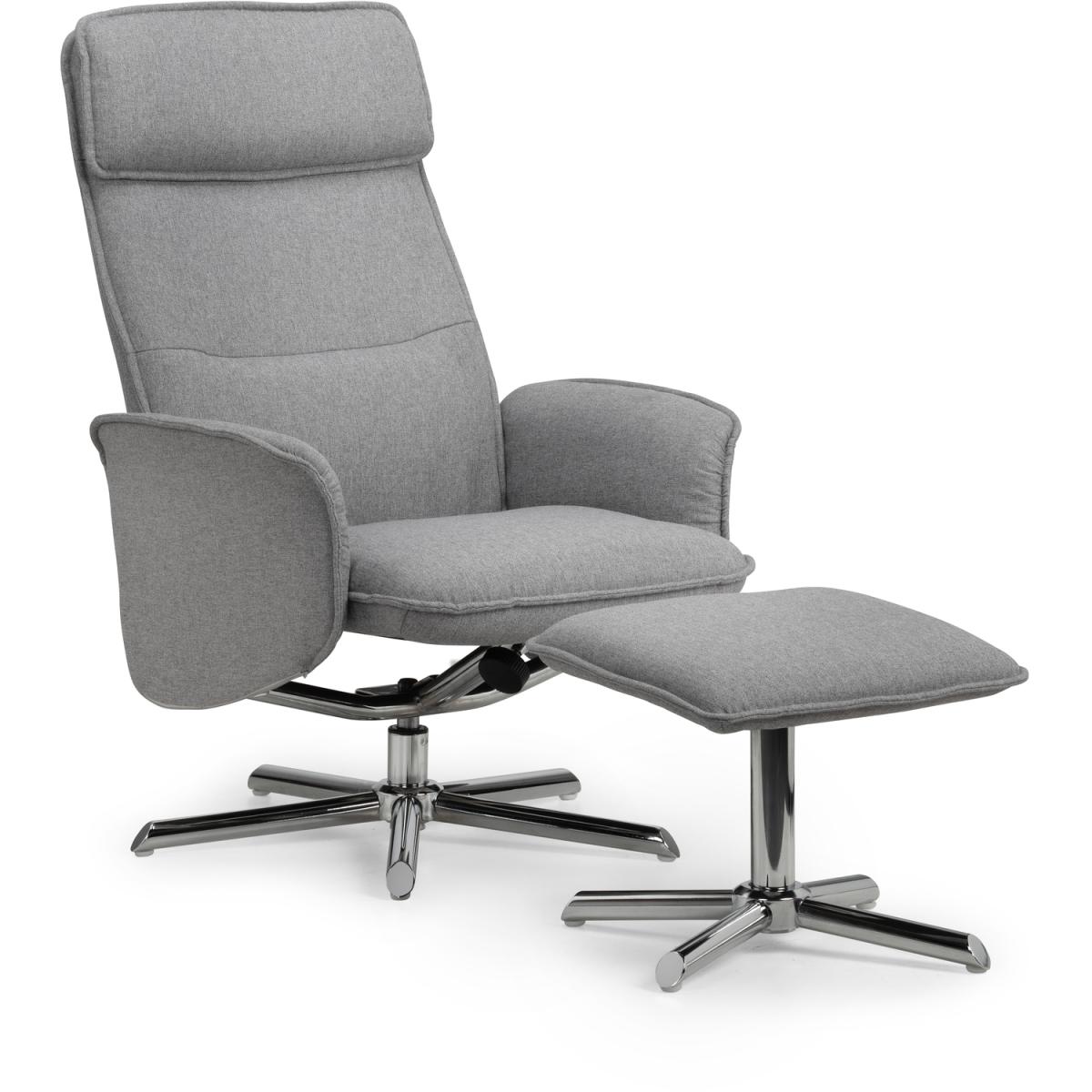 The Aria Recliner is beautifully upholstered in grey linen fabric with a stunning chrome base. Featuring a padded headrest and footstool to provide utmost comfort, this modern chair is suitable for a wide range of decor. Not only does this chair recline, but it also swivels allowing you to reach your preferred position at ease.
