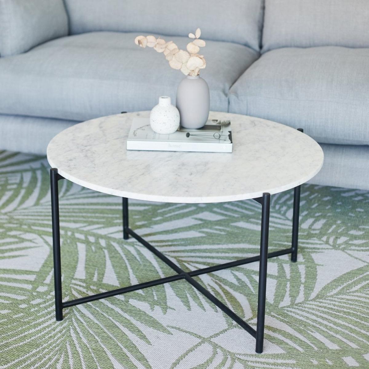 Make a statement in your home or office with the Aria white marble coffee table with a brass metal frame. A contemporary coffee for living rooms, waiting rooms and hotel lounges. Choose between black or brass metal to match your decor. The Arie coffee table will make a statement wherever you decide to place it, and even more so when paired with other marble pieces from our Cult Home accessories range. This product is handcrafted from natural marble from the mountains of Rajasthan, India, making each piece unique with naturally occurring texture, pattern, and colour. These variations should not be seen as flaws but a design that is truly one-of-a-kind.
