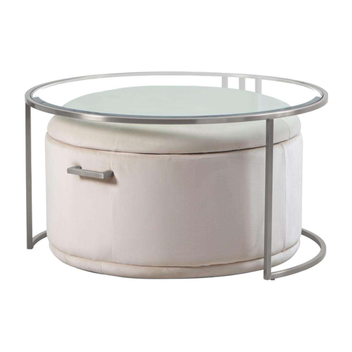 Aria Silver Coffee Table and Storage Ottoman Chalk - Set