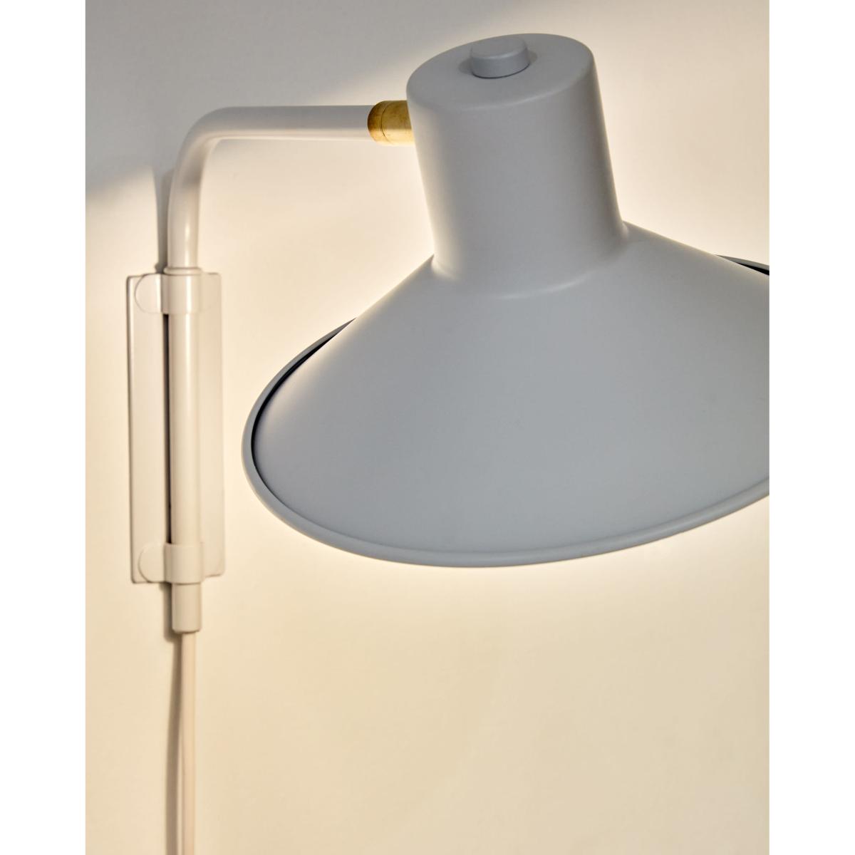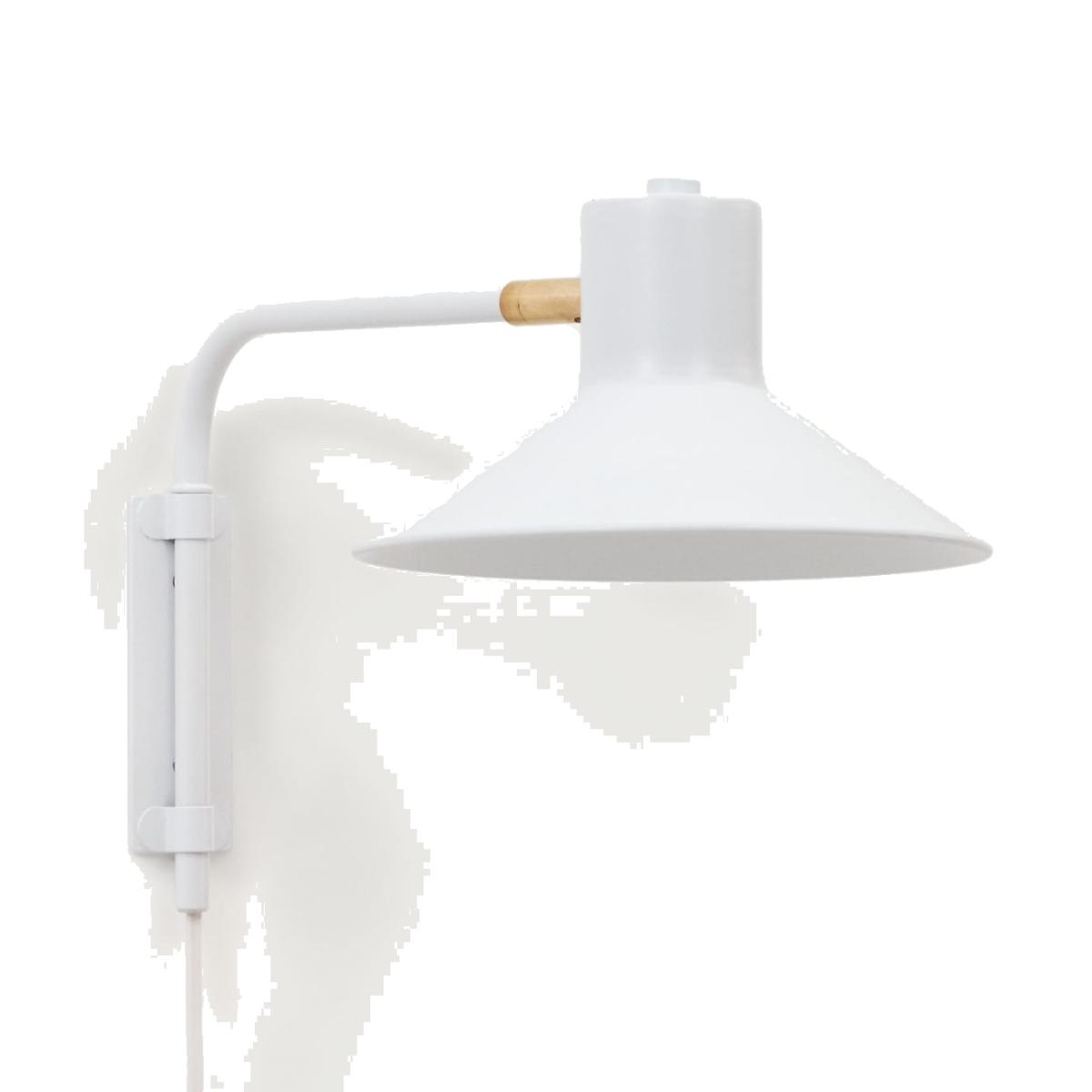 Articulated wall light with arm, white painted steel screen and small brass detail. An ideal design piece to illuminate all types of spaces and fit into any type of environment. An ideal design piece to illuminate all types of spaces and fit into any type of environment.