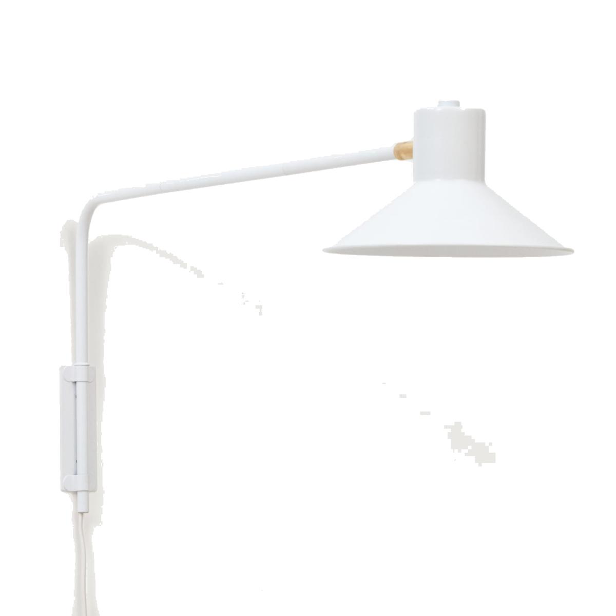 Articulated wall light with arm, white painted steel screen and small brass detail. An ideal design piece to illuminate all types of spaces and fit into any type of environment. An ideal design piece to illuminate all types of spaces and fit into any type of environment.