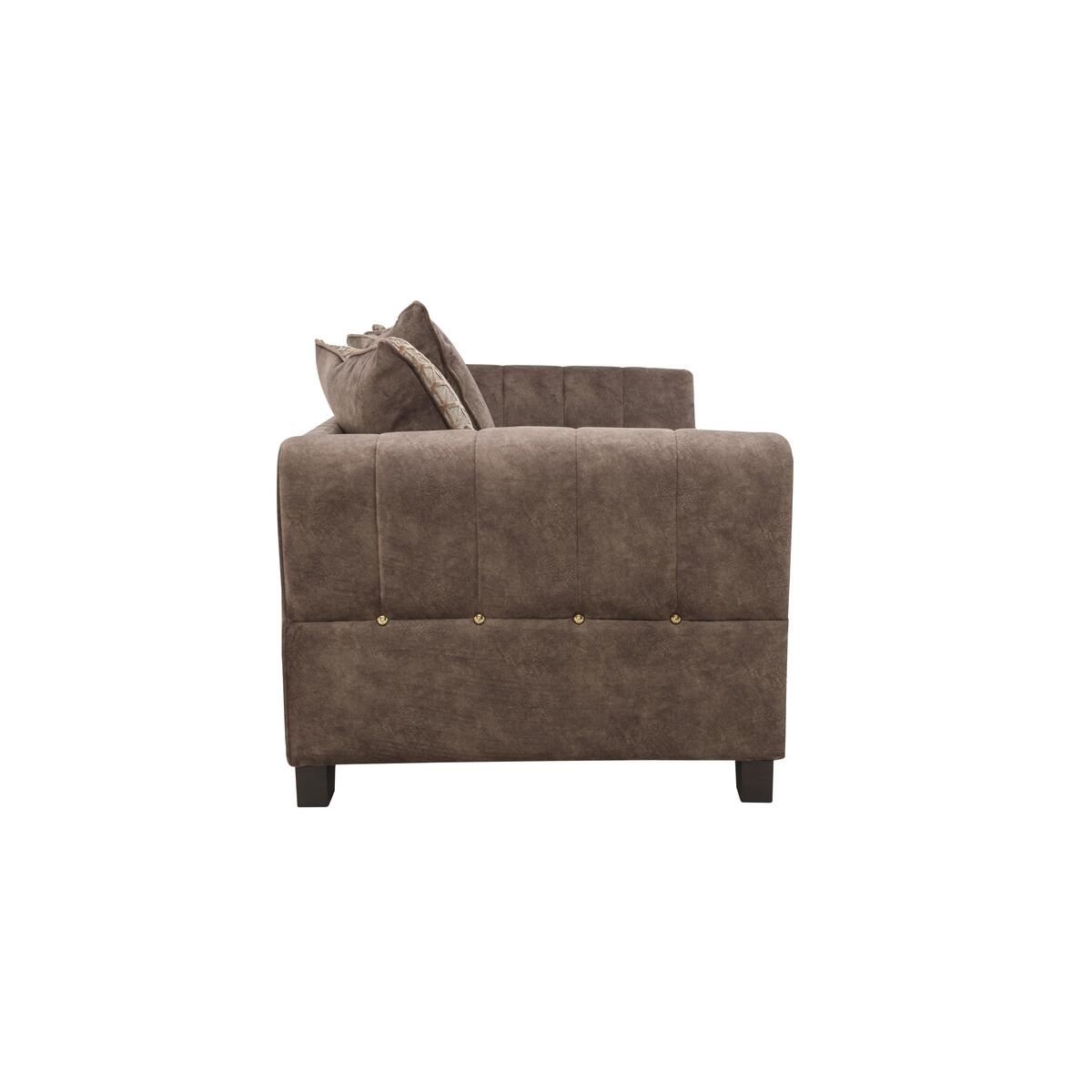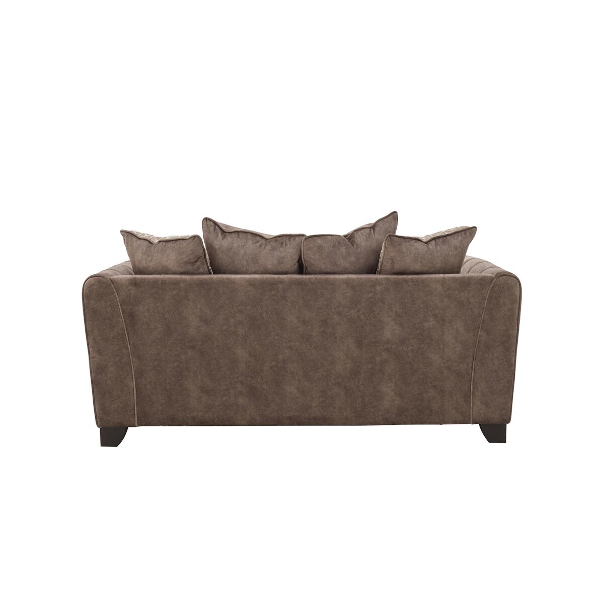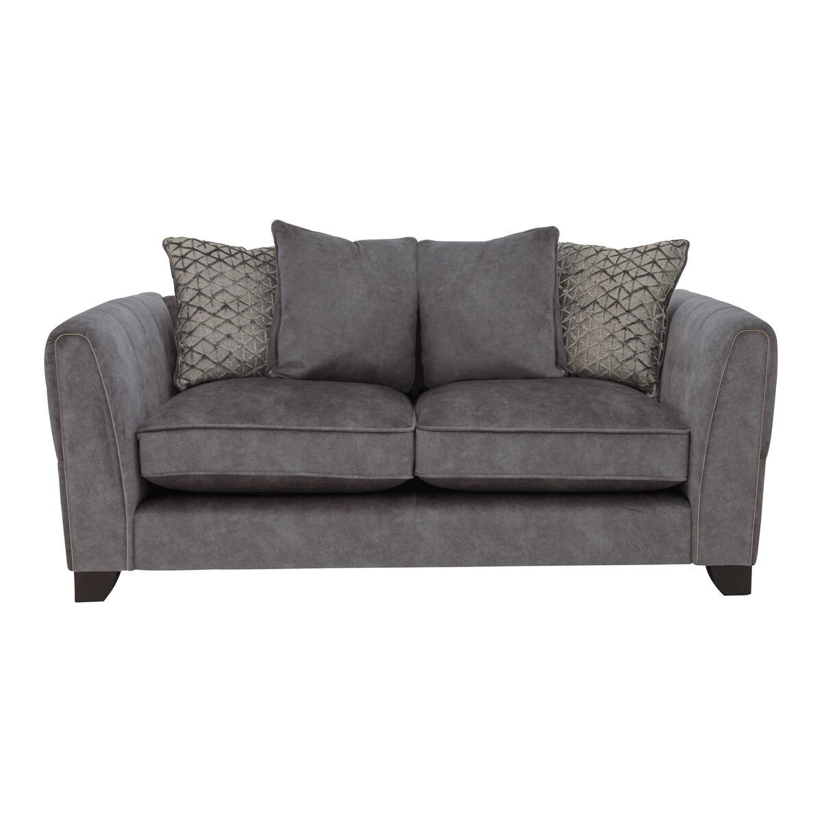 The perfect blend of modern elegance and luxury comfort, the Ariana Collection was designed to stand out. Grand in scale and contemporary in style, its generous, deep seats are upholstered in a unique fabric with the industrial look of leather but the incredible softness of luxury velvet for a truly indulgent lounging experience. Encore foam seats are sumptuously comfortable and keep their shape perfectly without re-plumping and a beautiful array of feather filled scatter cushions with a velvety sheen create a cushioned heaven. The elegant arms are decorated with delicate fluting and each piece comes with the option of brass or chrome studding and piping for a touch of opulence. Available in a variety of plush, gorgeous colours to complement the modern home. Handcrafted in the UK and exclusive to Furniture Village. Relax in glamorous luxury. The unique fabric upholstery of this two-seater pillow back sofa looks like leather but feels like velvet. Encore foam cushions offer exceptional comfort. Why you’ll love it. Velvet-soft fabric sofa looks just like leather. Indulgently luxe, glamorous style. Roomy for a two-seater with wide seats. Generously deep ‘spring-back’ encore foam seat cushions. Arms feature hand-sewn fluting, brass piping and studs. Feather-filled pillow back cushions in lustrous fabrics and velvets. Beautifully handcrafted in the UK, exclusively for Furniture Village. What you need to know. Medium comfort level. Encore foam seat cushions spring back into shape. Feather-filled pillow backs are easy to plump and ‘dress’. Unique fabric has the softness of velvet and the look of industrial leather. Sprung seats with firm front edge, webbed back suspension. Solid hardwood frame, with dark wood feet. Some fabrics can show wear on areas of more use or in direct sunlight. Plump, turn and rotate seat and back cushions regularly if possible. Please read our upholstery care guide for more advice. Part of the Ariana range including sofas, snuggler chair, armchair and footstools.