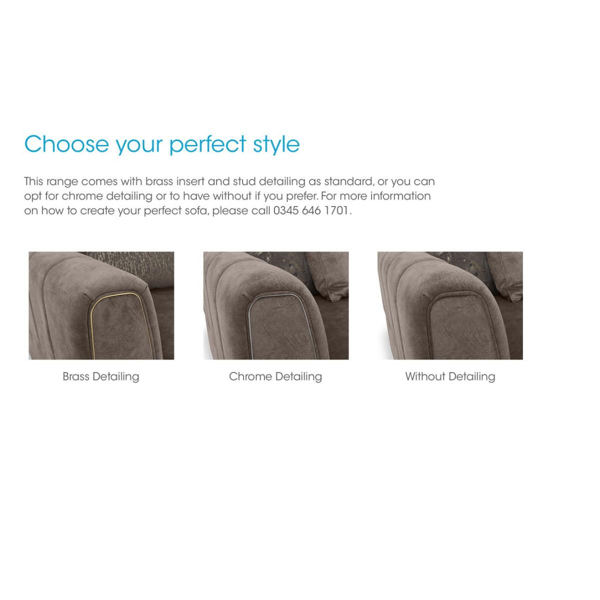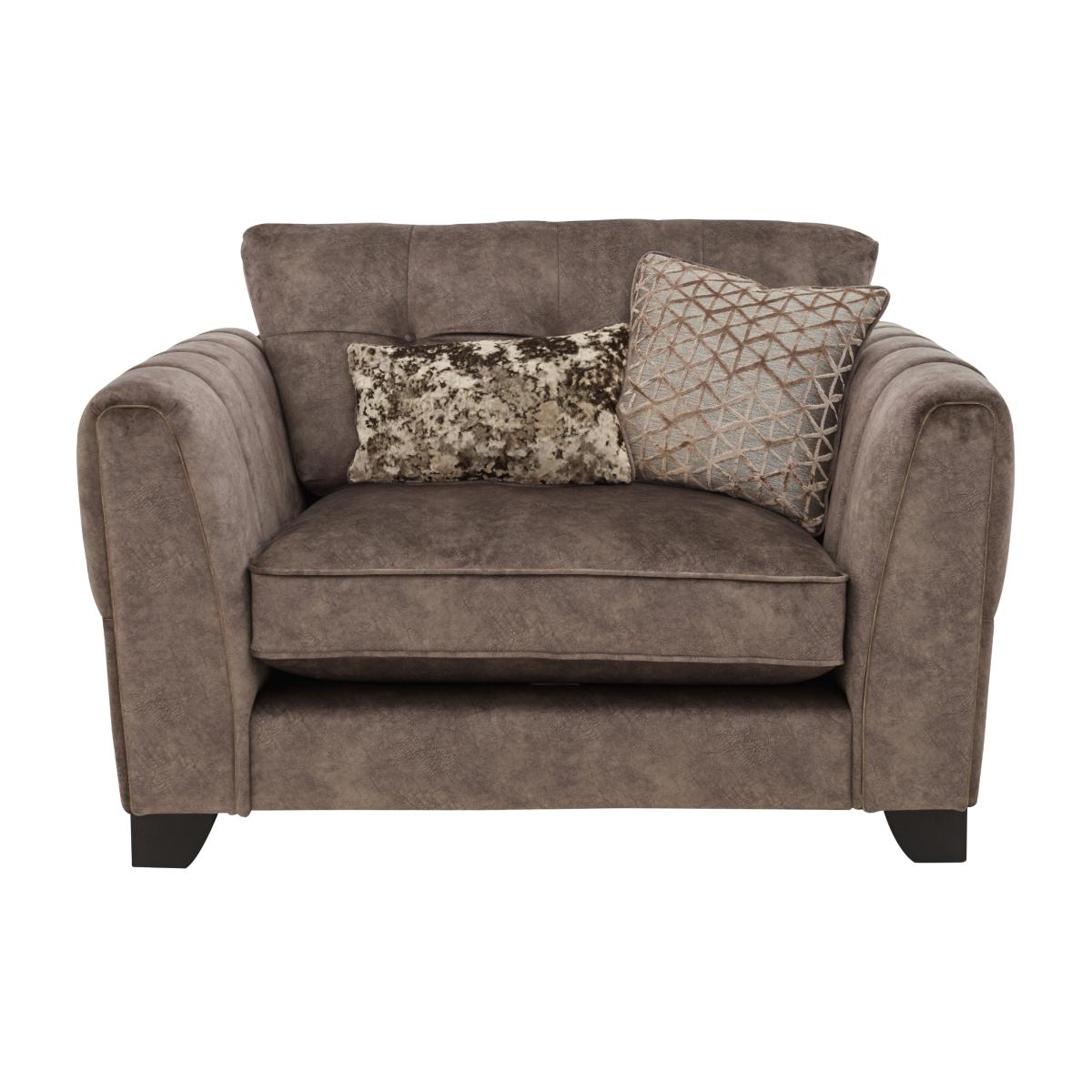 The perfect blend of modern elegance and luxury comfort, the Ariana Collection was designed to stand out. Grand in scale and contemporary in style, its generous, deep seats are upholstered in a unique fabric with the industrial look of leather but the incredible softness of luxury velvet for a truly indulgent lounging experience. Encore foam seats are sumptuously comfortable and keep their shape perfectly without re-plumping and a beautiful array of feather filled scatter cushions with a velvety sheen create a cushioned heaven. The elegant arms are decorated with delicate fluting and each piece comes with the option of brass or chrome studding and piping for a touch of opulence. Available in a variety of plush, gorgeous colours to complement the modern home. Handcrafted in the UK and exclusive to Furniture Village. Treat yourself to this snuggler chair. It’s surprisingly versatile – there’s room for two – and a clear style-leader thanks to its gorgeous nubuck leather-like upholstery. Why you'll love it This classic back fabric snuggler chair stands out in style. Sumptuous style, serious comfort, superb quality. Luxurious yet durable upholstery looks and feels like nubuck leather. Generously proportioned and ready for lounging with a deep roomy seat. Exceptional craftsmanship – firm seat edge, solid hardwood frame, dark wood feet. Sink-in soft seat cushion comes with our 5-year plumpness guarantee. It’s filled with Encore foam so it springs back into shape, time after time. The high, gently-curved arms feature hand-sewn fluting. Opt for brass-effect or chrome-effect piping and studs – at no extra cost. 2 reversible feather-filled scatters included – 1 square cushion and 1 bolster cushion. Handmade in the UK and only at Furniture Village. This classic back fabric snuggler chair is part of our Ariana range. What you need to know Medium comfort level. Seat suspension: sprung with firm front edge. Seat cushioning: Encore foam. Back support: webbing. Back cushioning: fibre. For ease of delivery, please ensure there is sufficient access to your home. Some fabrics can show wear on areas of more use or in direct sunlight. Plump, turn and rotate seat and back cushions regularly. Please read our upholstery care guide for more advice. Shop our Ariana range for a huge choice of sofa, chair and footstool styles, sizes and fabrics.