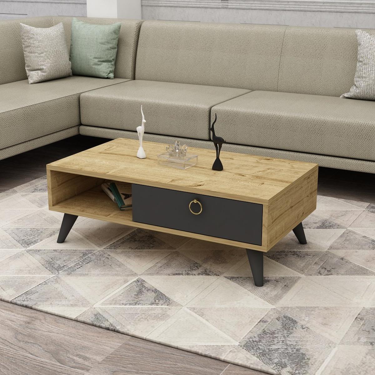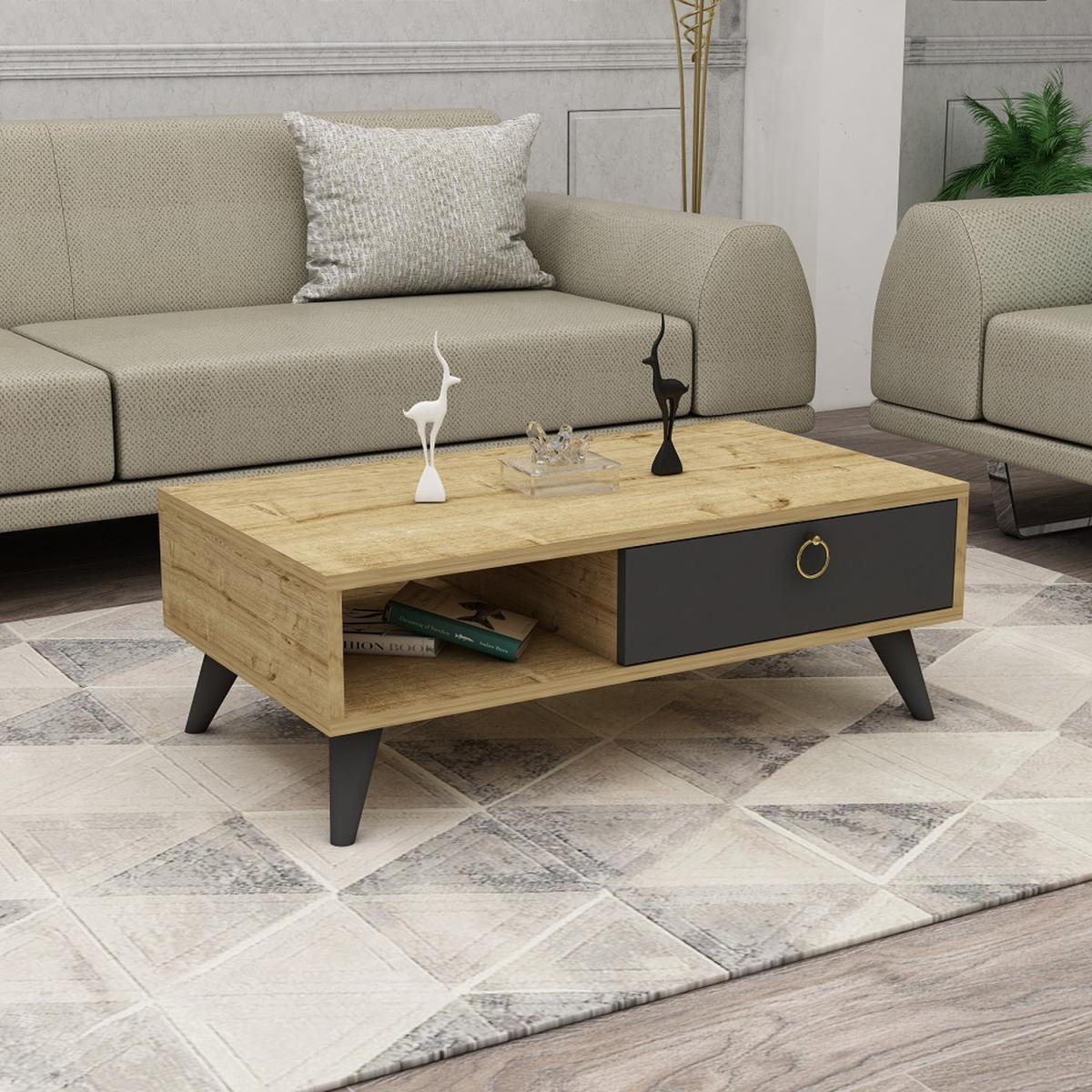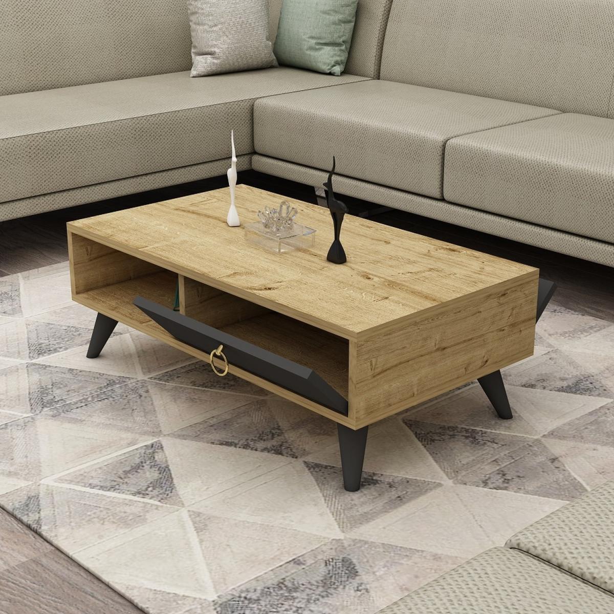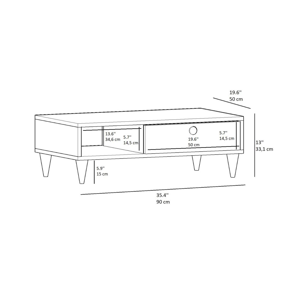 The product is made of a thick high-quality melamine coated particleboard. The manufactured wood surface is water-resistant to some extent and the edges are banded with PVC edge banding tape. Legs are constructed from quality wooden plastic. The handle is metal. First-class assemblyinstallation hardware and accessories are used. Our products are produced from certified quality raw materials that do not contain carcinogenic substances and comply with European Union health norms.