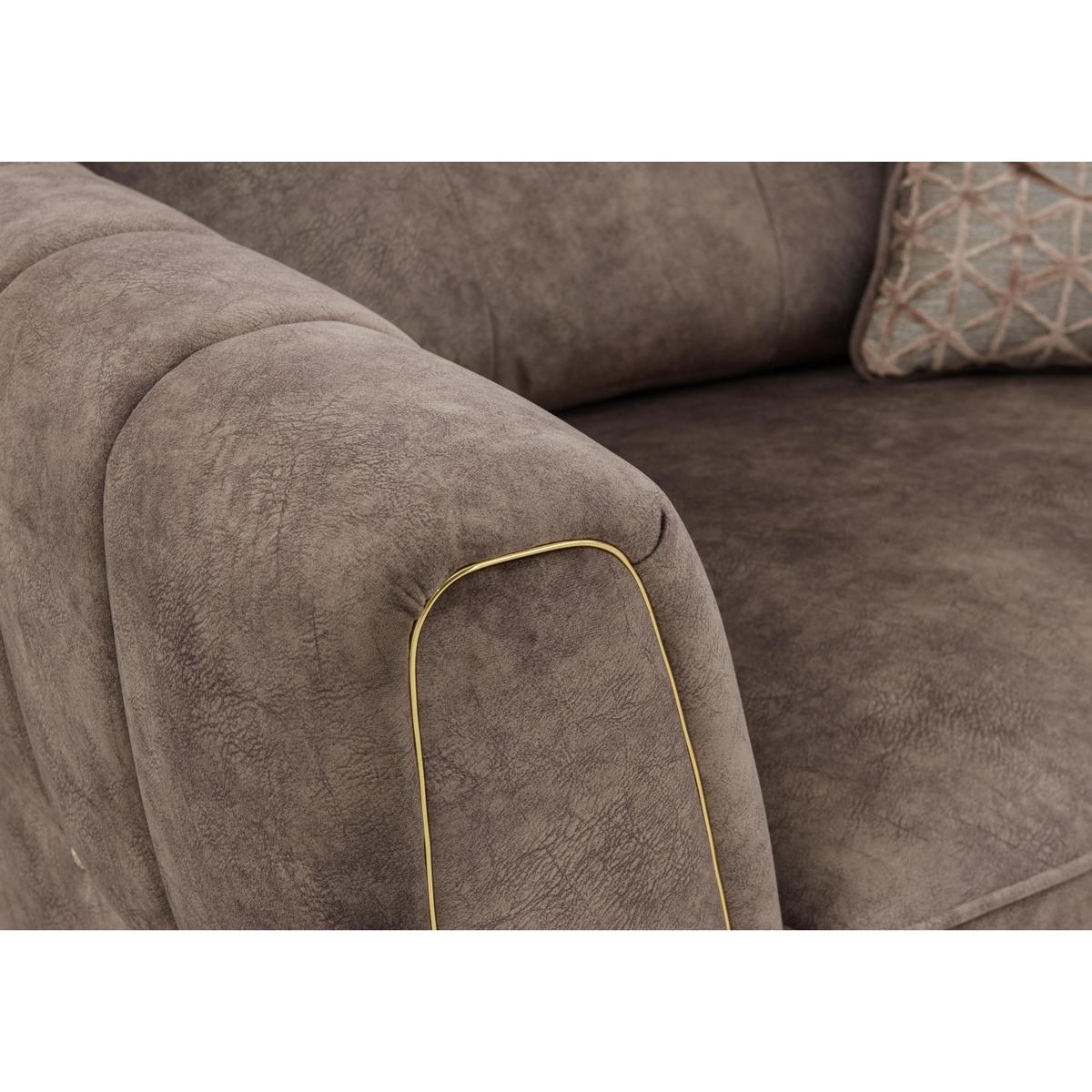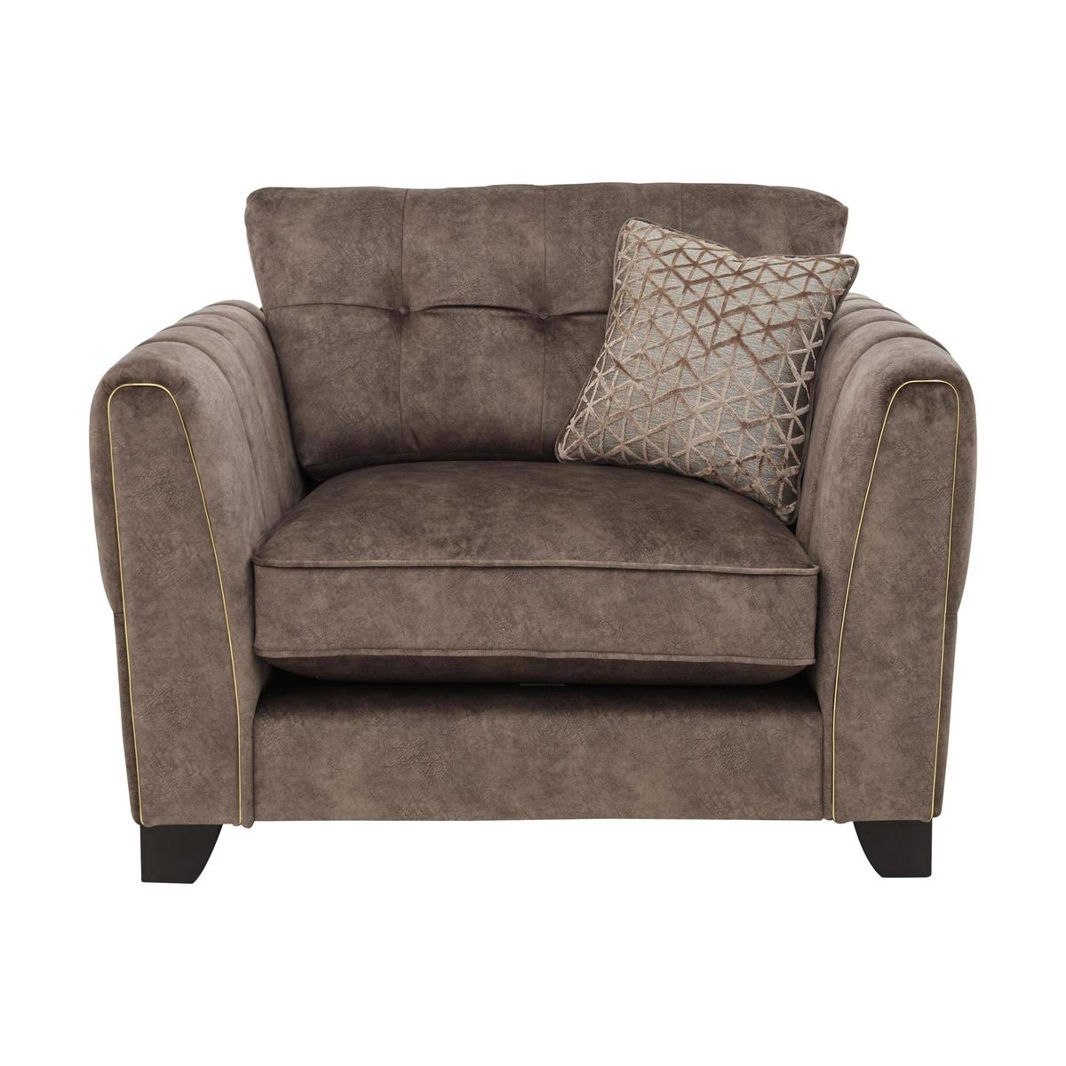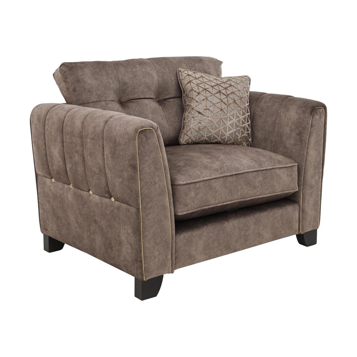 The perfect blend of modern elegance and luxury comfort, the Ariana Collection was designed to stand out. Grand in scale and contemporary in style, its generous, deep seats are upholstered in a unique fabric with the industrial look of leather but the incredible softness of luxury velvet for a truly indulgent lounging experience. Encore foam seats are sumptuously comfortable and keep their shape perfectly without re-plumping and a beautiful array of feather filled scatter cushions with a velvety sheen create a cushioned heaven. The elegant arms are decorated with delicate fluting and each piece comes with the option of brass or chrome studding and piping for a touch of opulence. Available in a variety of plush, gorgeous colours to complement the modern home. Handcrafted in the UK and exclusive to Furniture Village. Roomy armchair with unique upholstery that looks like industrial leather but is velvet soft fabric. A winning combination of good looks and deep-seated comfort. Why you’ll love it. Velvet-soft fabric sofa looks just like leather. Indulgently luxe, glamorous style. Incredibly roomy, ideal for lounging or entertaining. Generously deep ‘spring-back’ encore foam seat cushions. Arms feature hand-sewn fluting, brass piping and studs. Feather filled, reversible accent scatter cushion included. Beautifully handcrafted in the UK, exclusively for Furniture Village. What you need to know. Medium comfort level. Encore foam seat cushions spring back into shape. Unique fabric has the softness of velvet and the look of industrial leather. Sprung seat with firm front edge, webbed back suspension. Solid hardwood frame, with dark wood feet. Some fabrics can show wear on areas of more use or in direct sunlight. Plump, turn and rotate seat and back cushions regularly if possible. Please read our upholstery care guide for more advice. Part of the Ariana range including sofas, snuggler chair and footstools.