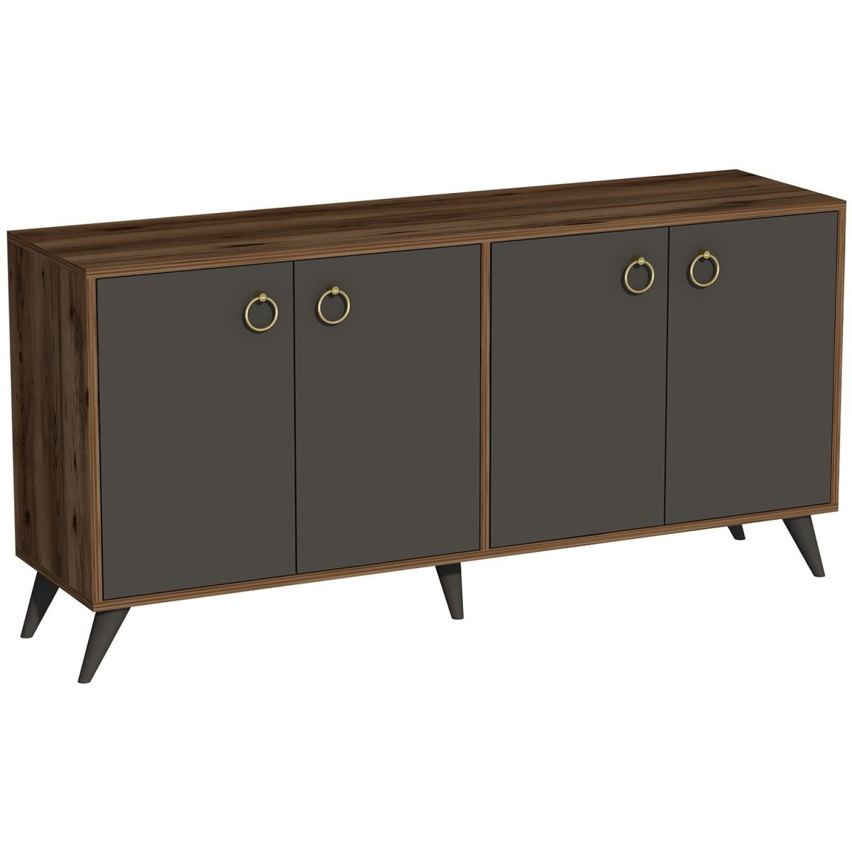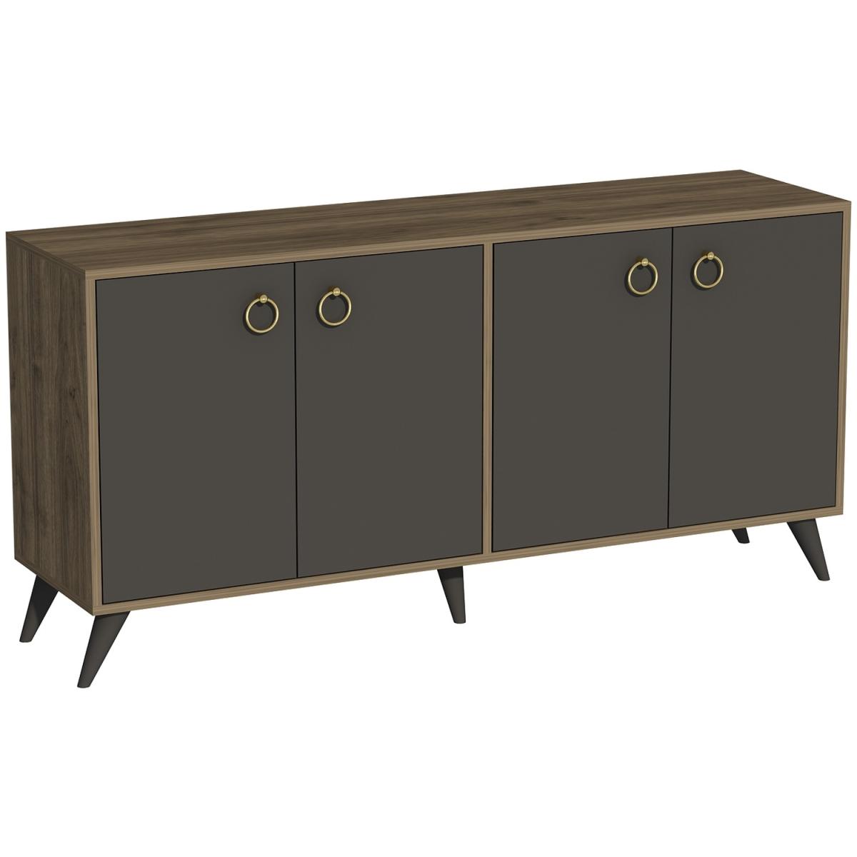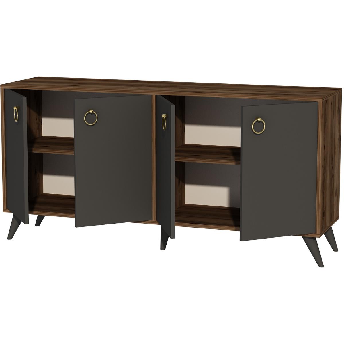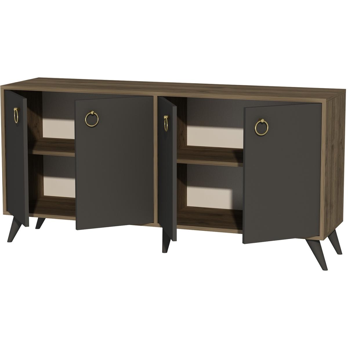 The sideboard has an elegant look with its metal handles. Also, you can store your utilities and other belongings. MATERIAL The sideboard is made of an 18 mm thick quality melamine-coated particleboard. The manufactured wood surface is water-resistant to some extent and the edges are banded with PVC edge banding tape. First-class assemblyinstallation hardware and accessories are used. Our products are produced from certified quality raw materials that do not contain carcinogenic substances and comply with European Union health norms. CLEANING You can clean your furniture with a dry cloth. Avoid prolonged contact of your product with moisture and water. ASSEMBLY The product will be delivered to the customer in the original package as disassembled. It is designed to be assembled by the customer using a power drill and screwdriver. Assembly instruction and installation hardware are included in the package. For fast and error-free installation, product parts are numbered with stickers in accordance with the assembly guide.