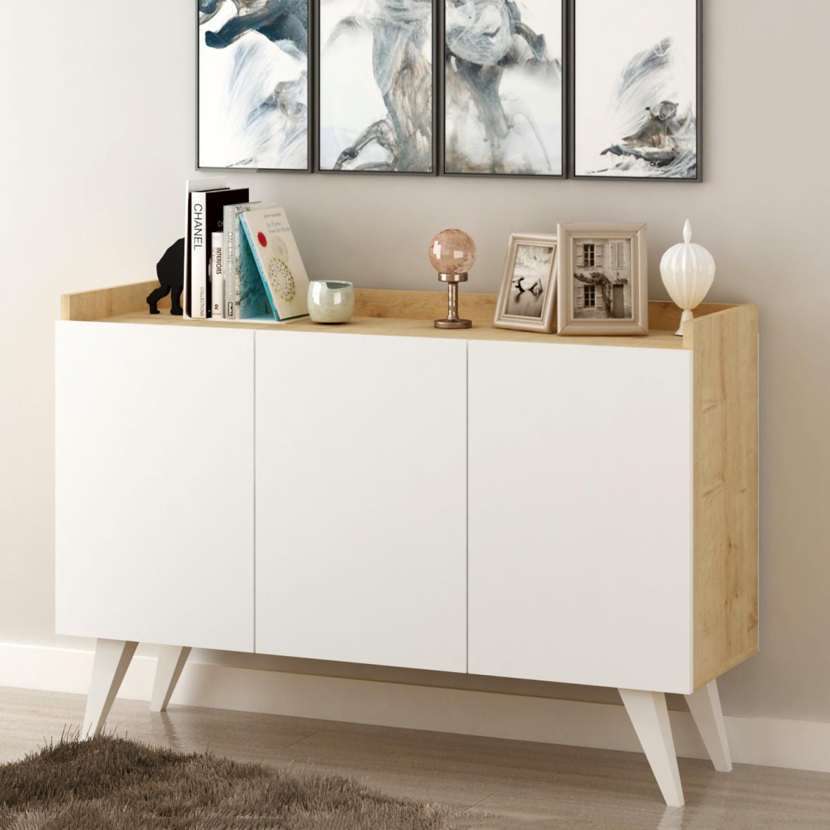 I love this sideboard for its clean, contemporary look that blends the warmth of oak with crisp white, making it highly versatile. It works well in modern, Scandi, and minimalist interiors, adding a touch of natural texture without overwhelming the space. Practical styling tips include using the surface for decorative accents like vases, lamps, or framed photos, while keeping the inside organised with baskets or boxes for a clutter-free look. Its neutral palette makes it a flexible piece that can be easily adapted to different colour schemes and decor styles, making it a smart investment for both everyday practicality and aesthetic appeal.