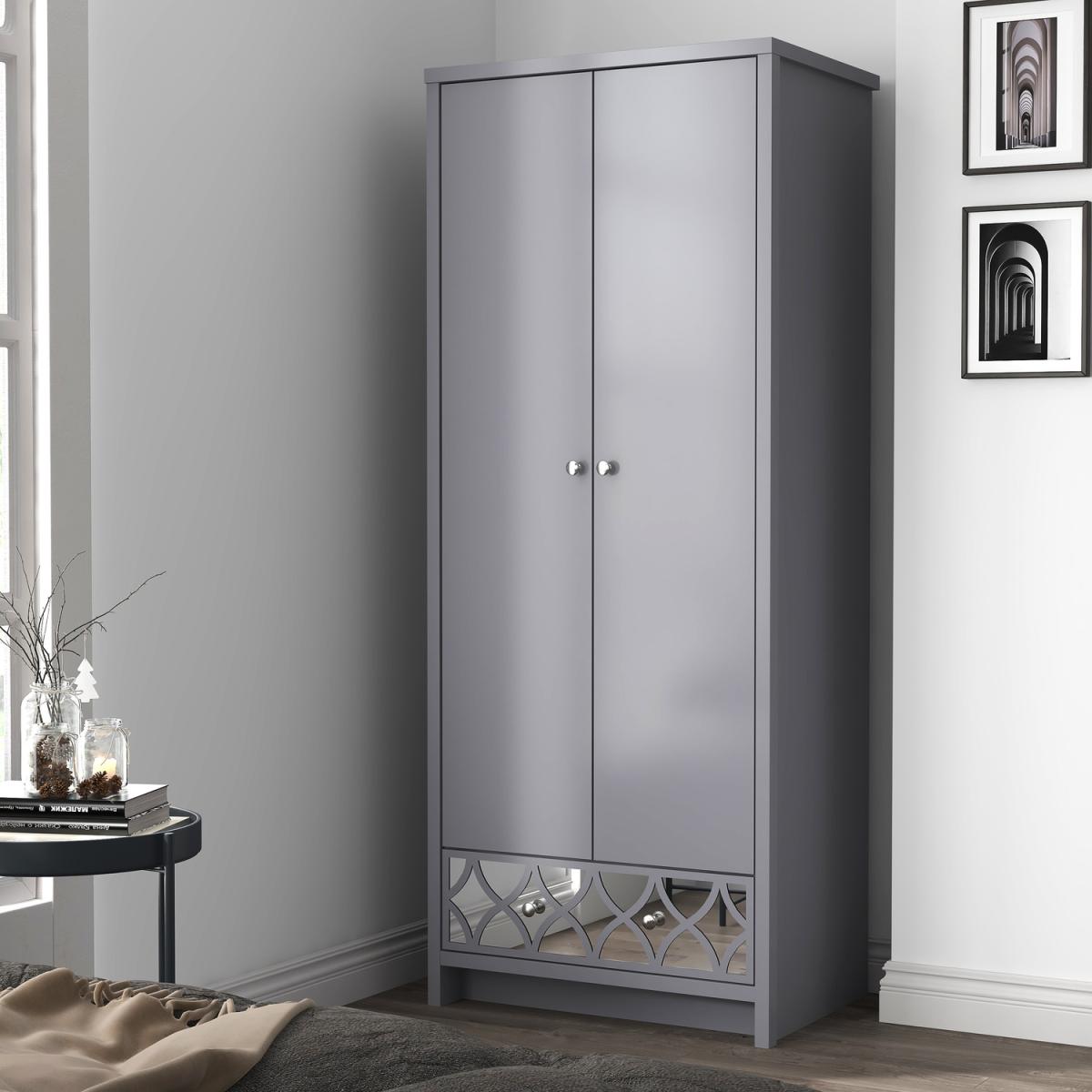 The Arianna 2 Door 1 Drawer Wardrobe is the ideal piece of bedroom furniture for any home. It has two doors and lots of storage space for clothing and accessories. This wardrobe is built of high quality produced woods, making it long-lasting and strong. It is styled with hanging rail storage elements, allowing lots of hanging and extra storage space. This wardrobe is both useful and attractive, making it a great option for any bedroom or living area. The packaging contains instructions and all installation equipment, all you have to do to construct this magnificent wardrobe is to follow the detailed directions.