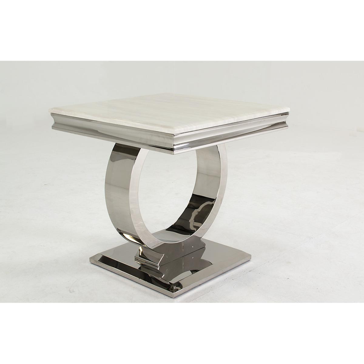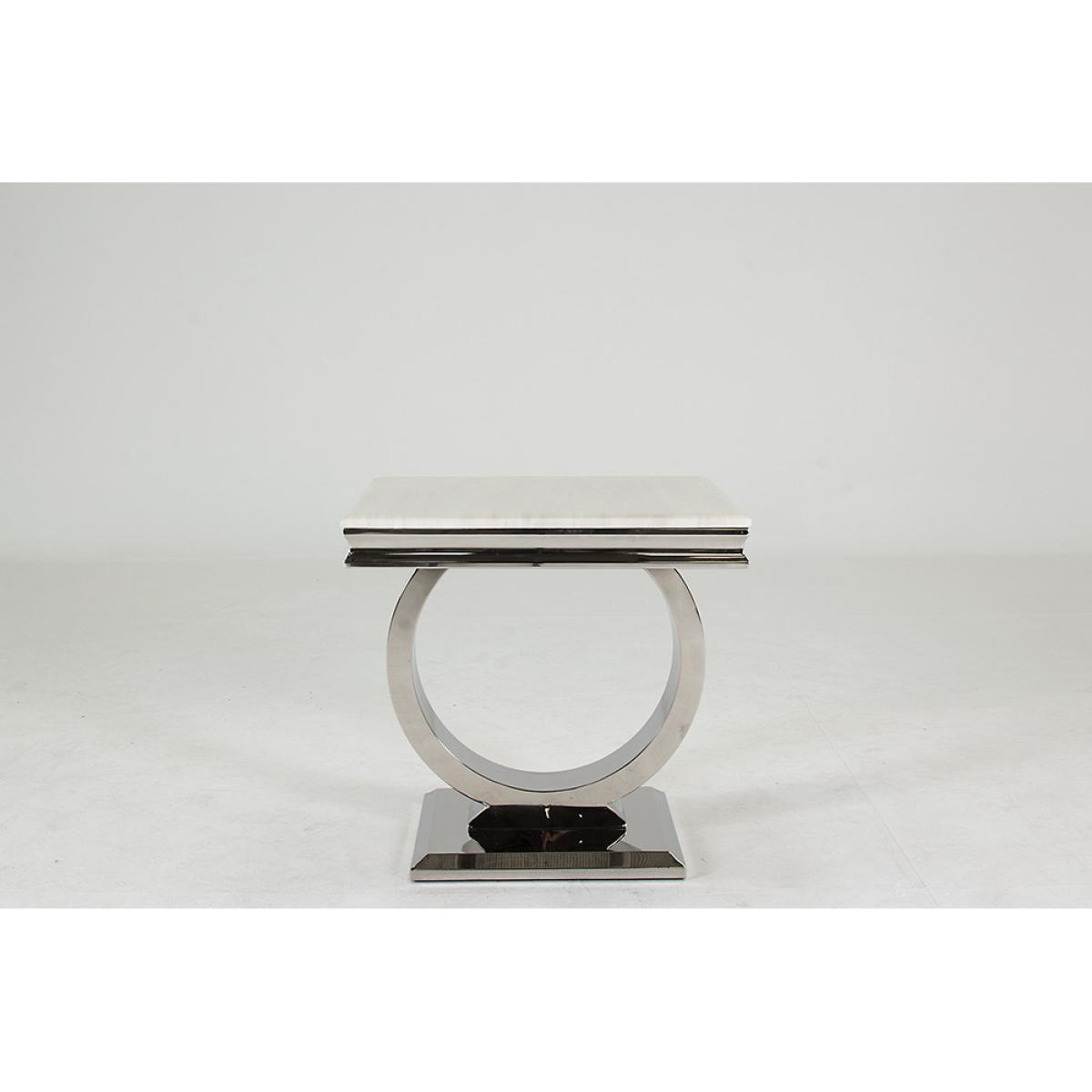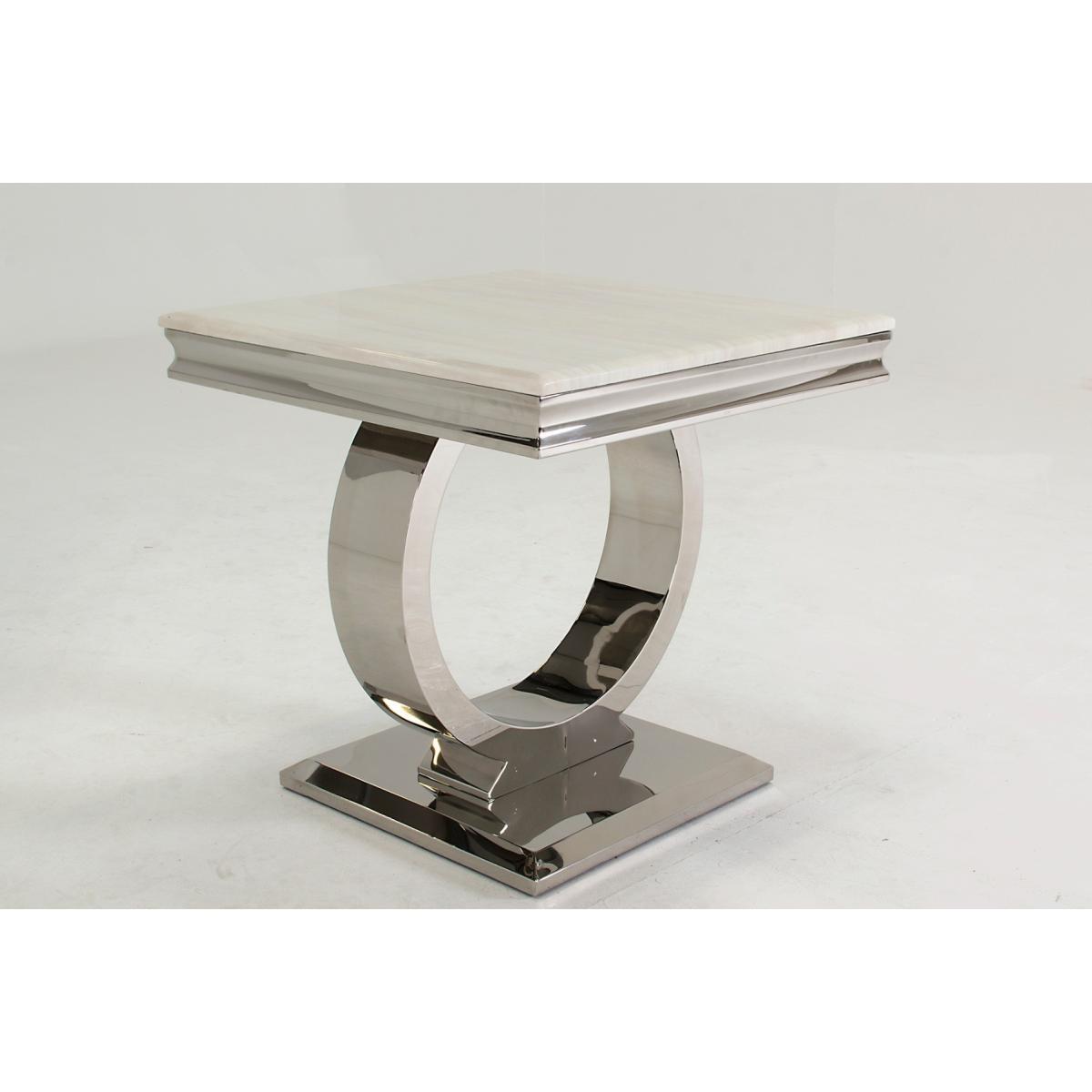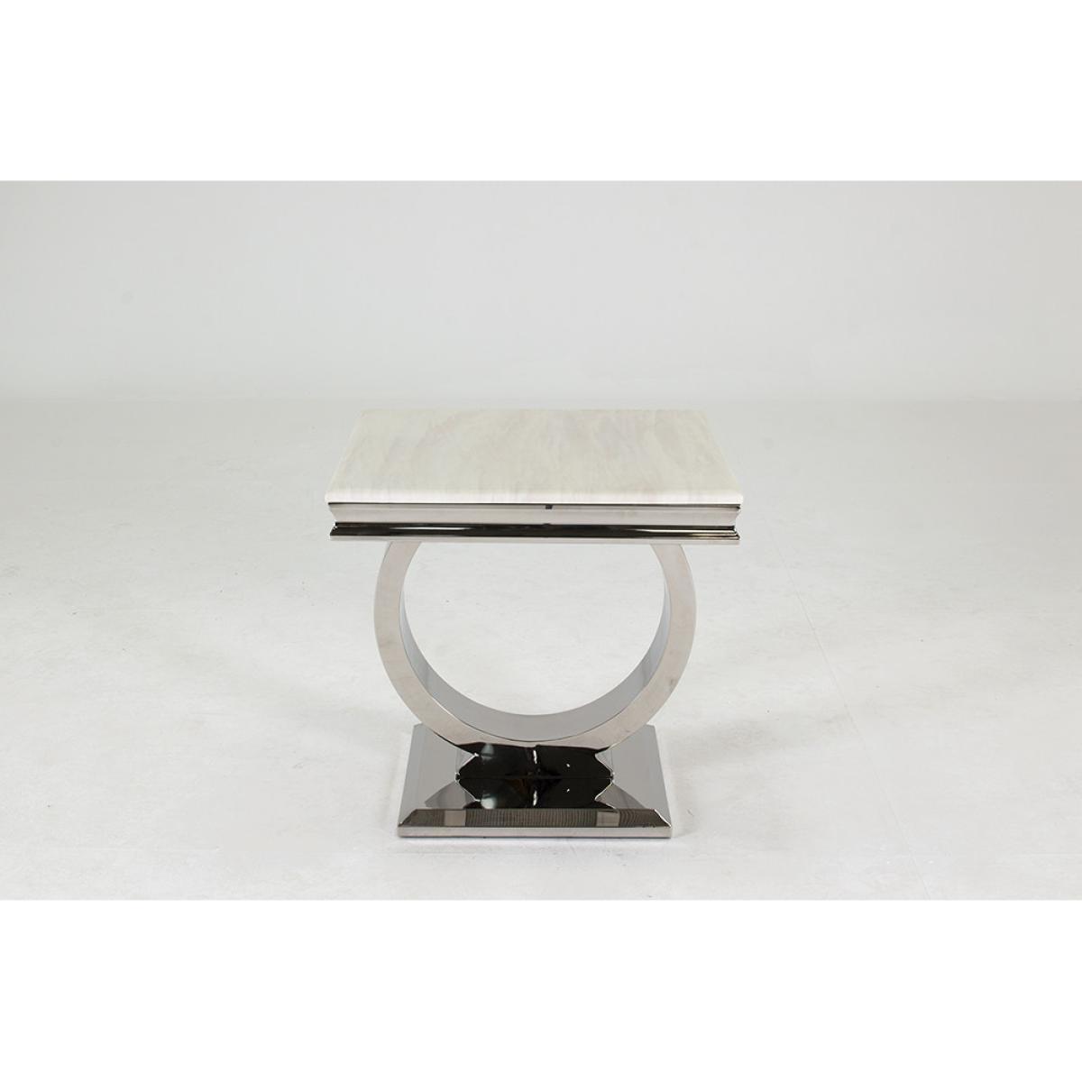 The Arianna Lamp Table is a stylish and practical occasional table which brings additional surface space to your home. It looks elegant in a wide range of interiors and works brilliantly when combined with other pieces in the Arianna Collection. The luxurious cream marble tabletop pairs perfectly with the reflective and bright high polished stainless-steel frame, complete with circular base feature creating an interesting twist. Strong marble tabletop Elegant and eye-catching polished stainless-steel frame Adds a stylish and glamorous accent to your home Coordinates perfectly with a wide range of other pieces from the Arianna Collection