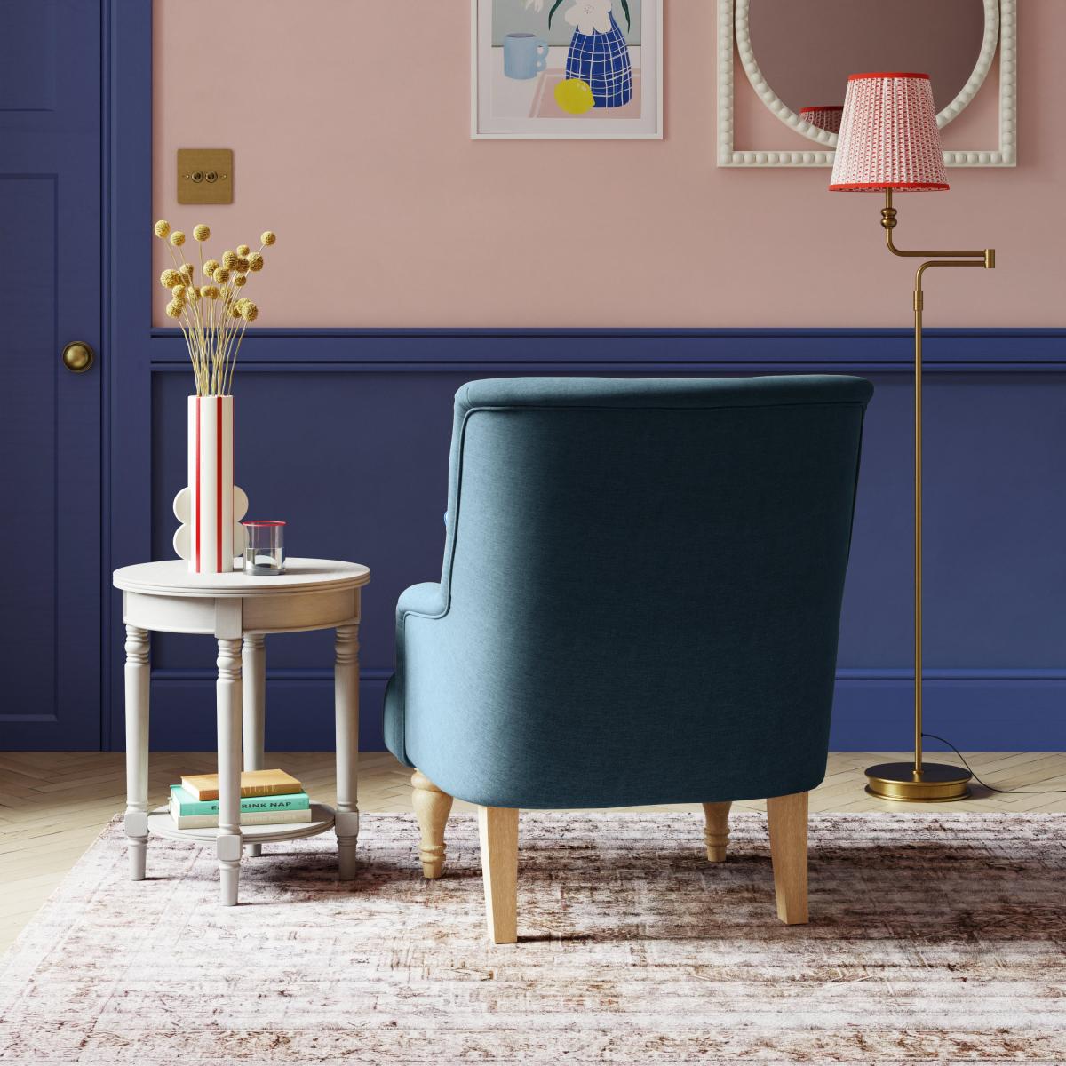 I’m a fan of the navy flatweave chair for its smart, tailored look and comfortable scale. Its deep-blue tone suits Scandi, modern-coastal or even a pared-back eclectic scheme, and the low profile makes it ideal as a reading-corner feature. To style it, drape a textured throw over one arm and add a contrasting cushion - think soft terracotta or mustard. Position alongside a slim-legged side table and a brass-finish floor lamp, then ground the spot with a neutral-toned rug for a pulled-together feel.