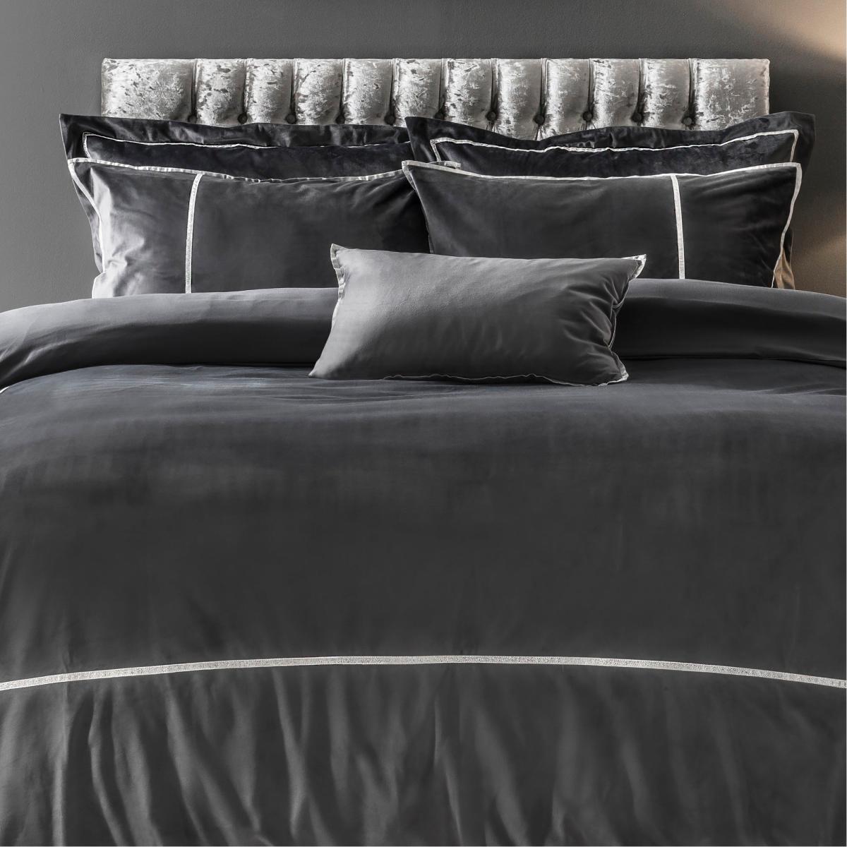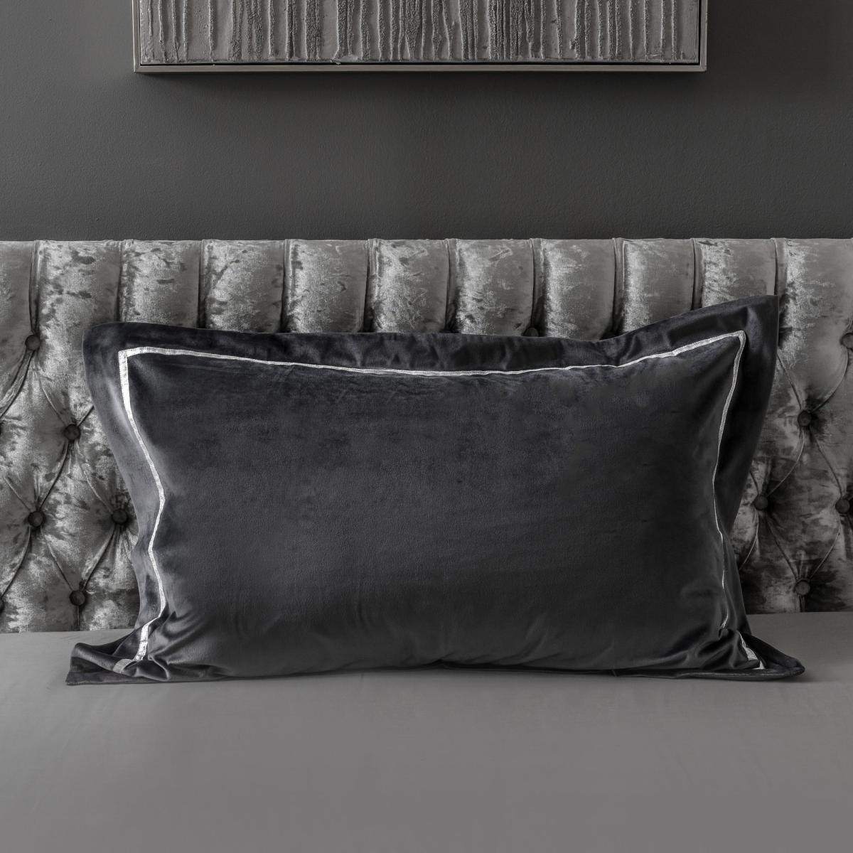 Style your bedroom with our glamorous Arianna bedlinen created in opulent velvet with metallic silver ribbon detail. This luxurious oxford pillowcase is styled in elegant grey and crafted from durable synthetic fibres for easy care and durability. Additional coordinating duvet sets and accessories are available.