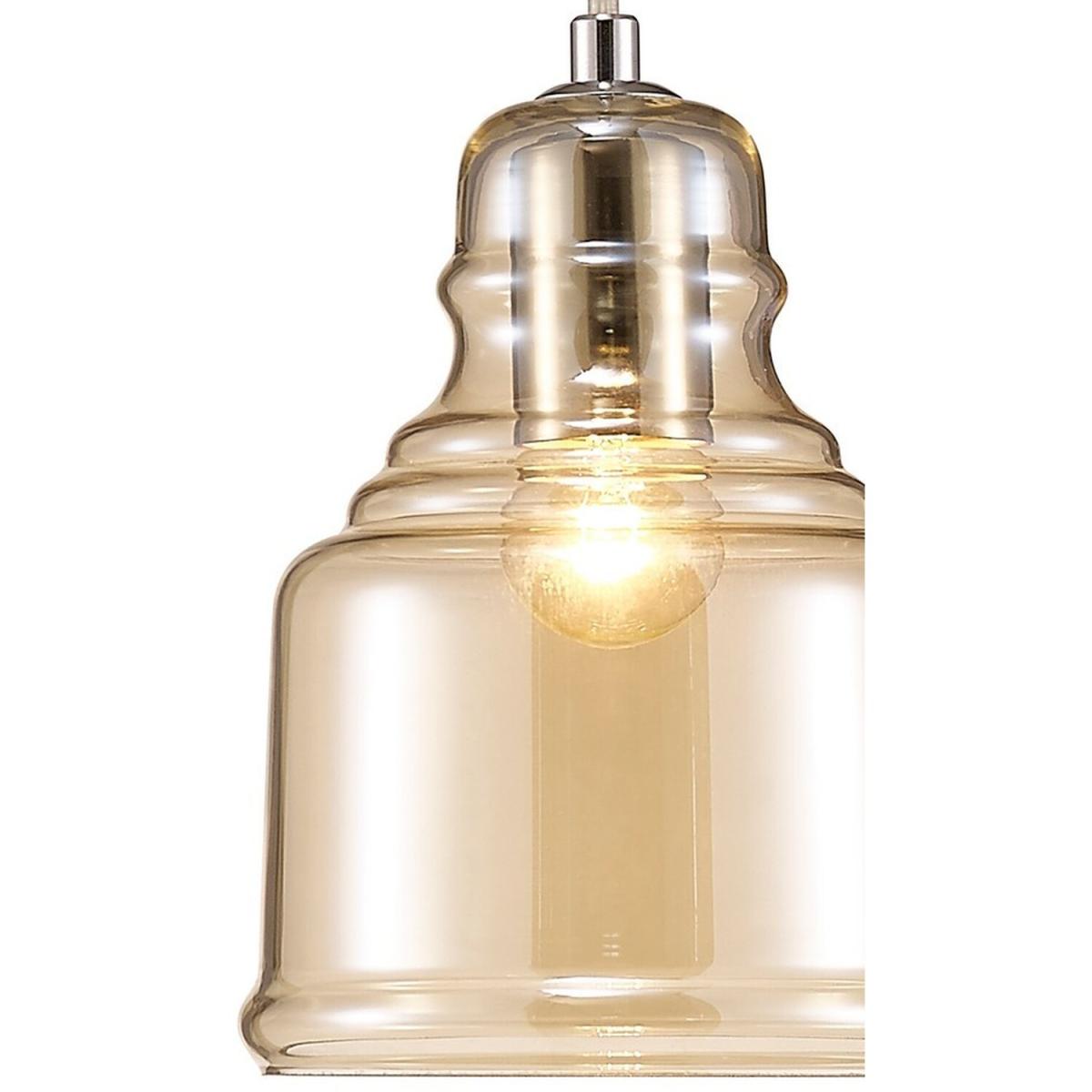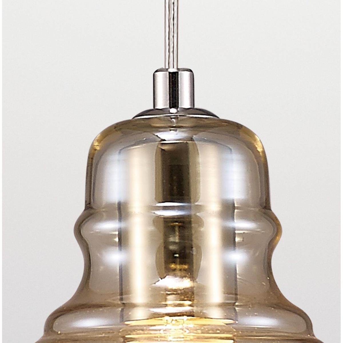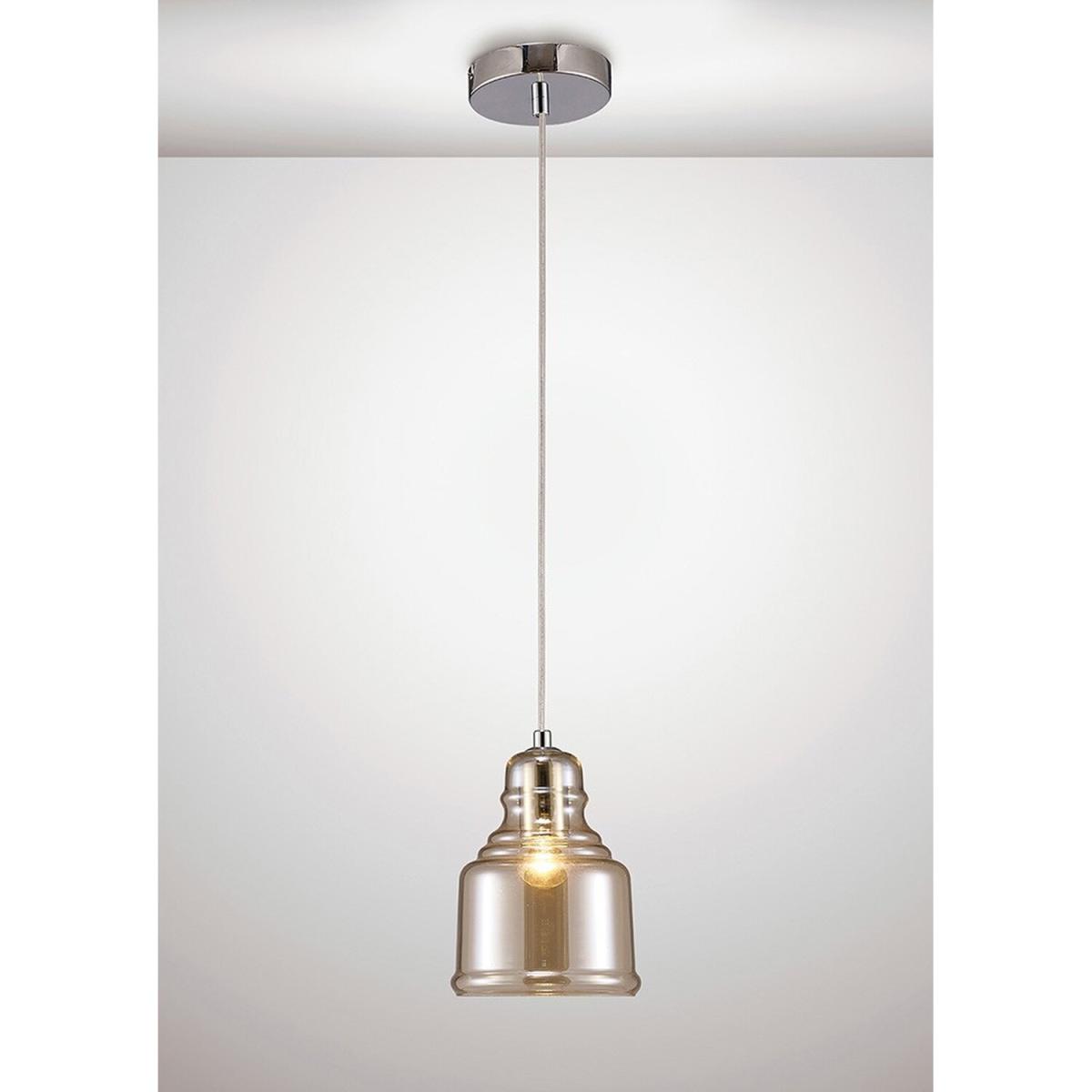 Available in two different colour finishes and 3 unique designs this range creates a modern lampshade effect using slim, round and bell shapes in various sizes and coloured glass. All three pendant sizes have a colour option of either polished chrome and smoked glass or polished chrome and cognac glass. The translucent glass creates a stunning optical effect when the pendants are illuminated. The smaller pendants take an E27 maximum 40W lamp whilst the larger pendants take an E27 maximum 60W lamp.