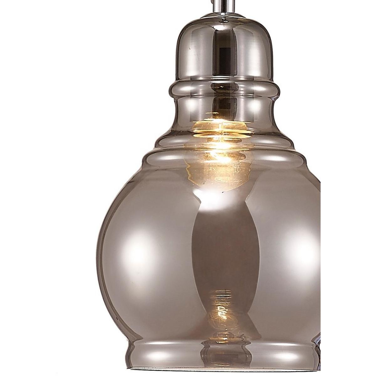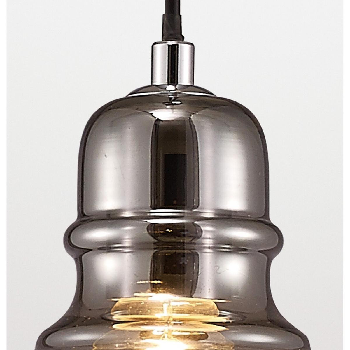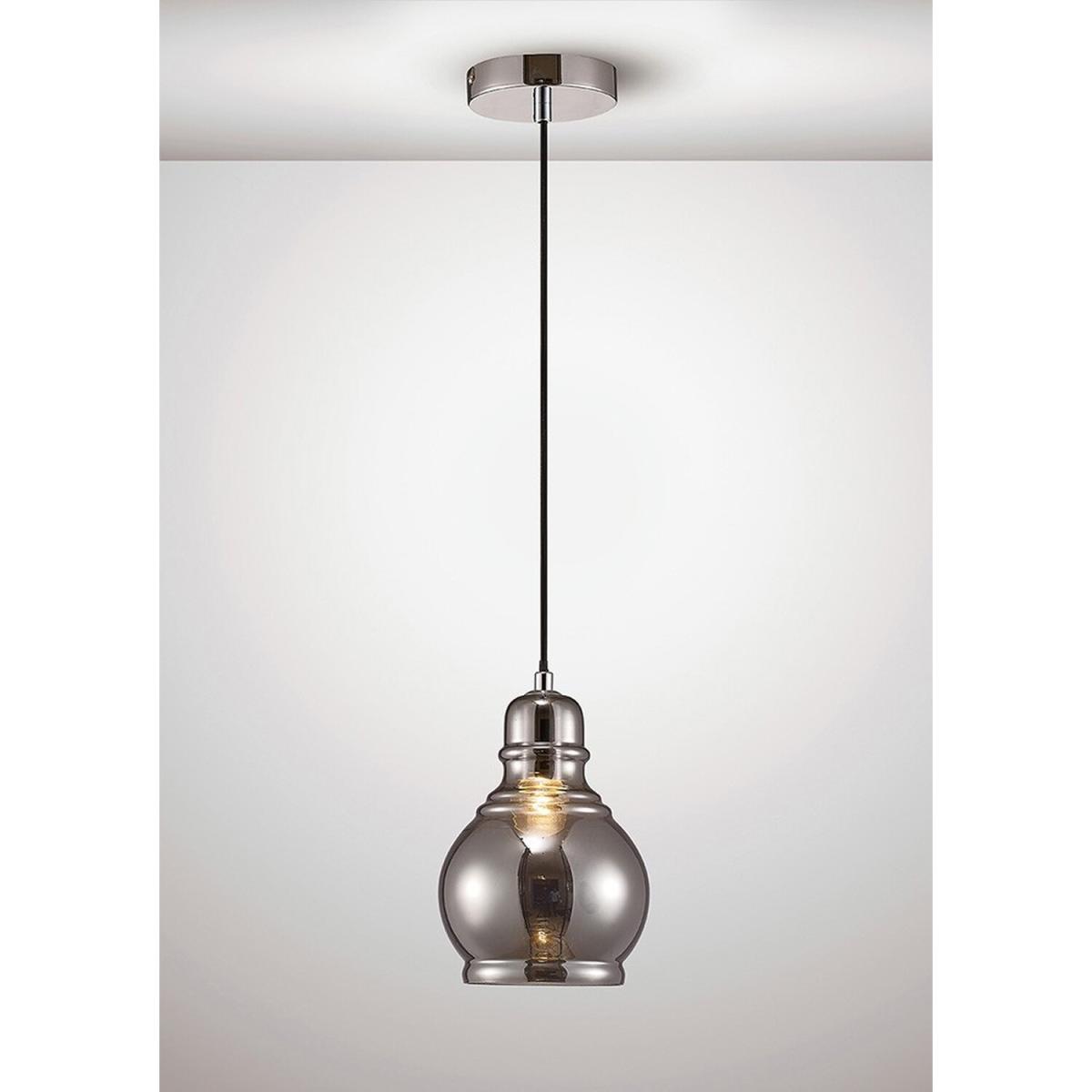 Available in two different colour finishes and 3 unique designs this range creates a modern lampshade effect using slim, round and bell shapes in various sizes and coloured glass. All three pendant sizes have a colour option of either polished chrome and smoked glass or polished chrome and cognac glass. The translucent glass creates a stunning optical effect when the pendants are illuminated. The smaller pendants take an E27 maximum 40W lamp whilst the larger pendants take an E27 maximum 60W lamp.