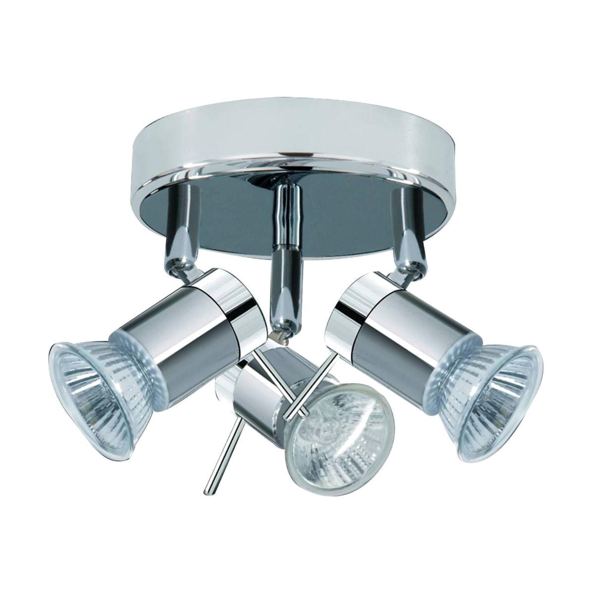 This chromesatin silver 3 LED light spotlight is ideal for lighting your kitchen, bathroom or any other room in your home. The chrome and satin silver finish creates a clean, modern look for any ceiling, and the angle of the lights can be adjusted to create the perfect lighting effect. The ceiling spotlight is IP44 rated and fully splash proof. Complete with LED lamps.