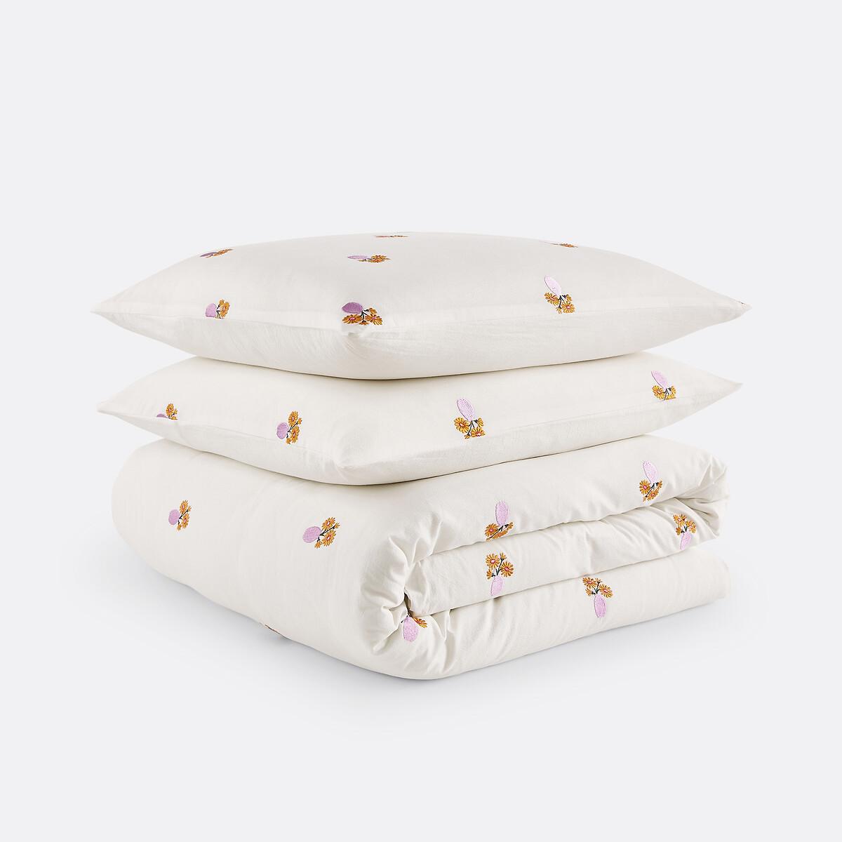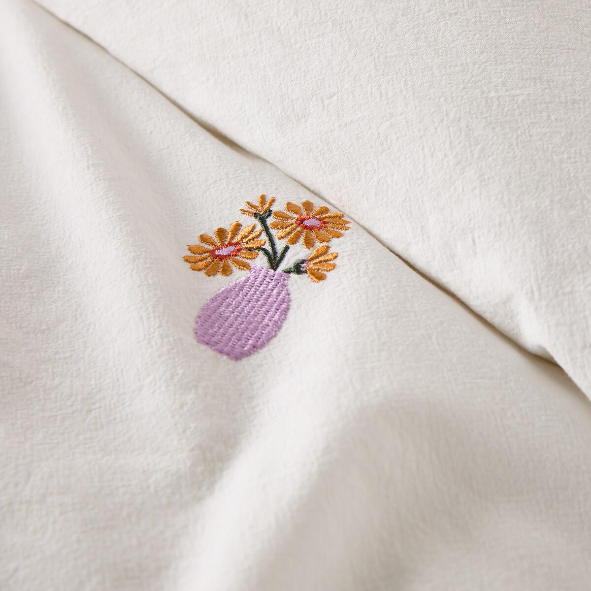 An avalanche of embroidered flowers and a symphony of soft, faded colours, in a charming world with English influences... Ariette, in vintage cotton, is an exclusive creation by our designers at La Redoute Intérieurs. Vintage cotton has a unique quality and feel, thanks to its long, untreated, hard-wearing fibres. Its slightly wrinkled appearance is incredibly on-trend, and it does not require ironing. Product Details • 100% cotton • Vintage cotton • Embroidered floral front, plain back • Straight buttoned hem. As the seasons go by, add your own personal touch by mixing the Ariette range with our range of plain Scenario bed linen. Care Advice • Machine washable at 60°C • By washing your laundry at 40°C instead of 60°C, you limit energy consumption. Dimensions • 140 x 200cm: Single • 200 x 200cm: Double • 240 x 220cm: King • 260 x 240cm: King • OEKO-TEX® Standard 100. Standard 100 certification by OEKO-TEX® tests textile products for harmful substances via an independent, international label.