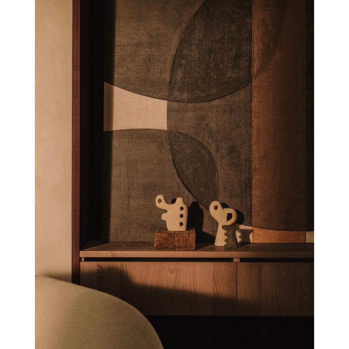 I love this stone sculpture’s understated elegance - its neutral beige finish allows it to blend seamlessly into various interiors, from minimalist to boho. Its abstract shape makes it a versatile piece that adds visual interest without overwhelming the space. It works particularly well on open shelving, side tables, or as a statement on a sideboard in a living room or hallway. For styling tips, try pairing it with natural textures like wood or linen, or complementing it with greenery for a fresh touch. Keep it as a standalone feature or cluster it with other curated objects for an intentionally curated look. Due to its size, it’s perfect for small spaces or as a subtle accent in larger interiors.