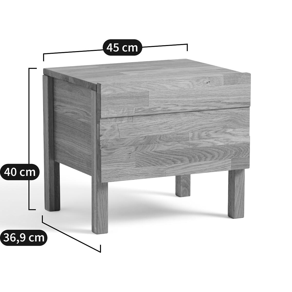 The Ariles bedside table designed in solid oak highlighted by sides with different textures. Product Details • Solid oak with textured-effect detailing on the frame, front and sides. Plywood base. FSC® certified wood • Oiled finish. Quality • Manufacture and neat finishesDimensions. Overall • Width: 45cm • Height: 40cm • Depth: 36.9cm. Usable space • L36.6 x H17.7 x D30.5cm • Made in Europe. • WOOD FROM SUSTAINABLY MANAGED FORESTS.FSC® certified wood comes from forests that are environmentally, socially and economically well managed. Dimensions and weight of parcel1 parcel • 61 x 42.5 x 10.5cm. 10kg.