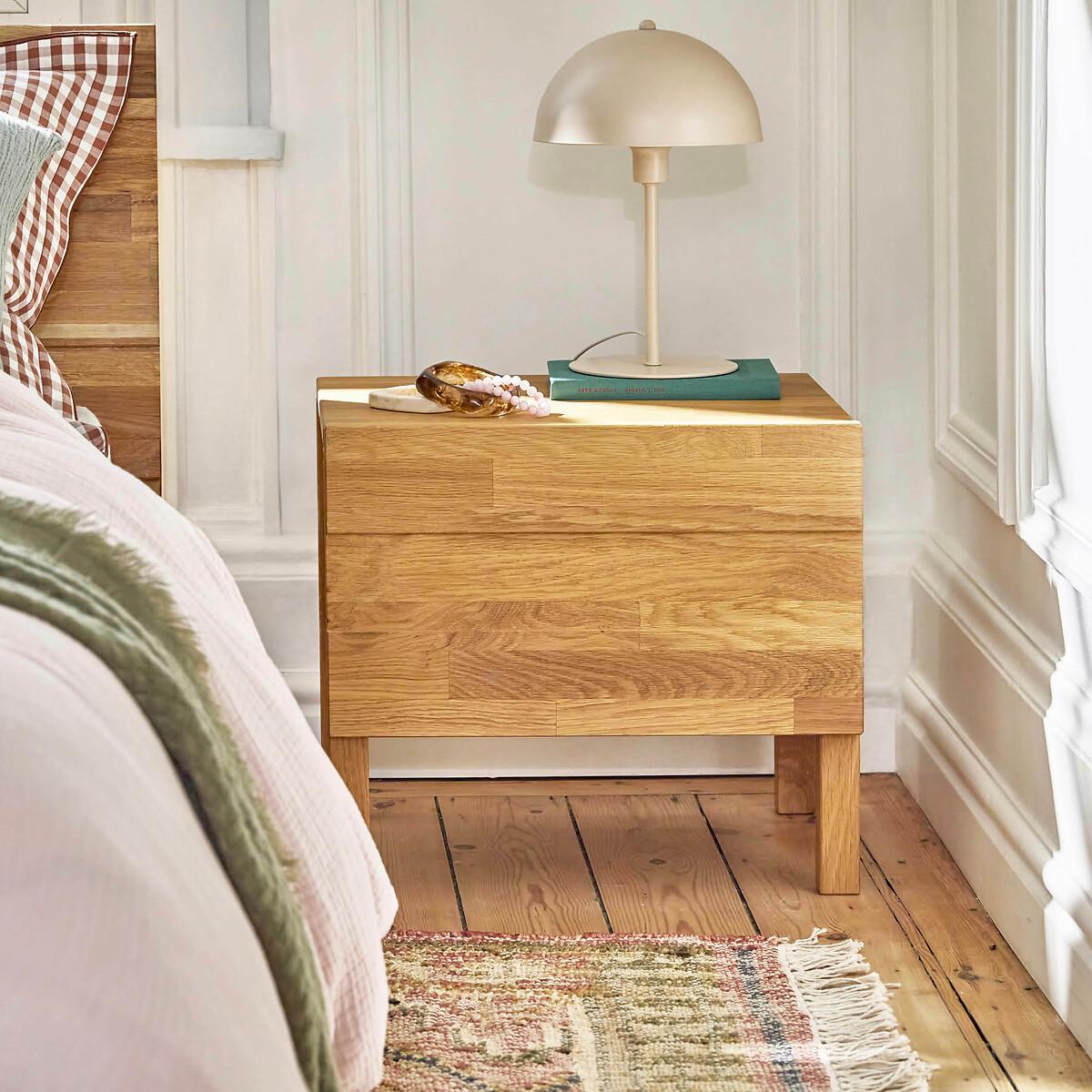 I love this bedside table for its clean, minimalist design and the natural warmth of the oak. It works brilliantly in a range of interiors, from Scandi-inspired spaces with light, airy tones to more rustic or transitional bedrooms wanting a touch of natural texture. Its finger-jointed construction adds subtle detail without overpowering, making it versatile enough to complement both modern and traditional settings. Practical styling tips include layering with neutral ceramics or small plants on top, and using the open space underneath for a basket or storage box to keep essentials handy yet discreet. It’s a simple, functional piece that can anchor a cosy bedroom scene or serve as a sleek, understated touch in an eclectic room.