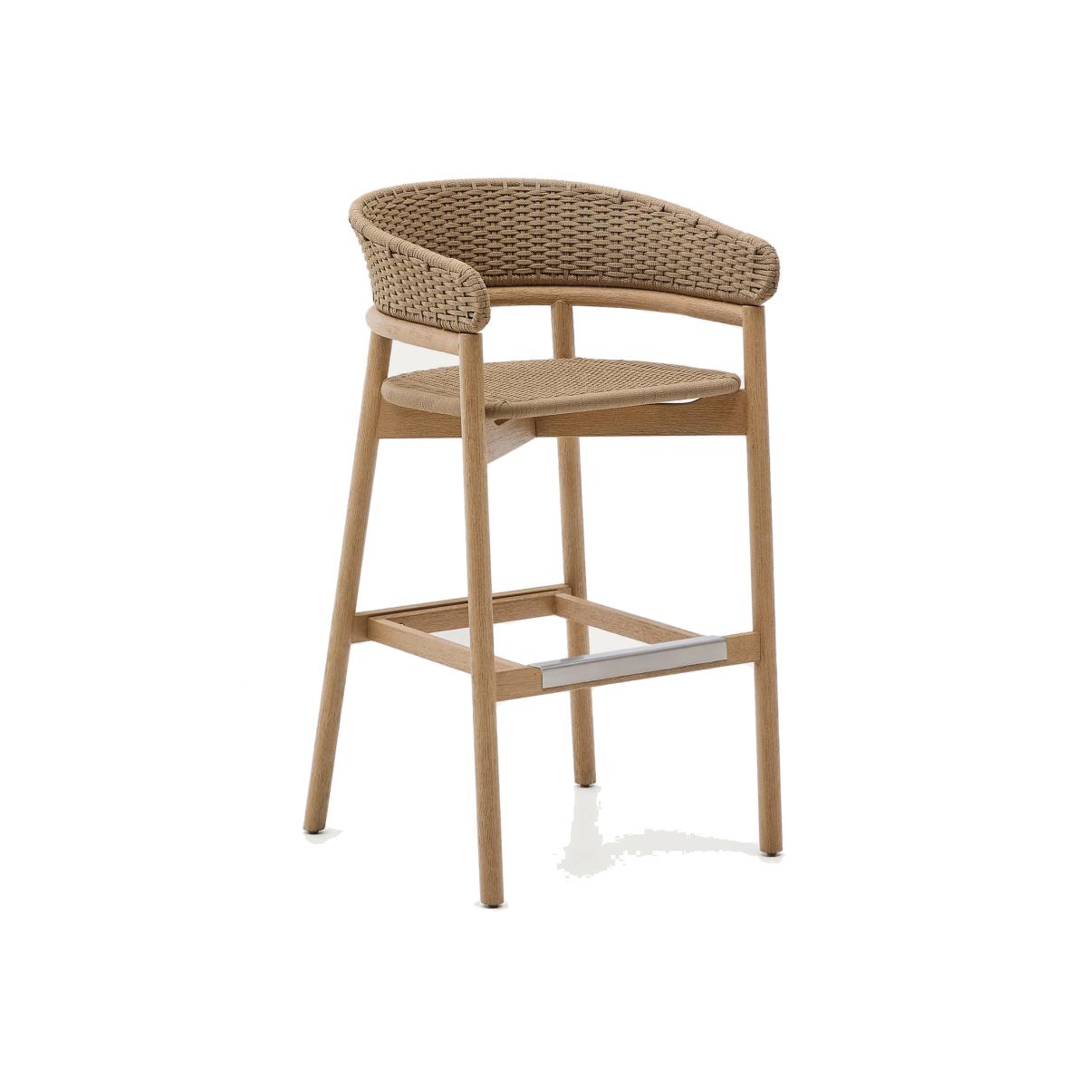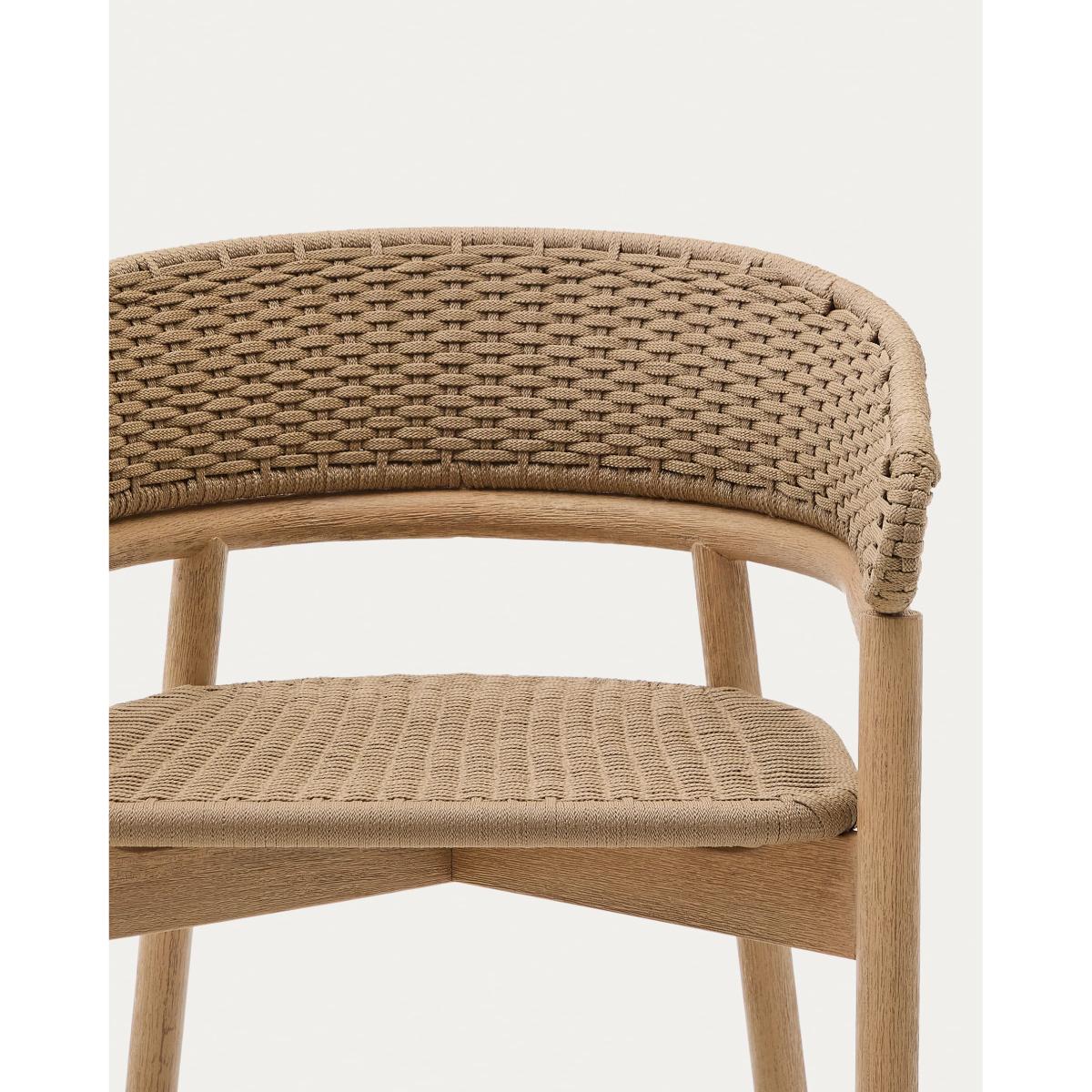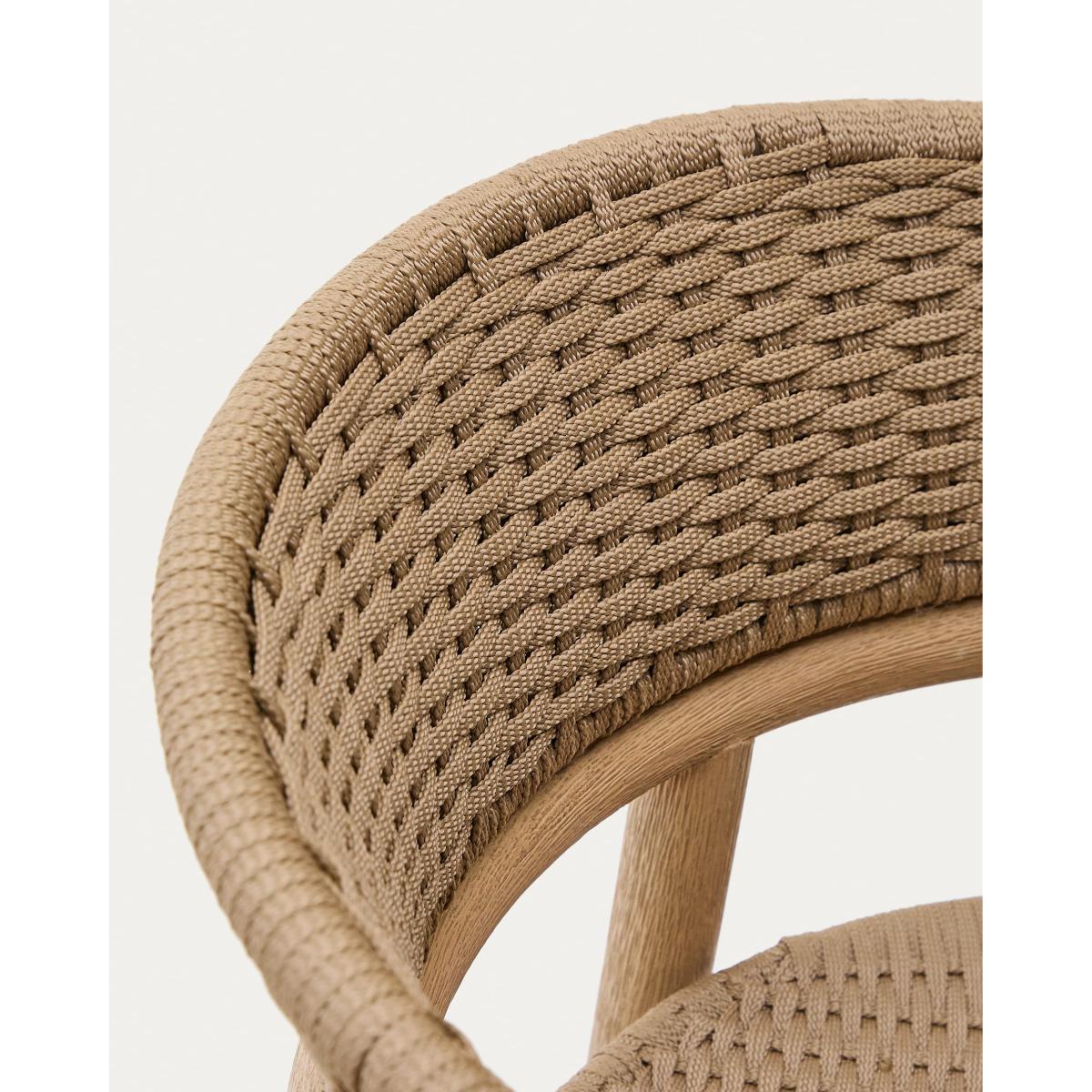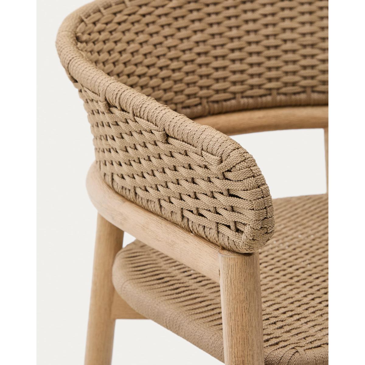 The Arinella collection represents the union of rustic and modern. Each piece combines the quality of solid acacia wood with a brushed finish, which highlights its natural tones and unique grain, making each piece one of a kind. The seat and backrest, made of UV-resistant hand-woven rope cord, provide a durable, contemporary look suitable for all types of settings. This style, designed for both indoor and outdoor use, has a galvanised iron structure with powder-coated paint, which ensures resistance. The wood also has a water-based PU finish to reinforce its durability. As it is made from FSC 100%™ certified wood, Arinella not only reflects a modern aesthetic but also a commitment to responsible forest management.