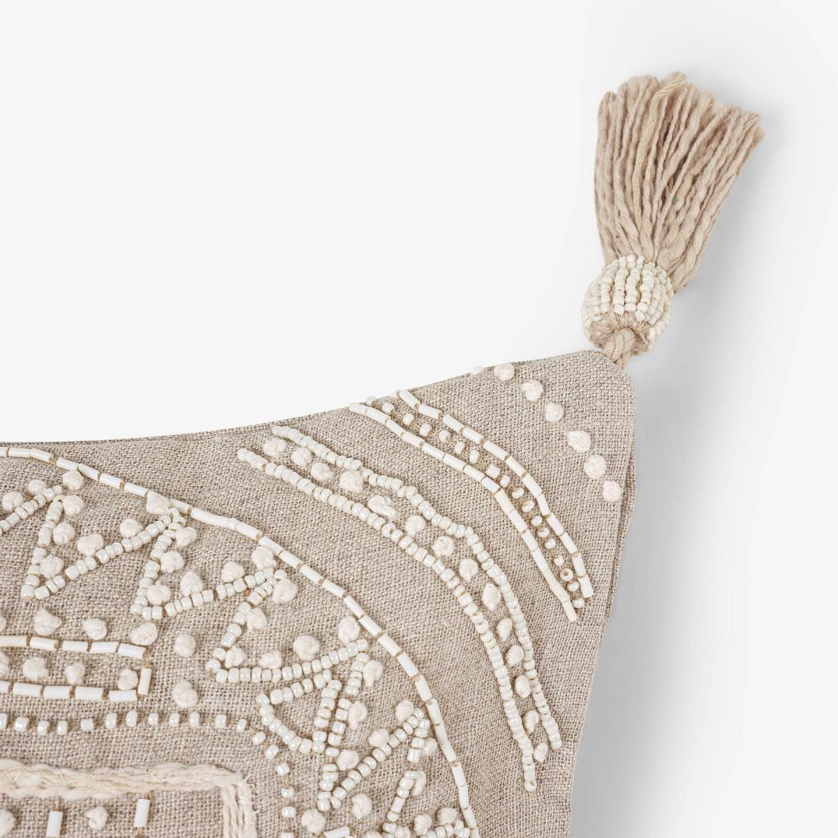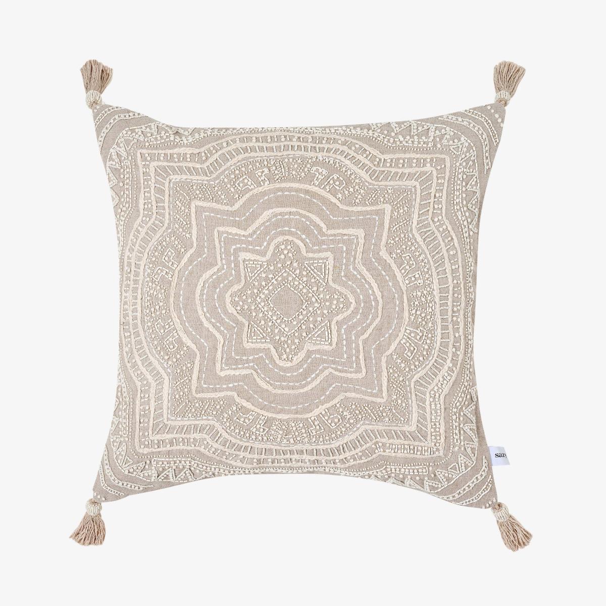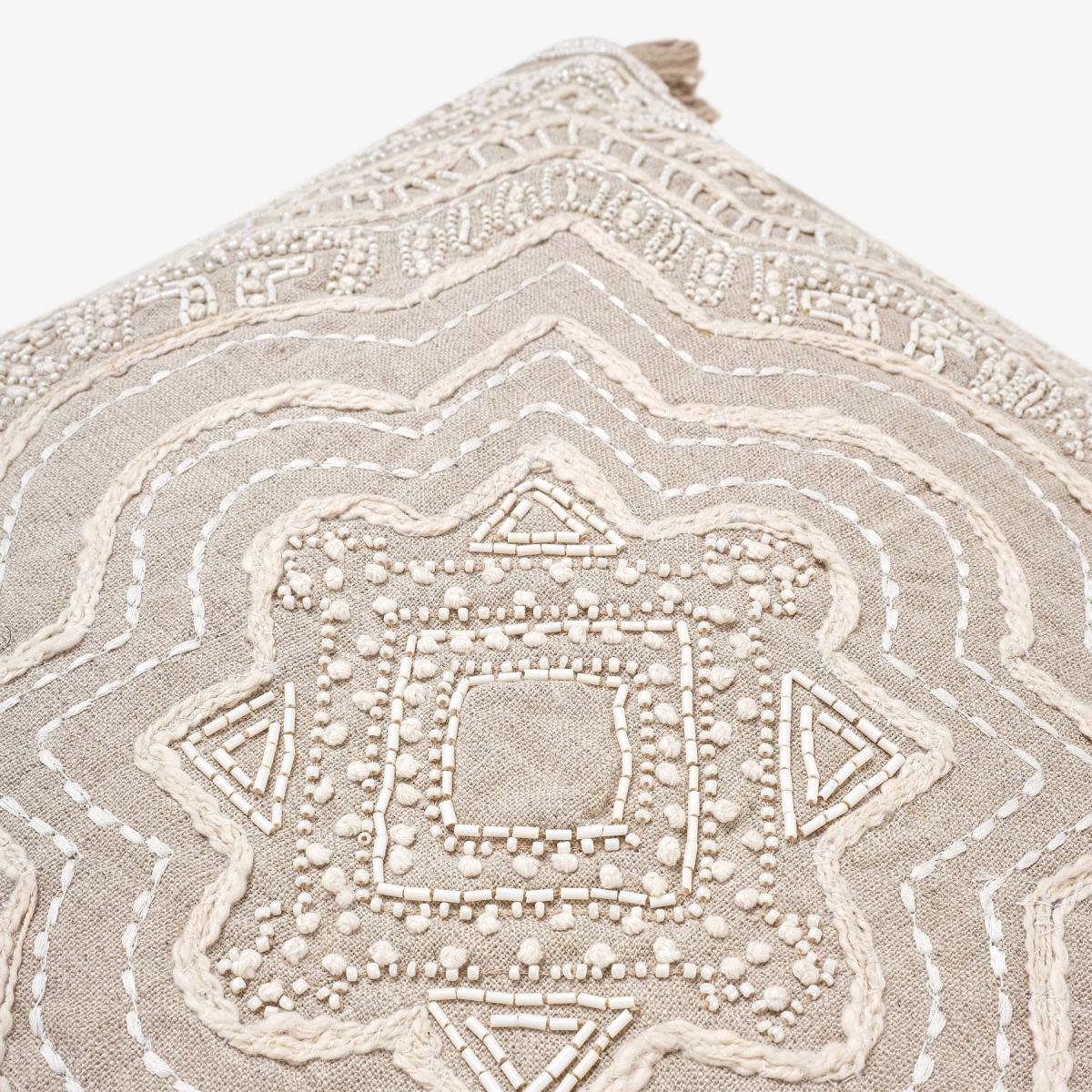 Lo and behold our bohemian style 100% linen cushion covers have arrived, a classic floral design with intricate beading work and stitching with tassels on each side for a contemporary look with maximum wow power. These beauties will charm all those who see it and will make a wonderful addition to your space. The stunning craftsmanship is handmade by talented skilled artisans in India. Versatile cushion cover that will work wonders to elevate neutral decors as well as complement bold colour schemes.