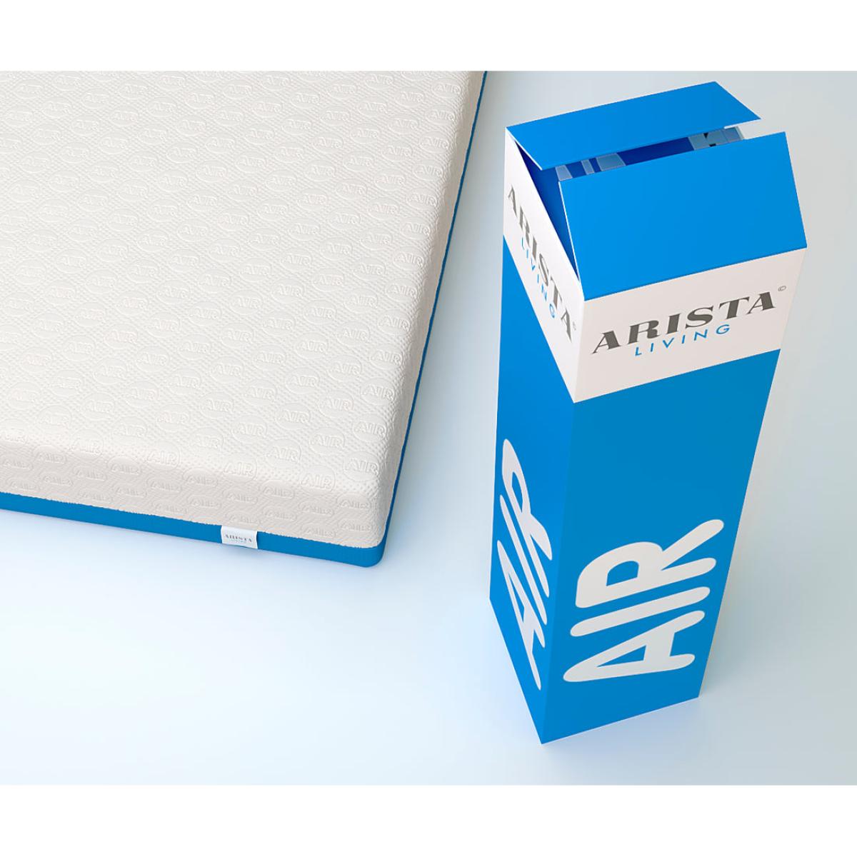 The Arista Air mattress is part of a roll and rest vacuum-packed range. The mattress is 25cm deep and is made from quality high-density foam, which offers a good level of support from edge to edge, maximising the sleeping surface area. It is also lightweight and easy to handle. Finished in removable zipped stretch cover with a flat panel finish, for a smoother sleeping surface and additional comfort. The Arista Air Medium/Firm mattress is perfect for side or back sleepers and offers the perfect balance of softness and support, heavenely! Soft Touch Removable Cover - A soft to touch breathable cover that provides airflow. Pressure Relieving Cooling Layer - This temperature-regulating foam helps keep you cool and gives pressure release to your joints. Flex Comfort Foam - There is a layer of flex comfort foam to further adapt to your body's sleep need, creating a cmore comfortable supportive feel. 1000 Pocket Springs - Set to the perfect compression that gives a medium to firm comfort level. Flex Support Foam - Offers you that extra level of support to help you recover quickly and sleep more completely. Made in the UK. Delivered vacuum packed & rolled Dimensions:L: 200 x W: 150 x D: 23cm