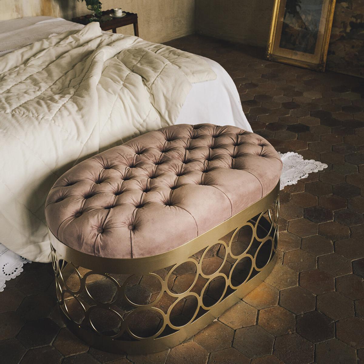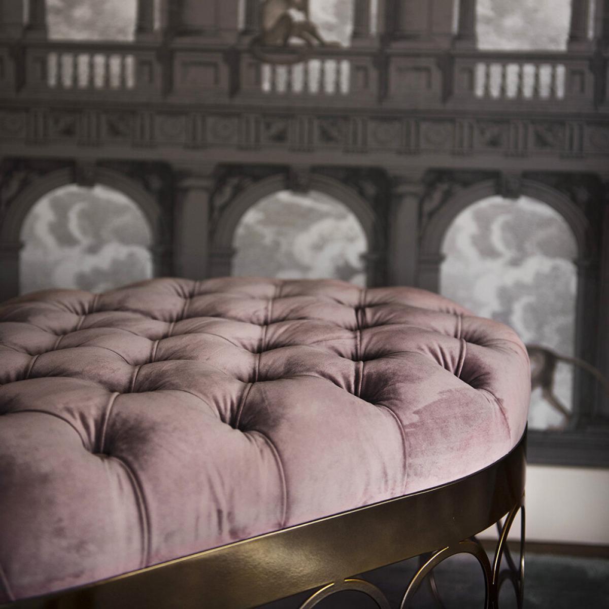 Aristot - Velvet Dusty Rose Ottoman - Gold