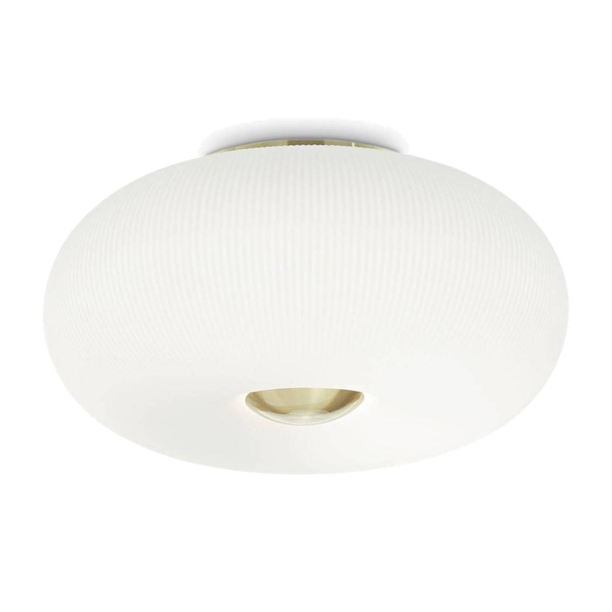 Whatever the size and layout of the room, this range is sure to offer the ideal fitting for the setting. This simple yet original design adds a classic flavour to the setting. The metal frame of the fitting has a satin brass finish, whereas the acid-etched blown glass diffuser is white, with embossed decorative strips. The ribbed effect adds character to the fitting, as well as a beautiful lighting effect. The range offers pendants in two sizes, and flush fittings in three sizes. LED GX53 lamps included. Class one. IP20.