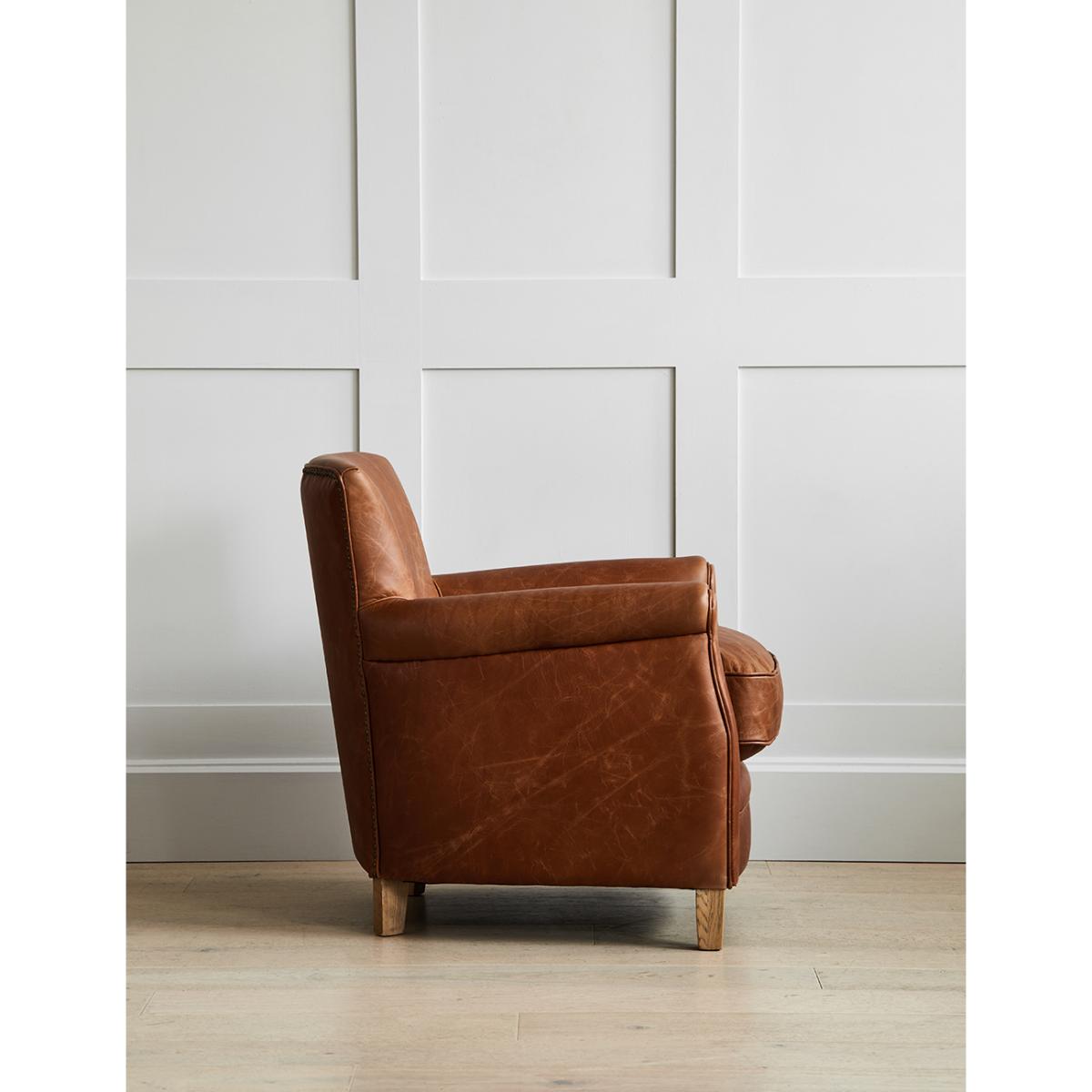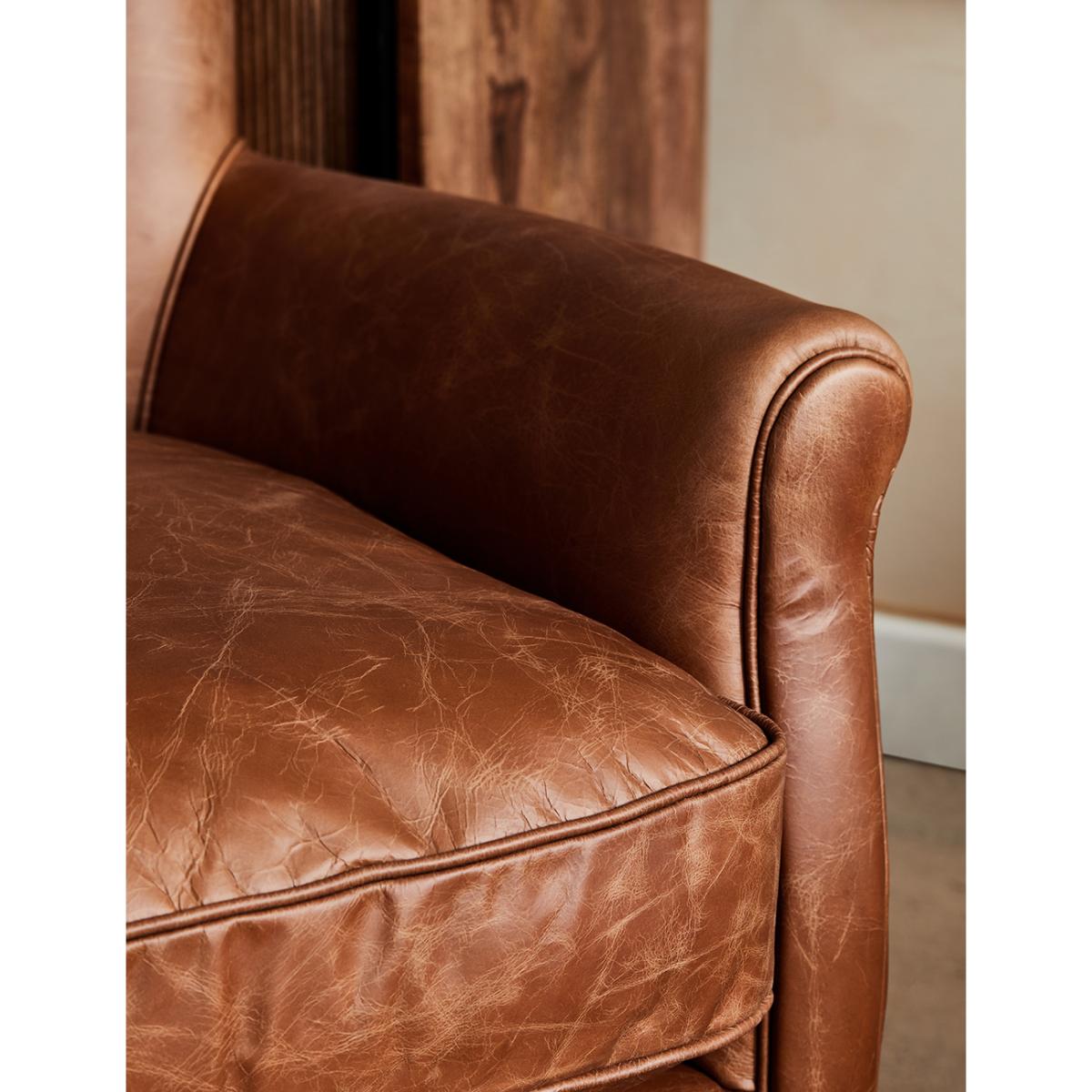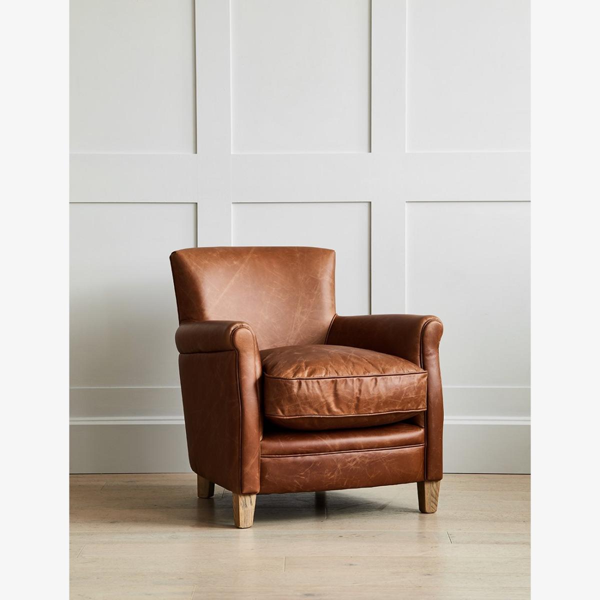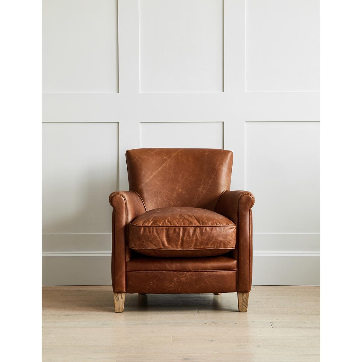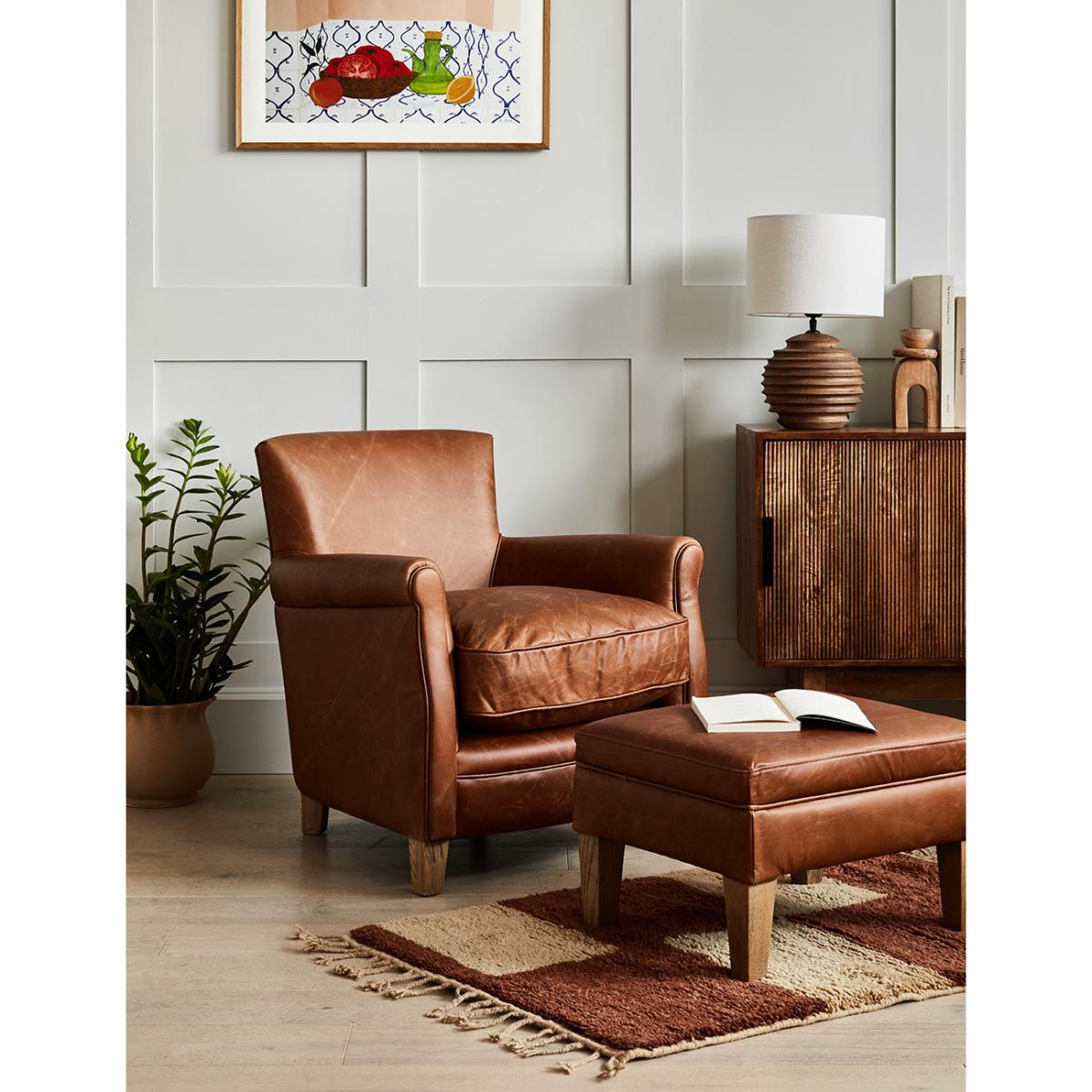 Looking for a classic leather armchair? This timeless seat is perfect for anyone looking for an elegant design that can fit into any room in their home. We love the warm brown colour of the leather, the simple wooden feet and the snug size - perfect for pulling up to the fireplace and getting cosy. A matching two-seater sofa and footstool are also available.