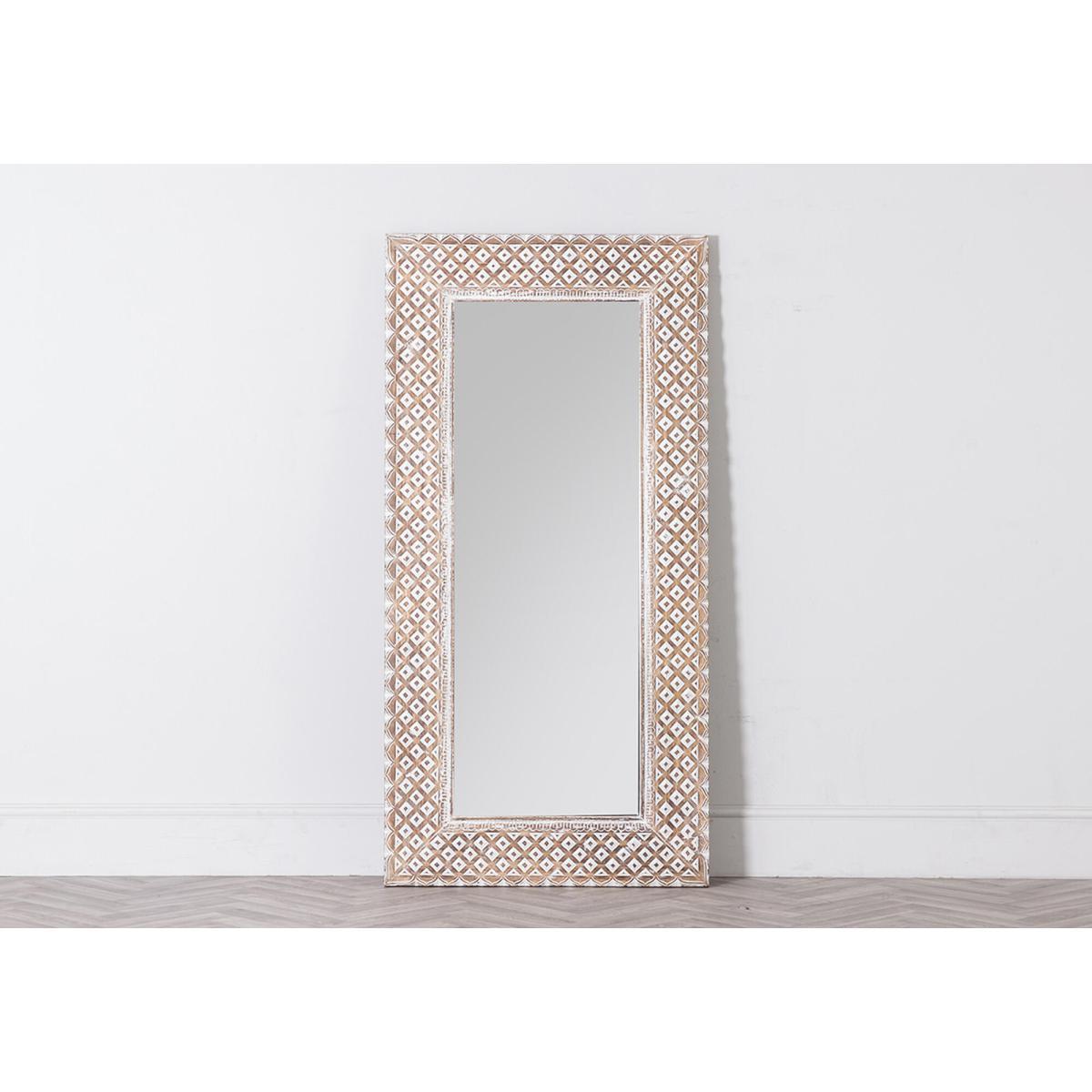 Sleek and simple in form, the Arjun Mango Wood Leaner Mirror truly displays a reflection of the self. With a stand-out contrast Mango Wood frame with an array of traditional wooden carvings, the Arjun Mango Wood Leaner Mirror is sharp and striking with a distinctly bohemian feel, outlining the viewer within a perfectly composed portrait that displays the very best of what any space has to offer. A timeless and enduring item that is suited for any and every location.
