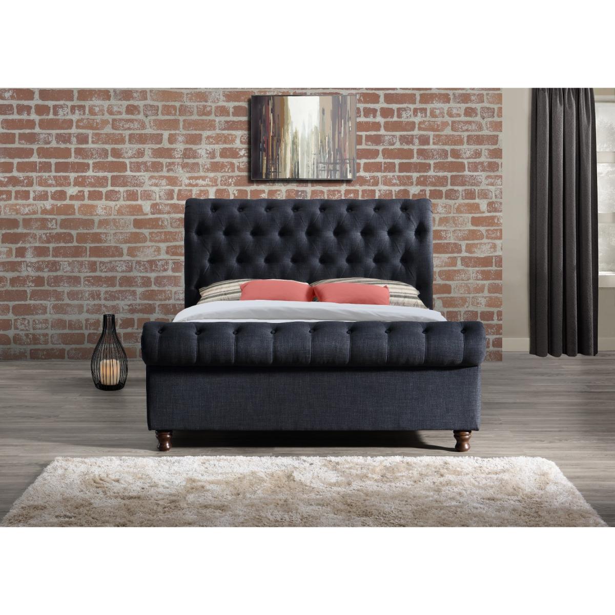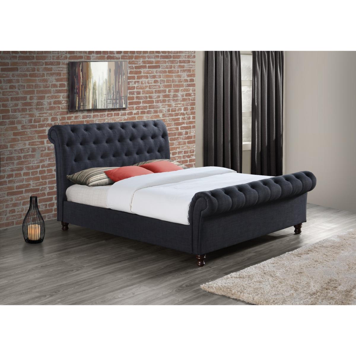 The Arkansas Charcoal Double Bed is a true statement piece. Combining stylish buttoned detailing, a striking rolled headboard and upholstered in soft charcoal polyester for longevity. Soft polyester upholstery Buttoned detailing Easy to assemble Rolled headboard