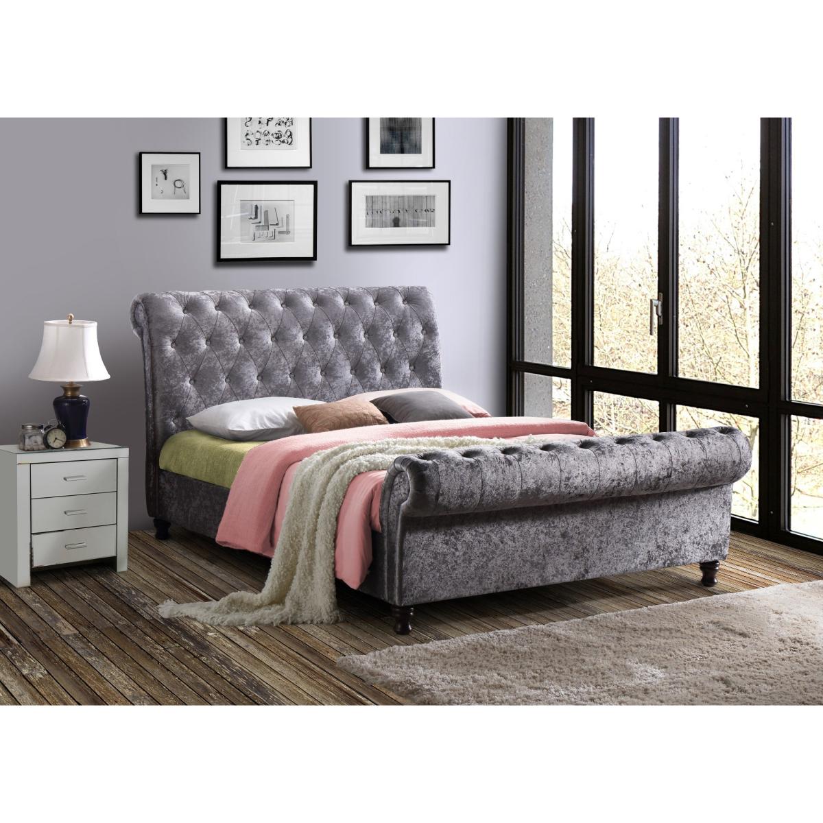 Available in three colours, the 135cm Arkansas bed is a striking item. Featuring a rolled headboard and footboard, deep button detailing and upholstered in plush crushed velvet - there’s no denying this bed is as luxurious as it is comfortable. Beautiful crushed velvet upholstery Stylish buttoning details Easy to assemble Rolled headboard