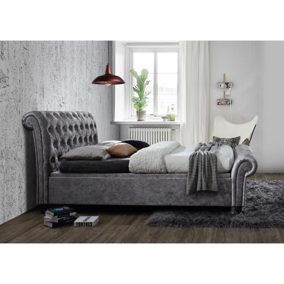 Arkansas Steel Crushed Velvet Double Side Ottoman Bed