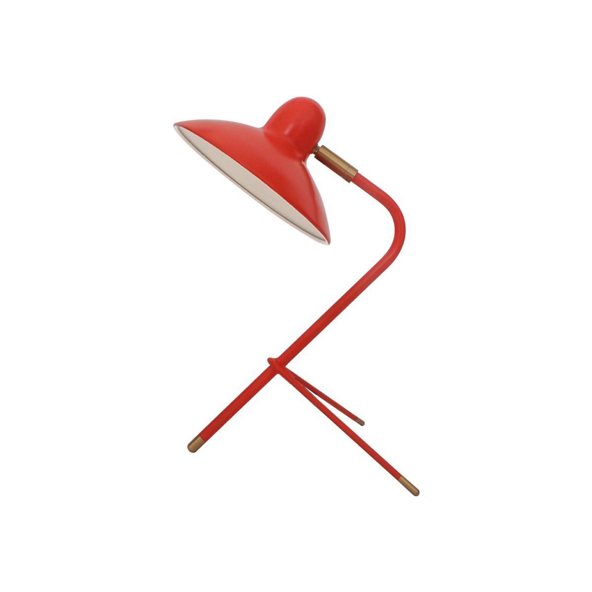 The compact and expressive scarlet-red Arles Table Lamp is designed by Domei Endo for DI CLASSE and expertly crafted from painted steel. Inspired by a scene Endo witnessed in the Southern French town of Arles, the lamp's shape is reminiscent of a French lady elegantly holding her hat in the breeze, with the lamp's shade as the hat and her bent elbow interpreted by the lamp's stem. Completed with an adjustable shade, you can angle the light in any direction, making it the ideal lamp for reading and writing. Requires: 1x max. 40W E14 bulb (not included).