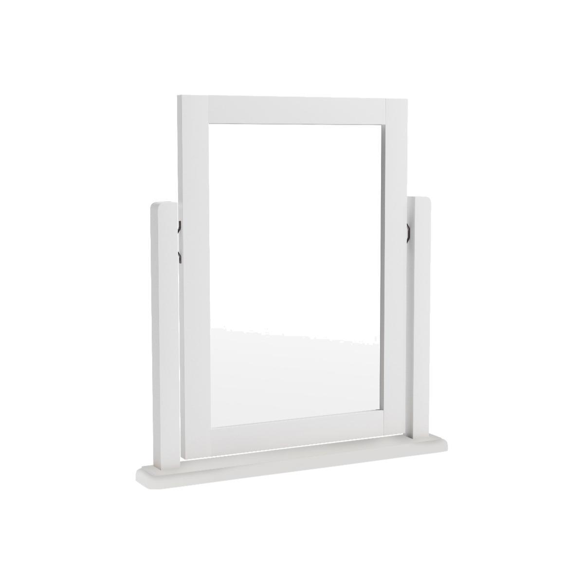 This off-white trinket mirror will fit right onto your dressing table. It features a sturdy construction with a solid wood frame. Frame featuring rounded edges with bevel detailing. Solid wood stand and comes with fixtures to secure the mirror to the dressing table. Adjustable angles, making it possible for you to use it both standing and seated. Look out for the matching dressing table and stool.