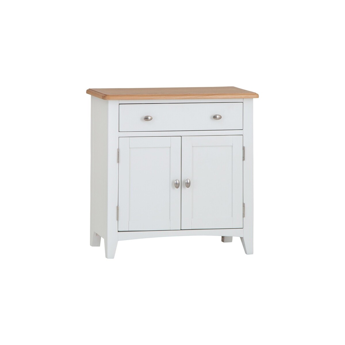 The Arlia Small Sideboard is a chic addition to your dining room set. With an off-white and light oak color scheme that would fit well into many different interior decors. Sturdy, practical and stylish. Vintage oval brushed metal knobs that give it a classy look. Sizable dovetailed drawer, providing more storage space. Solid wood frame that is hardy and durable. Top with rounded edges and delicate bevel detailing. Robust and solid wood legs that taper towards their ends. Handy internal shelf. An elegant yet minimalist design makes it stylish while providing exceptional value for money. Comes ready assembled.