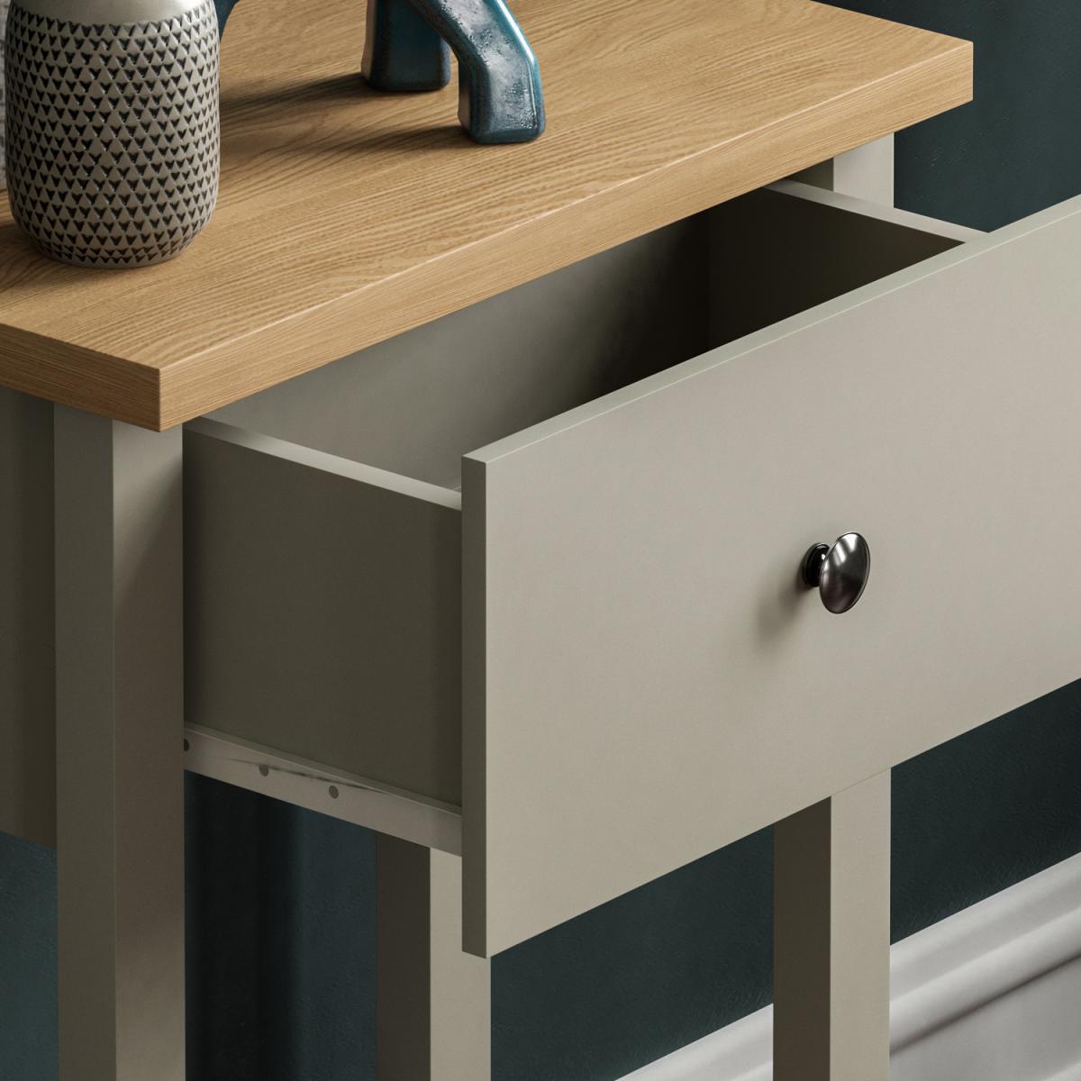 This new product with its modern stylish design, Arlington 1 Drawer Console Table, would be a smart addition to your home not only for aesthetic purposes but for its storage as well, with one drawer, one shelf and a table top perfect to display your decorations. It is made from a strong and durable construction of particle board and MDF with a finish of paper veneer and melamine that will help in getting that simple and contemporary touch to your room. The size of this console table allows for it to be placed in many different places, even corners without taking much space, making it into a very versatile piece of furniture.