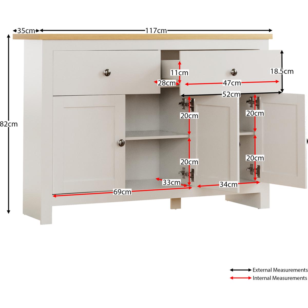 Arlington 2 Drawer 3 Door Sideboard, Grey - White