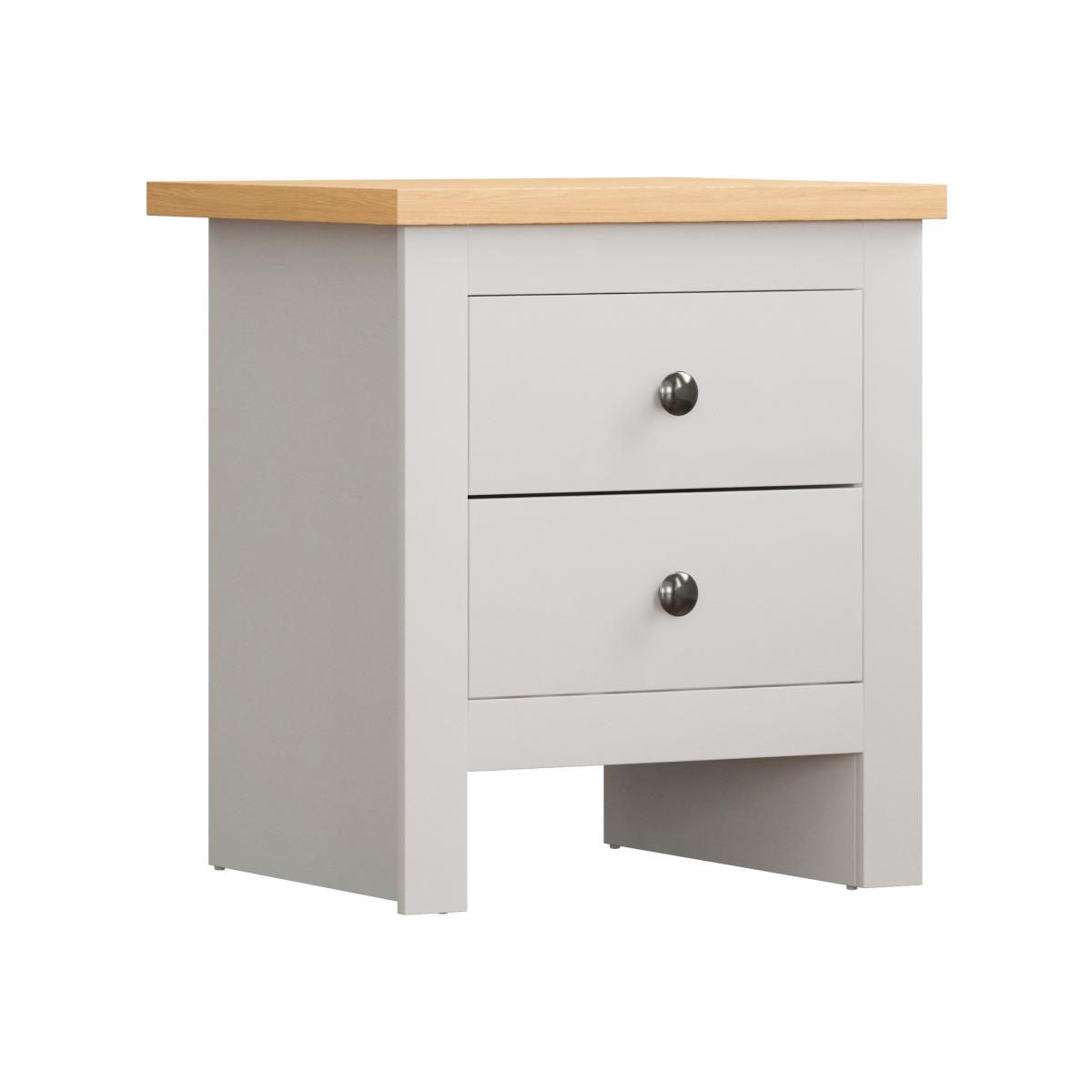 This new product with its modern design will give you plenty of space to keep all the items you need before bed, by your side. This space-saving chest features two generous drawers with a wide top perfect for storing books, phone accessories, lamp and everything else and each drawer is fitted with brushed silver handles. Constructed from strong durable particle board, its simple yet stylish design blends well with any type of decor, adding a contemporary touch to your bedroom you place it in.