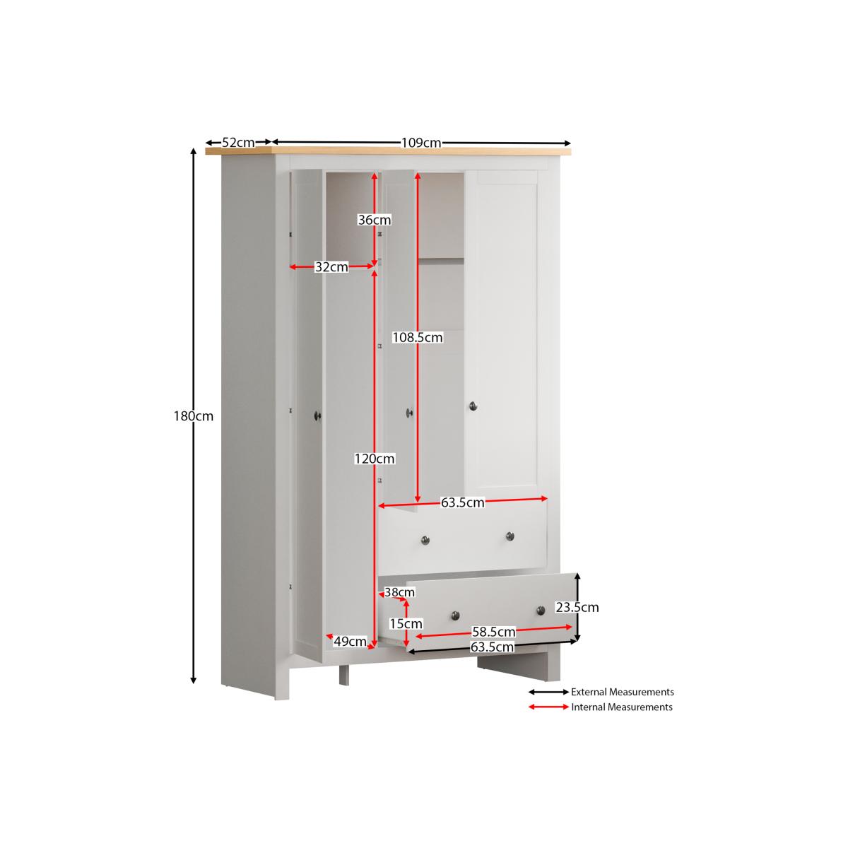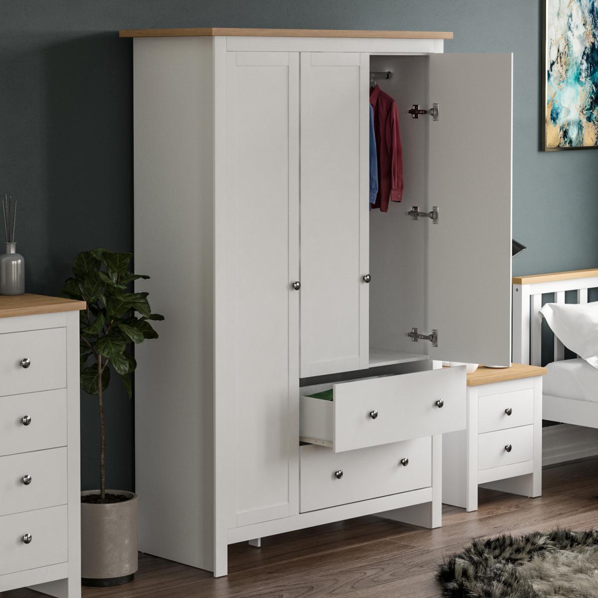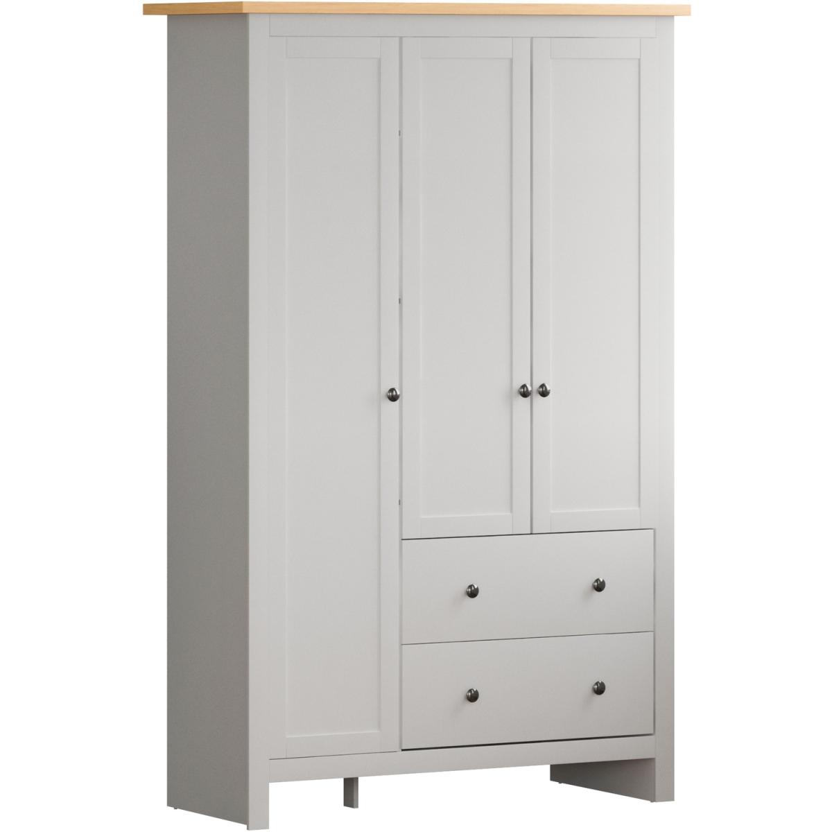 Arlington 3 Door 2 Drawer Wardrobe, Grey - White