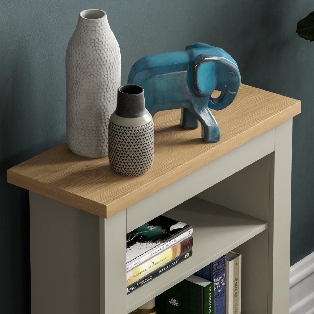 I’m a fan of this three-tier bookcase for its clean lines and muted grey finish topped with a light oak shelf - it strikes the right balance between modern and relaxed. It works especially well in Scandi-inspired or contemporary country interiors, where natural wood tones and simple shapes dominate. To style it, alternate books with decorative items: place a couple of paperbacks upright, then add a small plant or a woven basket on the next shelf. Leave a little breathing space around each object to avoid a cluttered look. You can pop it in a hallway for keys and mail, use it in a snug home office or simply display your favourite reads alongside ceramics and framed photos.