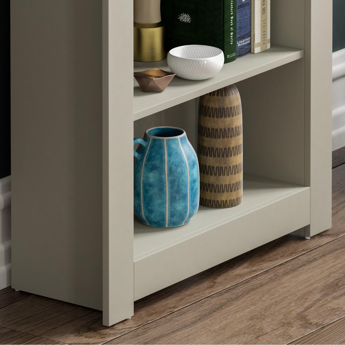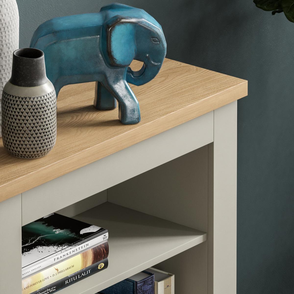 Arlington Bookcases features contrasting oak effect top board that boasts rustic charm and calm body colour. Available in neutral white and grey colours to ensure ideal match to any room interior. Total of three tiers are ready to accommodate your beloved novels and decorative items, bringing elegance and essential qualities of storage and display to your home.