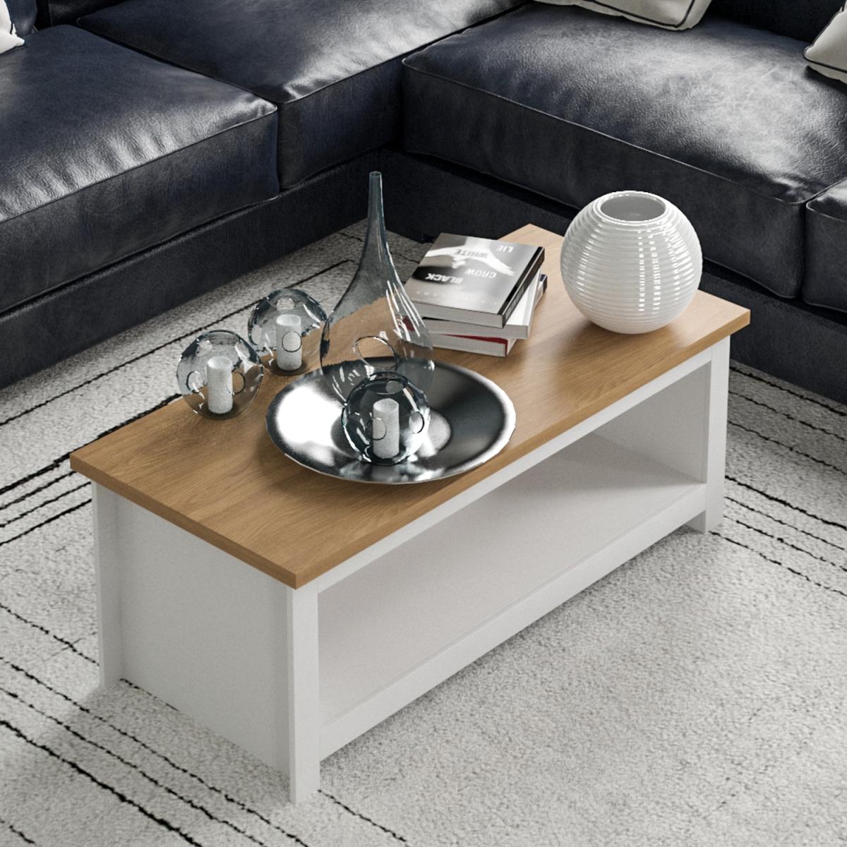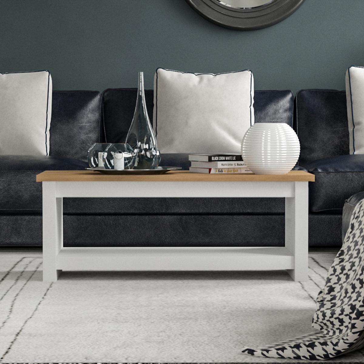 I’m a fan of this white-top coffee table for its straightforward design and durable oak surface, which suits both pared-back and more layered interiors. Its low profile and open shelf make it a good fit for Scandi, coastal or modern country schemes, while the neutral finish works equally well alongside jewel-toned accents or soft pastels. For styling, try a slim tray to tuck away remotes and display a small plant or candle, leaving room for a neat stack of your favourite coffee-table books. The shelf beneath is ideal for woven baskets or board games, adding practical storage without clutter.