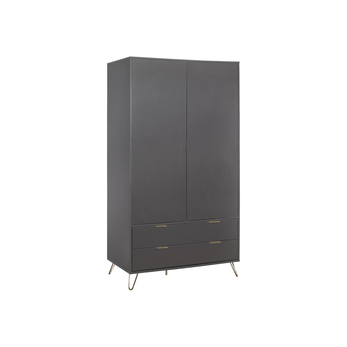 I love this wardrobe because of its sleek, minimalist design and the versatile charcoal finish, which works well in a range of interiors from modern to mid-century styles. Its clean lines and subtle metallic legs make it a statement piece without overpowering a room. For practical styling, consider pairing it with lighter or textured bed linens and accessories to create balance, especially if your space features a monochrome or neutral palette. It also offers ample storage with the two doors and drawers, making it as functional as it is stylish-perfect for bedrooms that need a contemporary touch while remaining organised.