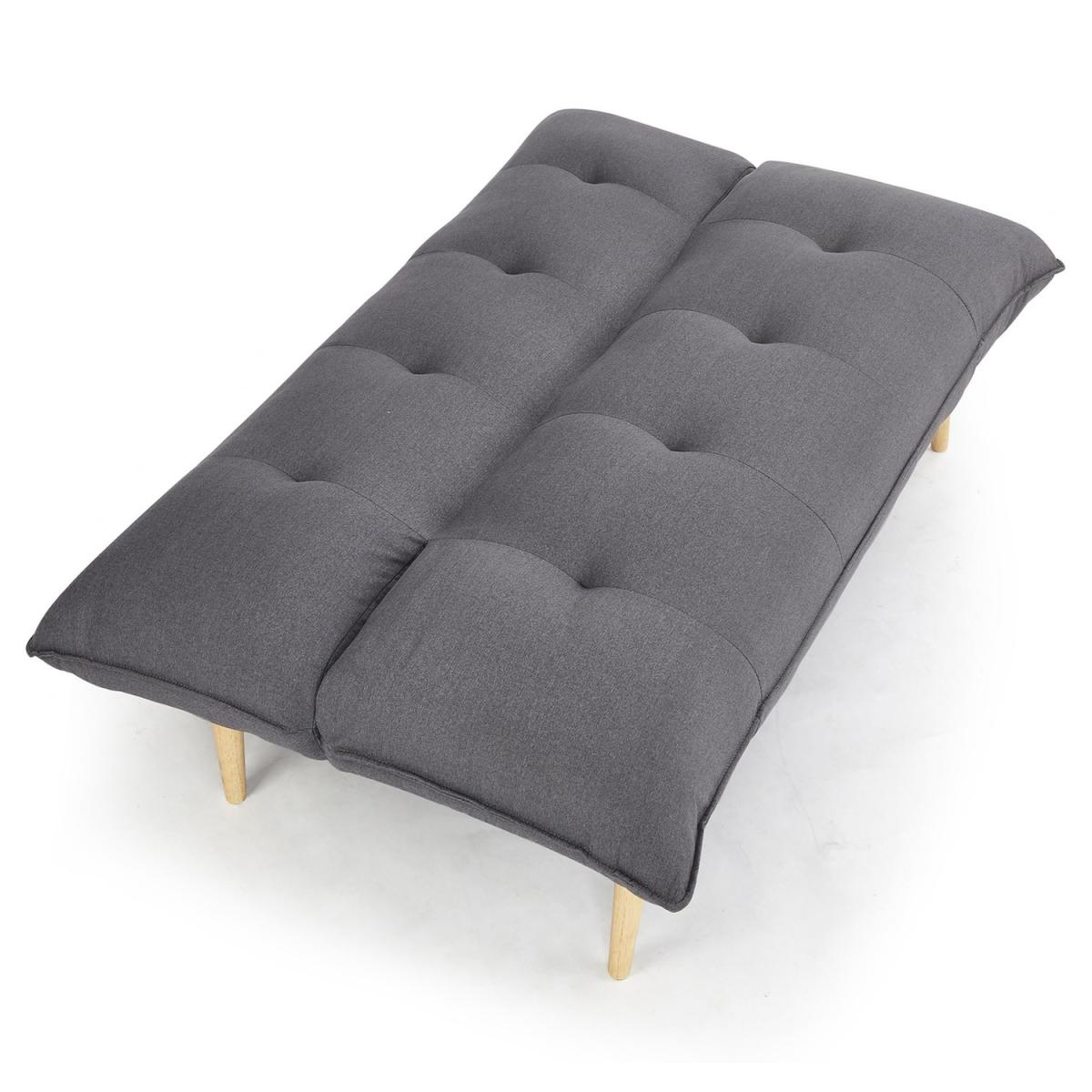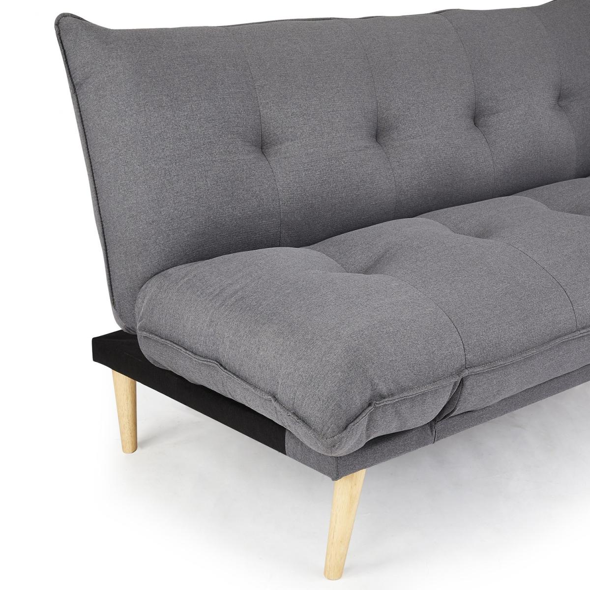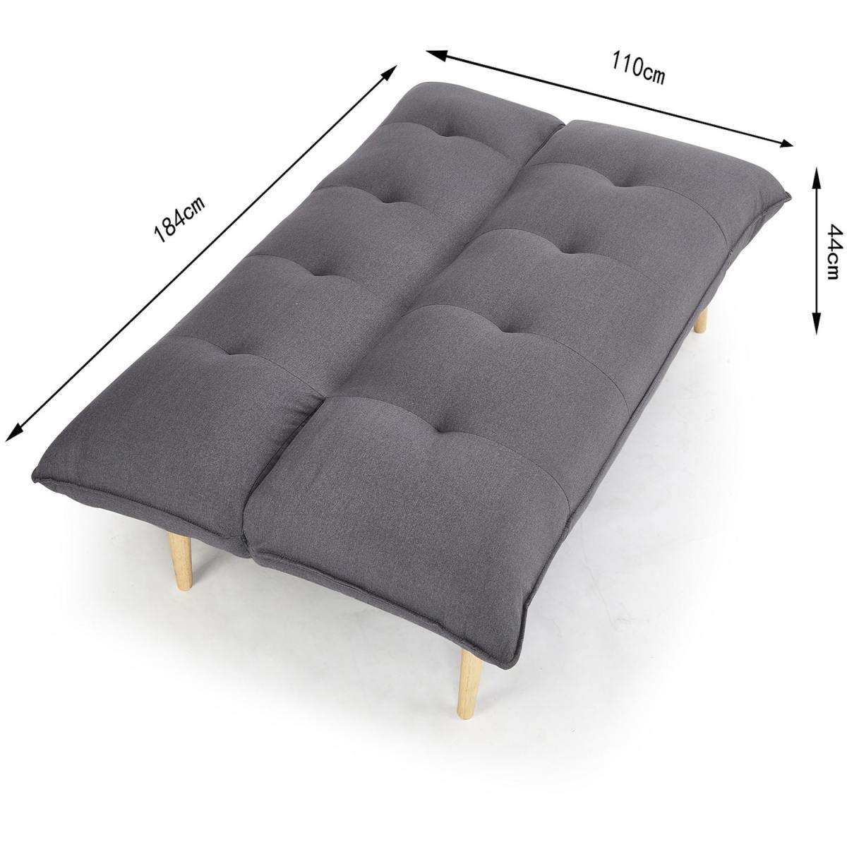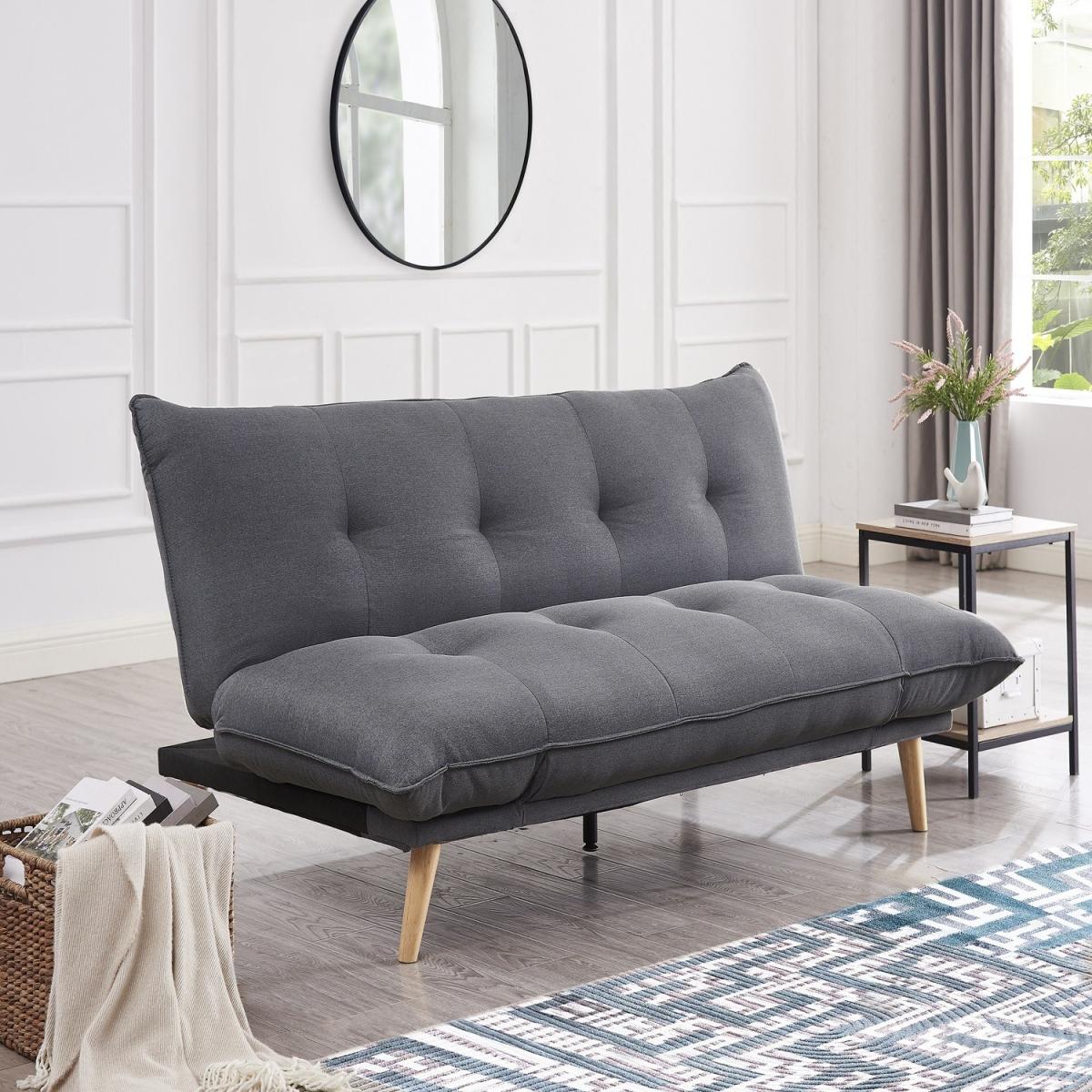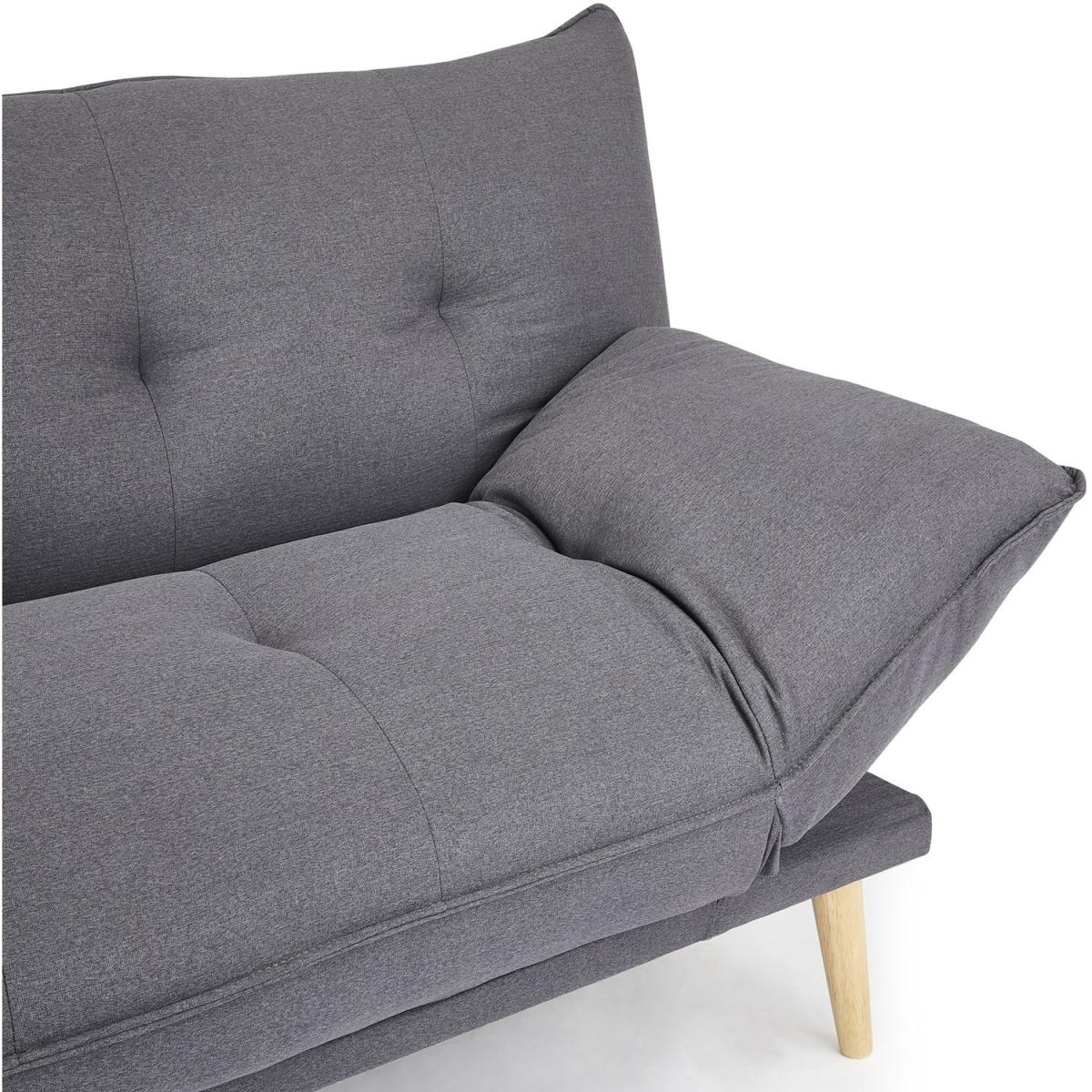 Introducing ARLO a 3-seater fabric sofa bed available in Dark Grey fabric. The ARLO sofa bed unites modern style and functionality. It features a plump pillow style seat and backrest, with tufted detail in a stylish grey woven fabric. It has natural wooden tapered legs and the surprise feature of this sofa bed is the adjustable armrests which lift simply allowing for a transformative 2 different looks when in use as a sofa, in addition to its use as a sleeping area Convertible design - this sofa bed has a simple clic-clac mechanism that allows it to swiftly and simply transform from a sofa to a recliner to a bed, making it ideal for overnight guests. This sofa bed cannot be freely positioned in your room. The back of this sofa bed is upholstered in a black woven fabric that does not match the colour of the sofa bed fabric. Due to differences in lighting and screen resolution on laptop, desktop, and mobile devices, some fabrics may appear somewhat different in person. To get the most out of your sofa bed we recommend gently cleaning with the upholstery attachment of your vacuum cleaner or using a soft hand brush once per week. You might need to screw the legs to the underside of some of our sofa beds since they don't all have pre-drilled holes. All of our sofa beds come with an easy-to-follow assembly guide. Delivered by our friendly couriers within 1-3 working days. The courier will deliver to the main door of the building only on an all-day 7am to 7pm service with no time slots provided.