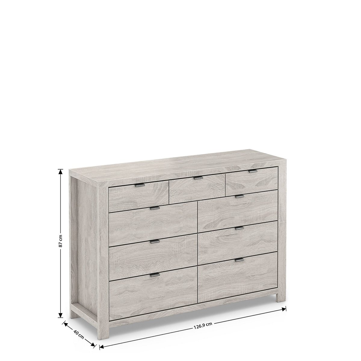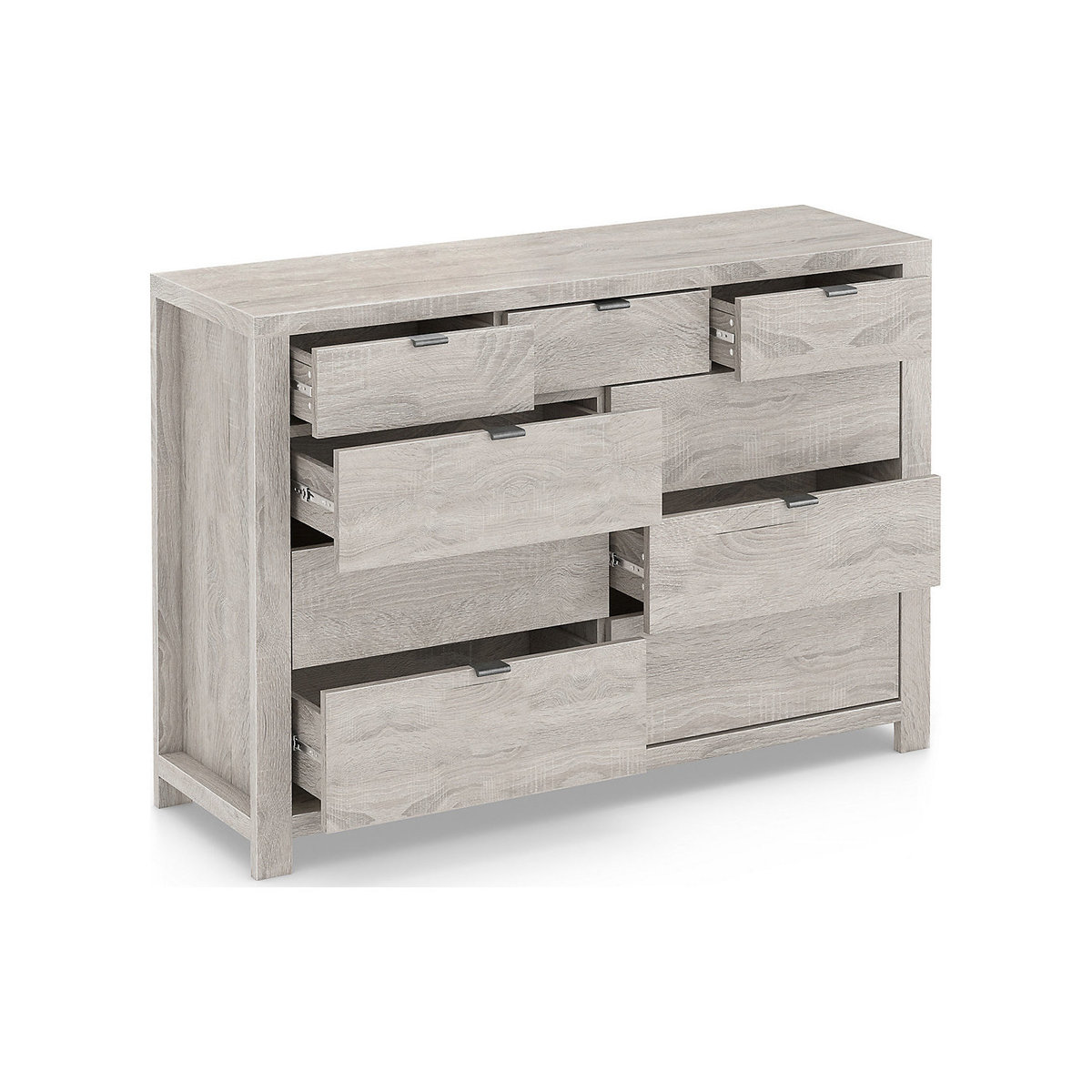 Help keep your home organised and clutter-free with our Arlo chest of drawers, offering plenty of storage space and compartments for all your bits and pieces. With three smaller drawers up the top and four larger drawers down the bottom, this sleek looking drawer chest is a contemporary new addition to your home. Use in the living room to keep remotes, DVDs and board games organised, or place in your bedroom and fill with your knitwear and jeans.