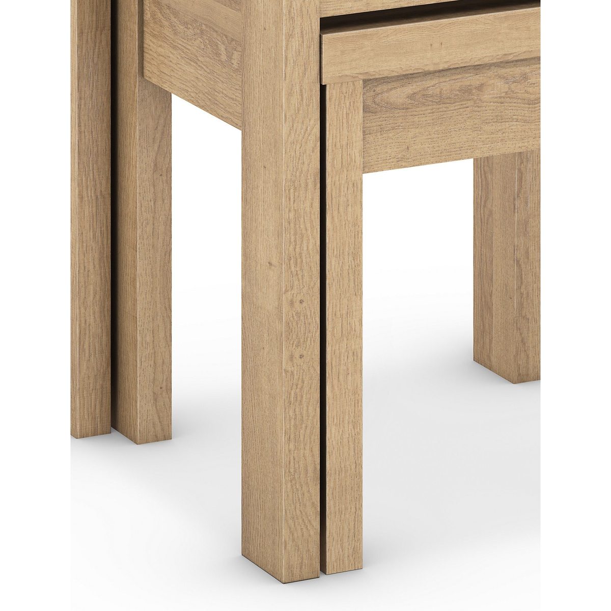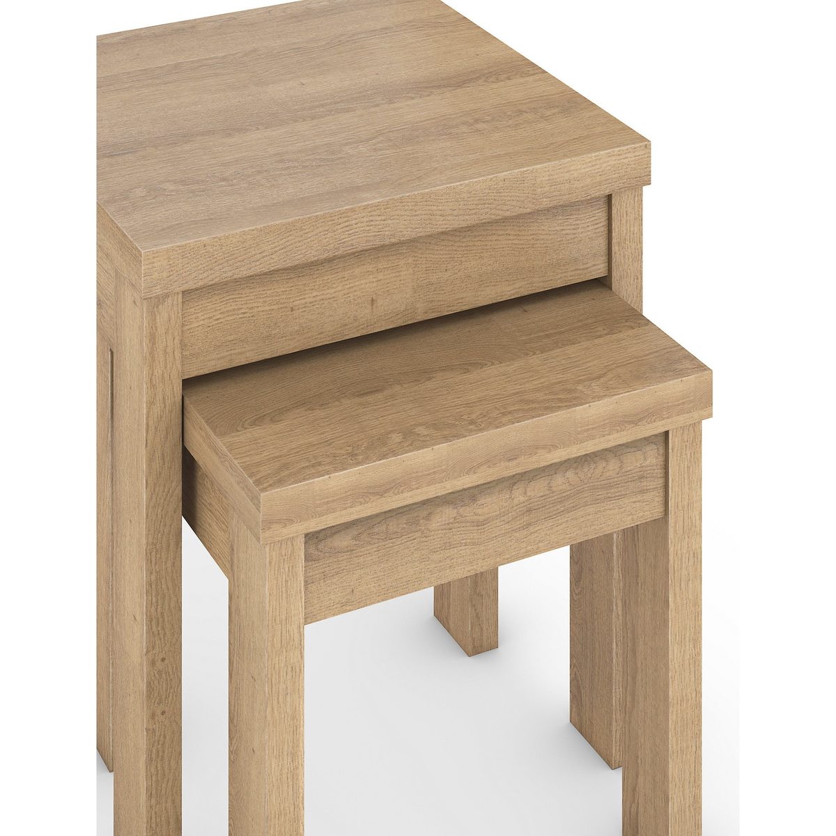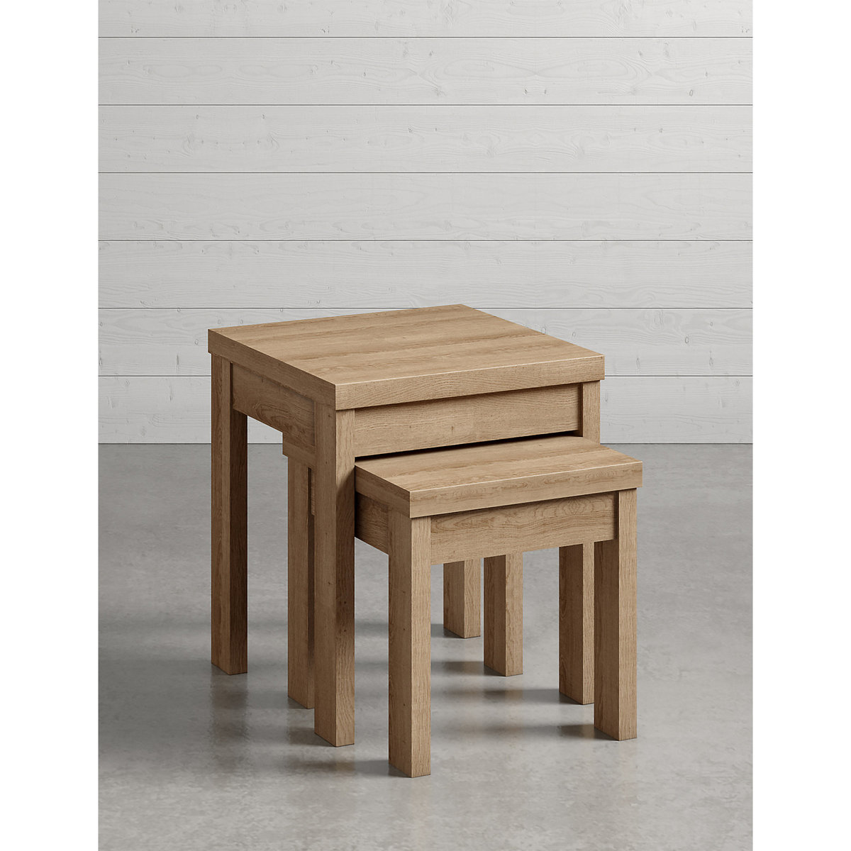 An ideal choice for homes a little limited on space, this nest of tables slots neatly together when not in use or can easily be separated when you've got company. These Arlo tables have been designed for an understated appeal, with clean and contemporary lines that look stunning whether placed in the living room, bedroom or study. Crafted with a timeless wood-effect finish for a touch of traditional charm, these tables make an excellent addition to any space.