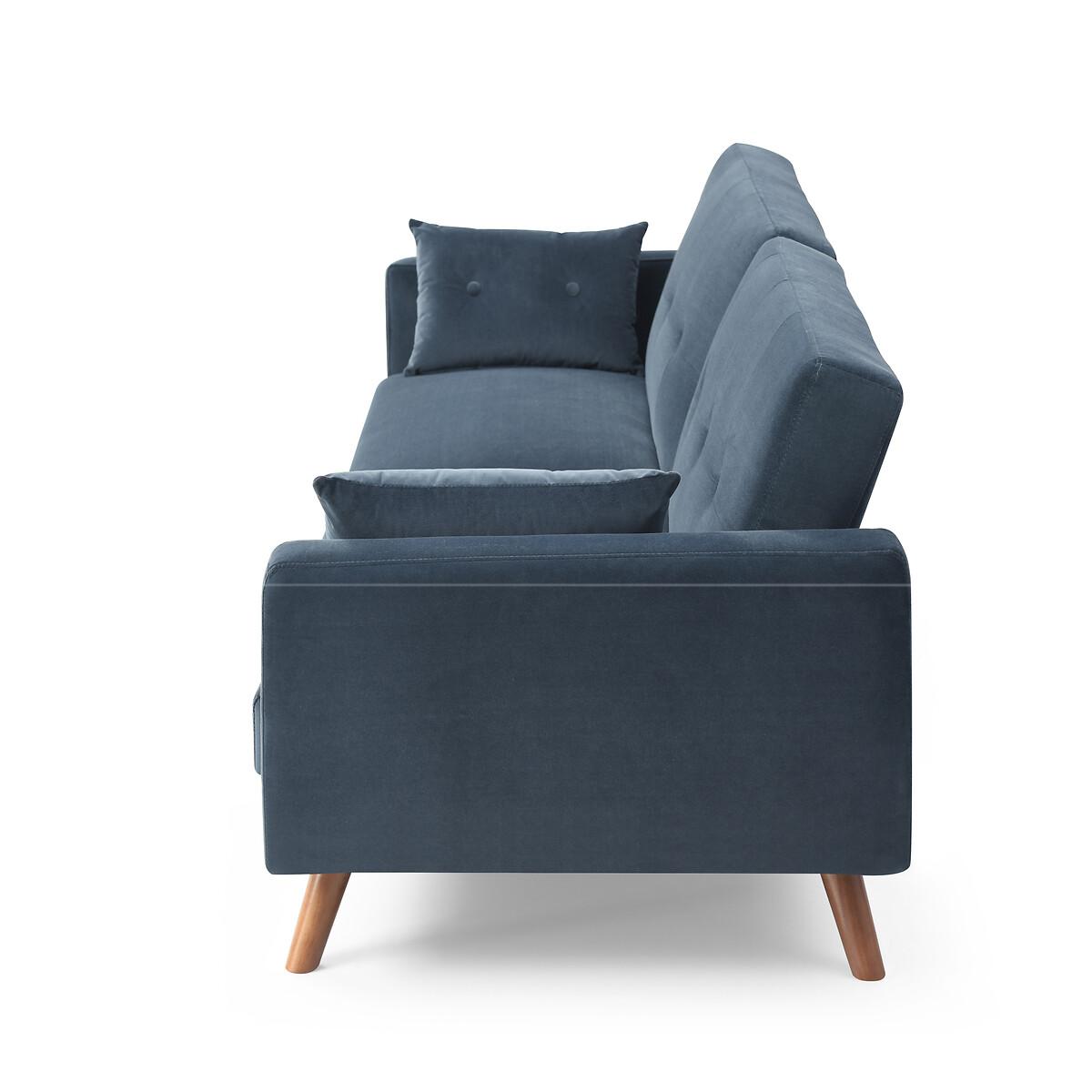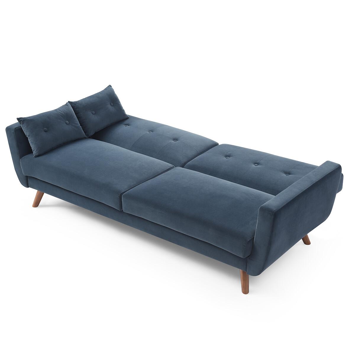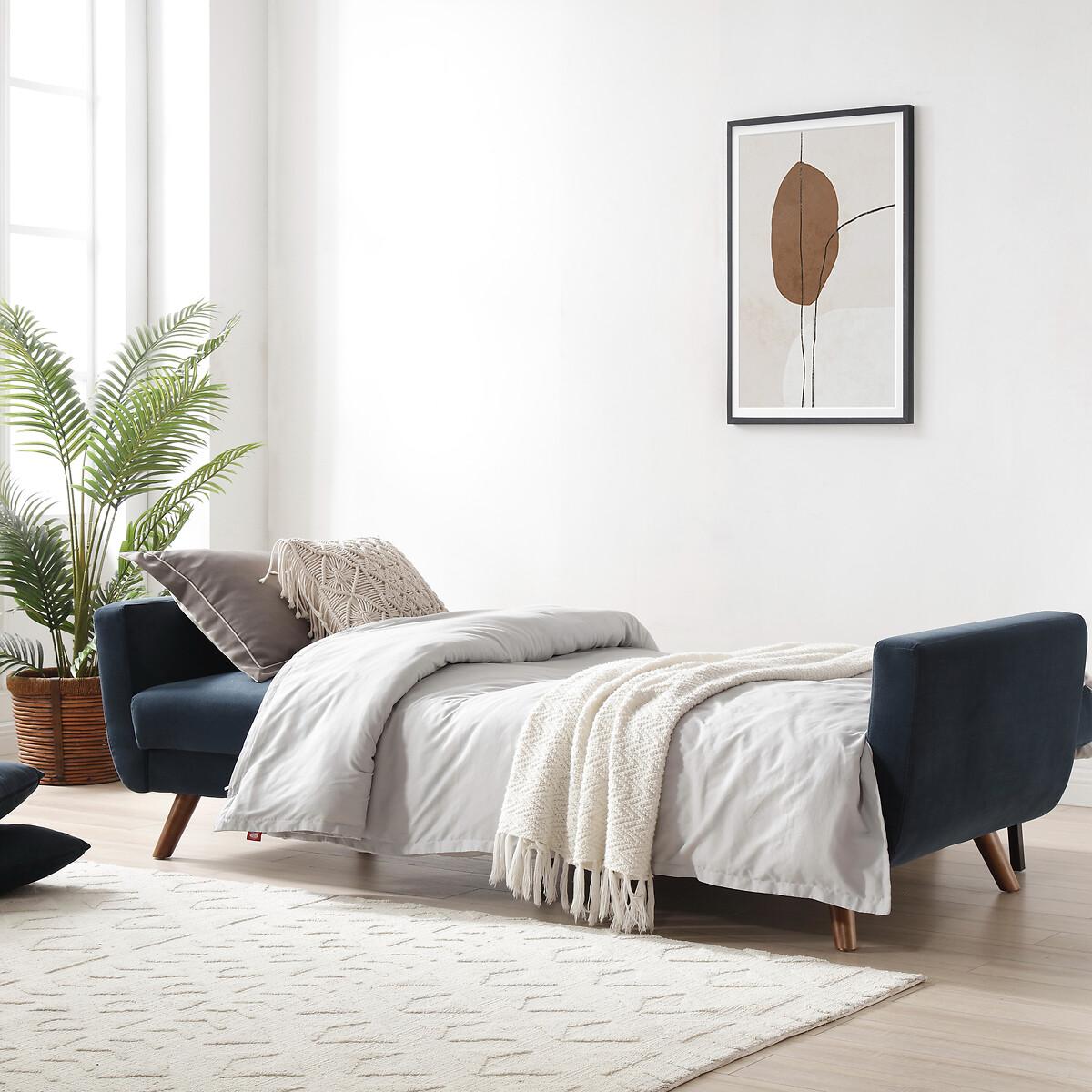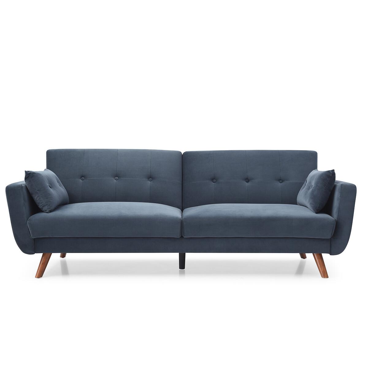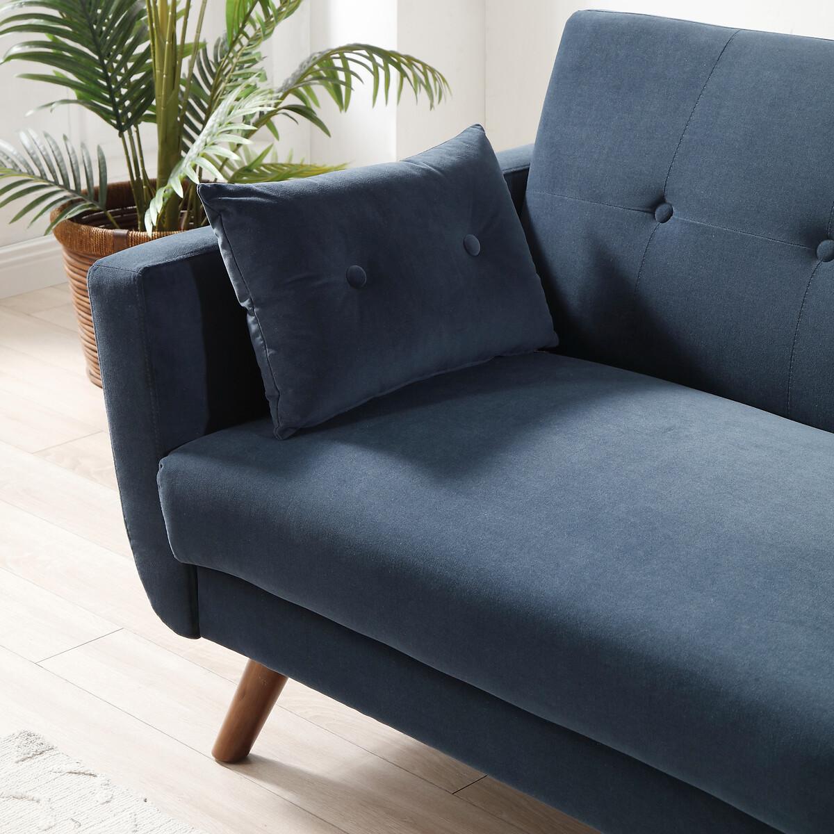 A generously proportion 3 seater sofa bed practical as it is stylish. The easy to use click clack mechanism offers extra sleeping space in seconds. Two bolster cushions add extra comfort, or can double up as pillows when used as a bed! Upholstered in a beautifully luxe velvet fabric with splayed natural wood legs, the Arlo is sure to prove timeless with its scandi style design. Product details• Soft Touch Linen Upholstery• A generously stuffed foam and pocket sprung seat provides structure and support without compromising on comfort • Fibre filled backs provide that softer sink in feeling when you recline, with added foam fillings for additional back support • Comfortable for every day use, this sofa bed has a medium level of comfort suitable for most • Seats 3• Click clack mechanism - the back portion of the sofa bed is moveable and can convert from an upright couch, to a lounger, to a bed in seconds just by lifting it up and locking it into place.• Assembly required• EUTR Compliant, BS5852 compliant• 1 Year Warranty. Product Composition - • Fabric - Velvet (100% Polyester)• Legs - Rubberwood legs• Frame - Pine & Plywood• Seat Filling - Foam• Back Filling - Foam & Fibre. Product Dimensions - 83 cm x 218 cm x 81 cm , Weight - 53 KGSeat Height - 43 cm. Seat Width-191 cm. Seat Depth - 55 cm. Back Height - 44 cm Sofa Bed Sleeping Area Dimensions - 112 x 191 cm Package Dimensions - 202 cm x 113 cm x 28 cm, Weight 59 kg. This product will be dispatched by one of our trusted suppliers. You’ll be contacted by their selected courier about your delivery. Please note: this product cannot be delivered to all Offshore Islands, Northern Ireland or Republic of Ireland. KYOTO01
