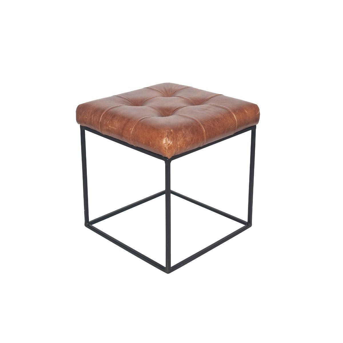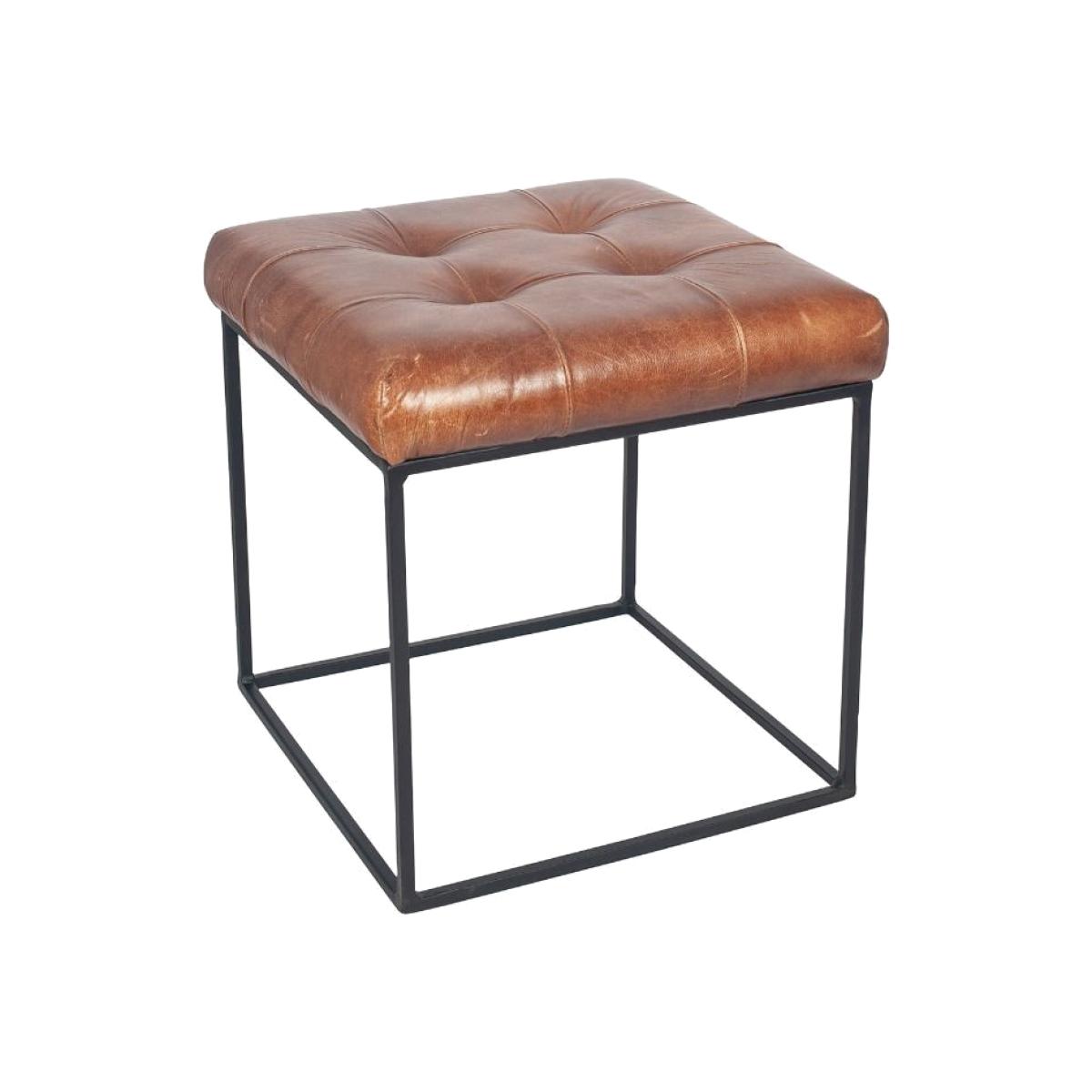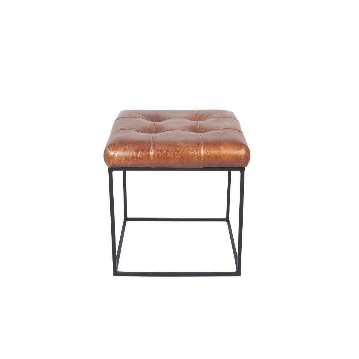 Vintage style brown leather stool. Add a vintage touch to your home with the vintage brown leather stool that is part of the Arlo collection. Featuring a vintage brown leather buttoned fabric and iron frame. Perfect of use in lounges, dressing rooms and bedrooms.