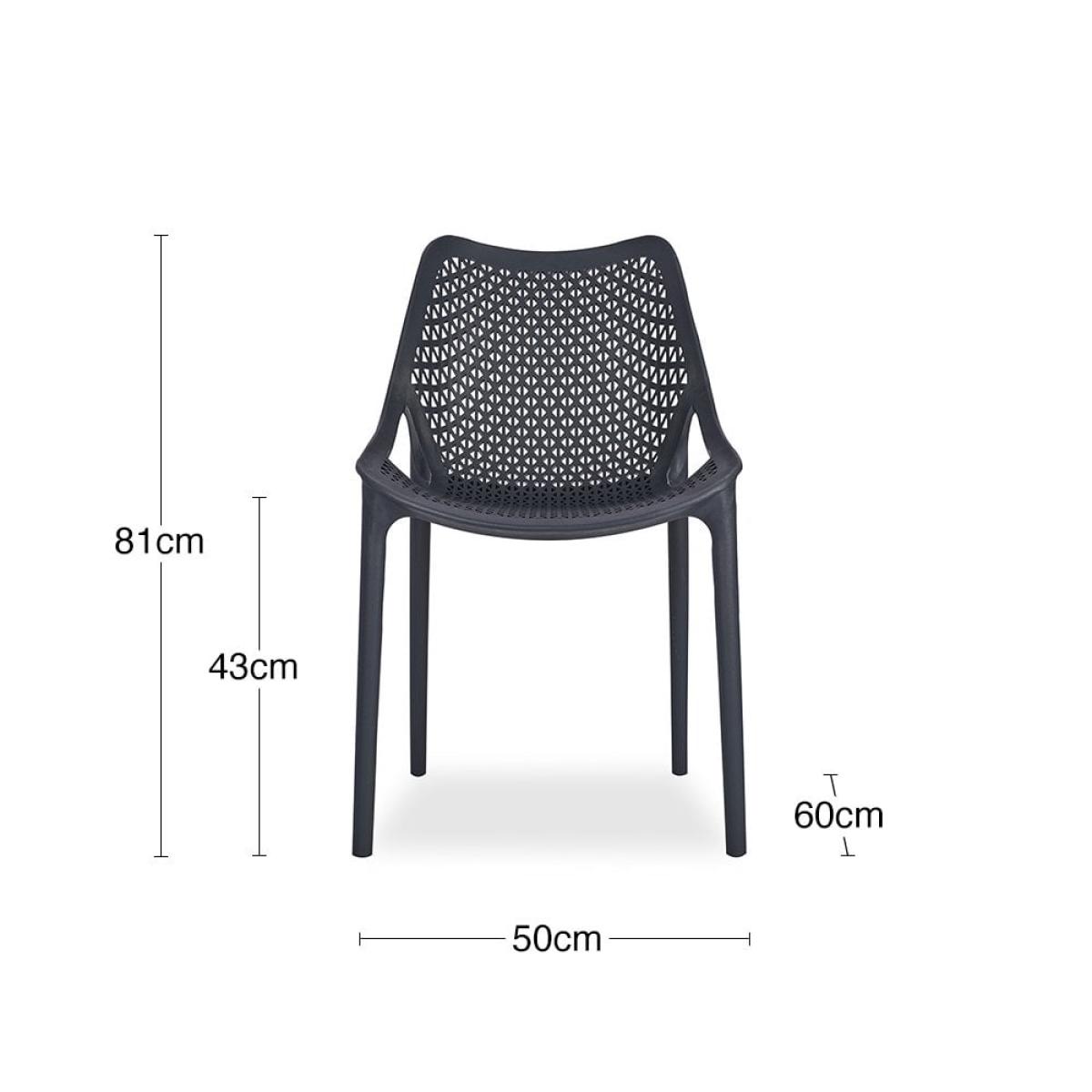 I really like this chair for its sleek, modern silhouette and versatile anthracite grey finish. It’s a great choice for contemporary or minimalist dining rooms, especially when paired with wooden tables for a balanced look. The perforated back adds visual interest while ensuring it’s lightweight and easy to move around. Styling-wise, it works well in both casual and more polished settings; consider mixing with textured textiles like woven placemats or cosy cushions to soften the look. Practical tips include stacking or storing it easily when not in use, making it ideal for multi-purpose spaces or smaller homes. Overall, it’s a stylish, practical option that can seamlessly slot into a range of interiors.