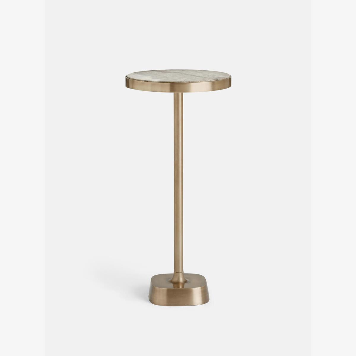 This Arlon small side table is made from a solid and hard-wearing Terra Bianca Marble sourced from India, with a thin brass frame and weighty cast base. We love it nested together with the medium and large versions to create an interesting contrast of heights that recall the styles at Soho House Rome. Terra Bianca Marble top Each piece is unique due to the variations in the marble Marble sourced from India Solid brass frame Cast base Available in medium and large Inspired by Soho House Rome